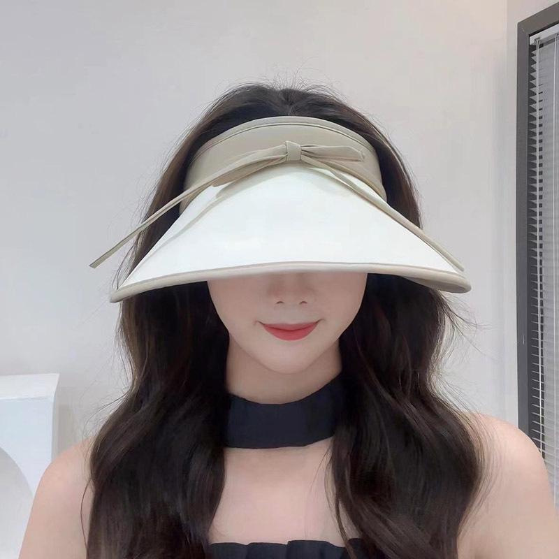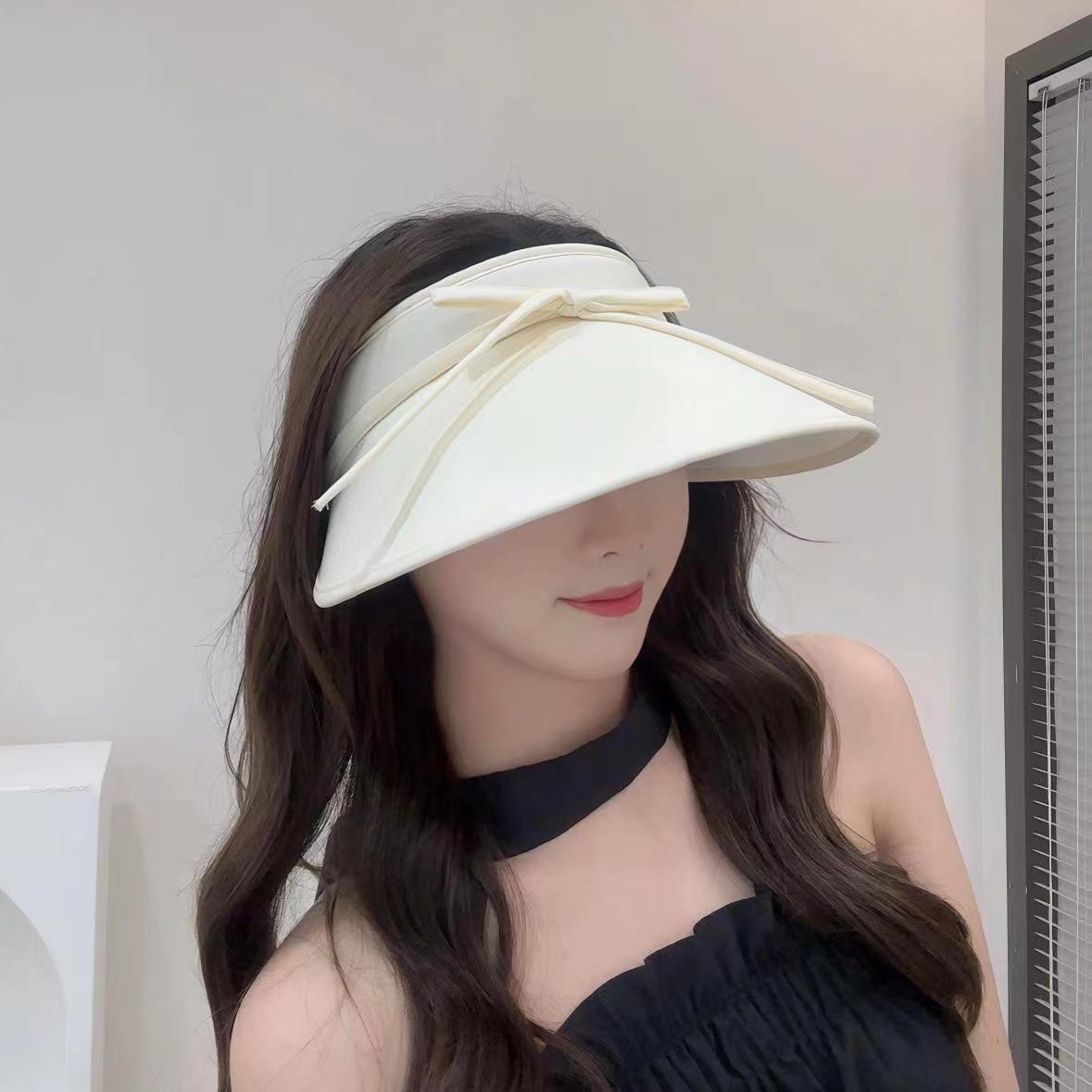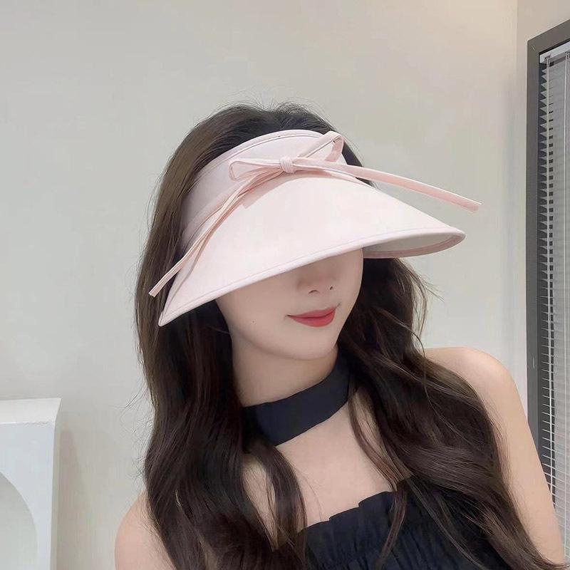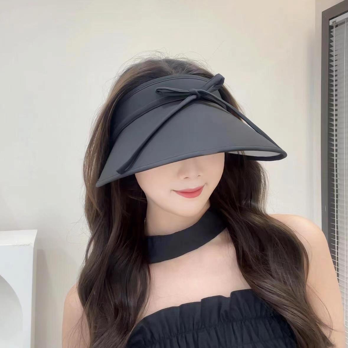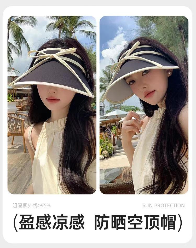 Sombrero para el sol con lazo para mujer, verano, ala grande, sombrero para el sol de seda de hielo, transpirable, para exteriores, protección ultravioleta, visera para el sol, sombrero de copa vacío
