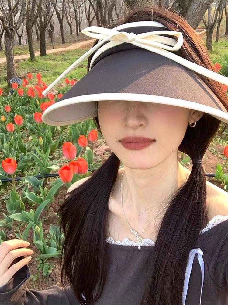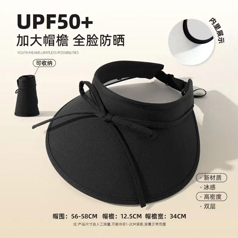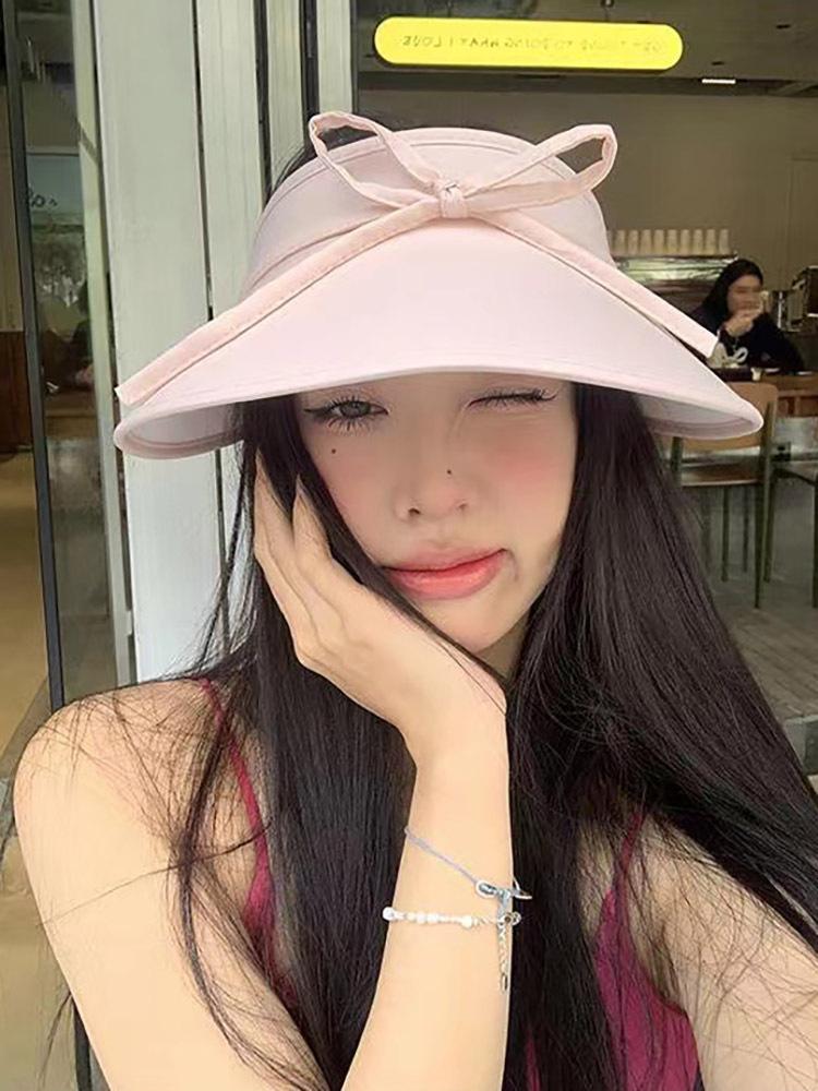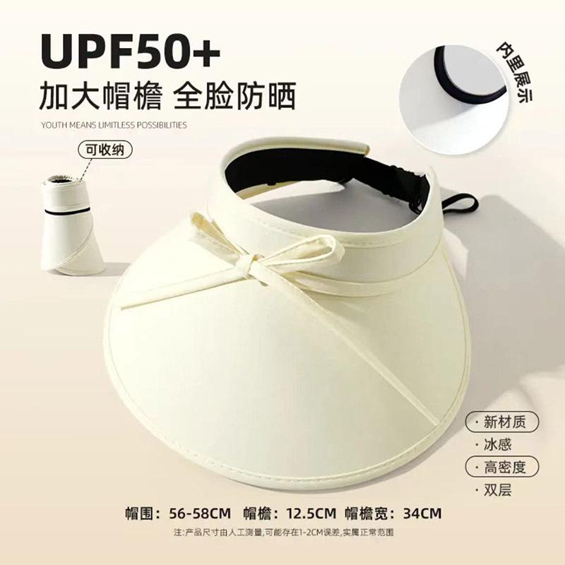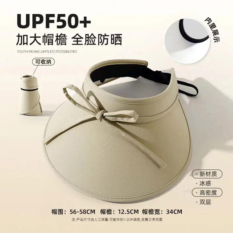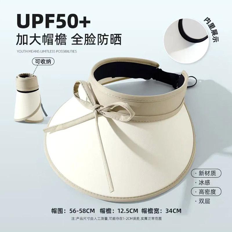Sombrero para el sol con lazo para mujer, verano, ala grande, sombrero para el sol de seda de hielo, transpirable, para exteriores, protección ultravioleta, visera para el sol, sombrero de copa vacío
