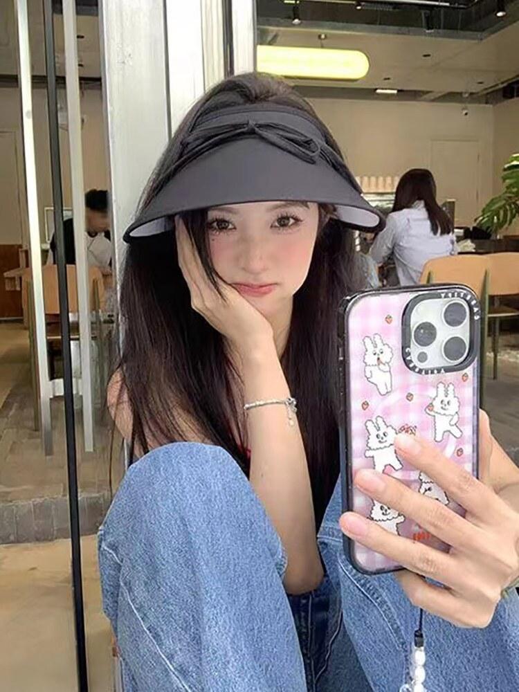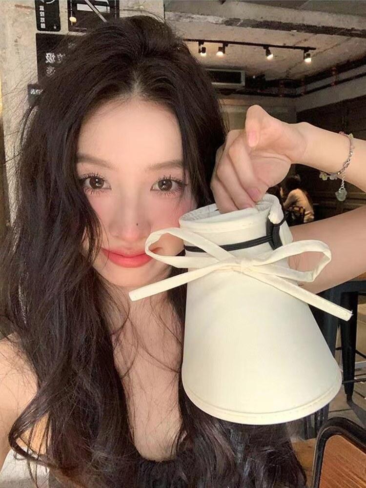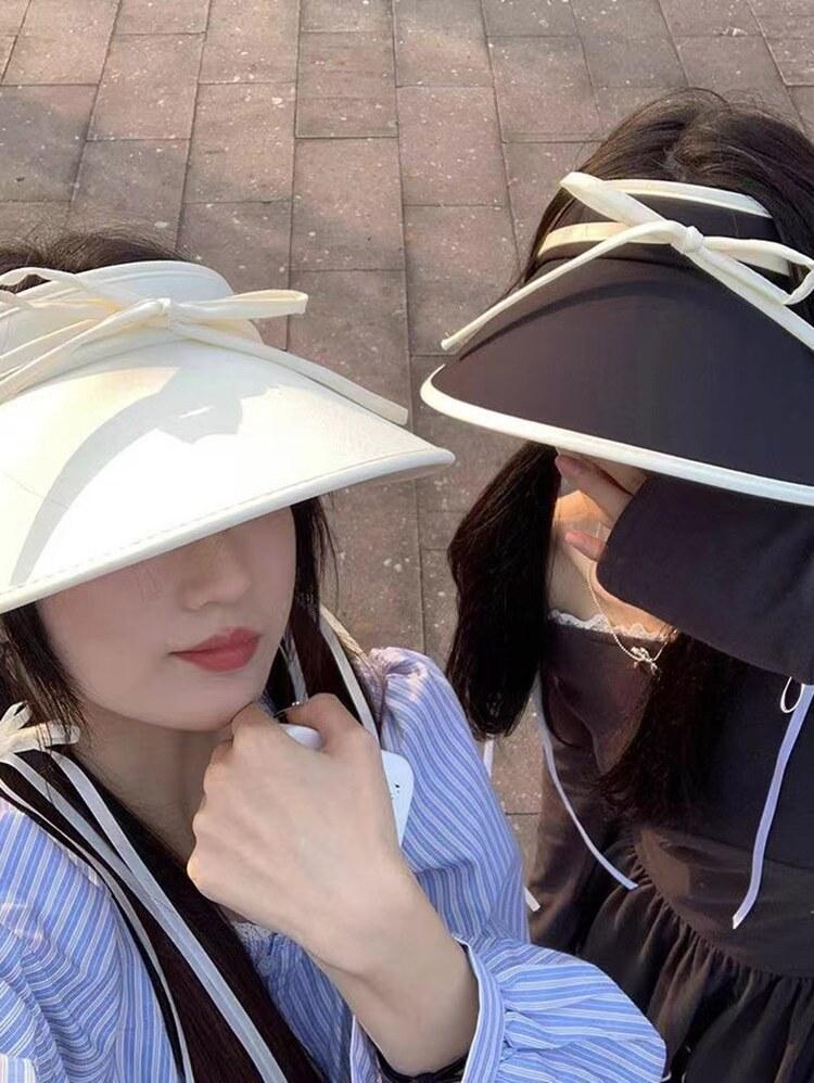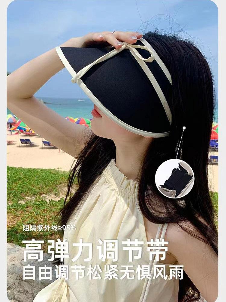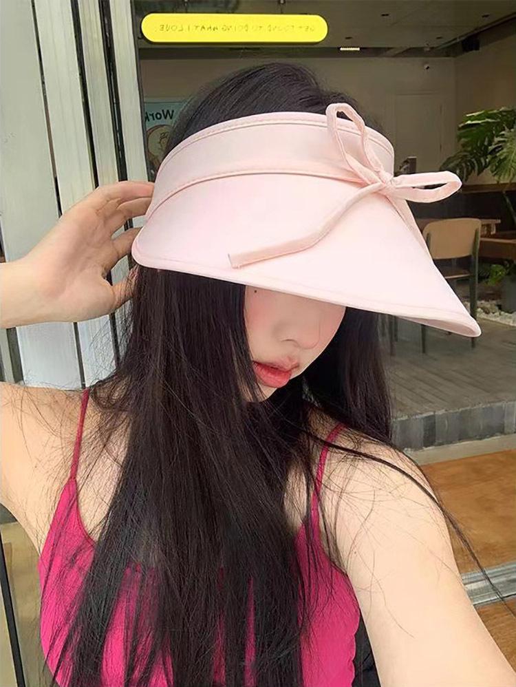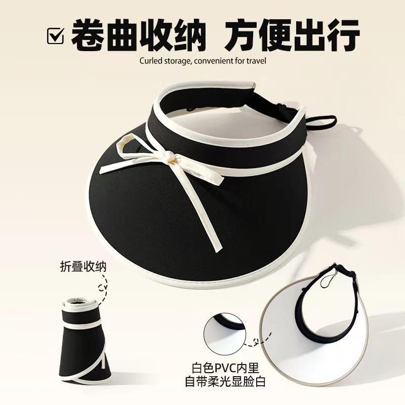Sombrero para el sol con lazo para mujer, verano, ala grande, sombrero para el sol de seda de hielo, transpirable, para exteriores, protección ultravioleta, visera para el sol, sombrero de copa vacío