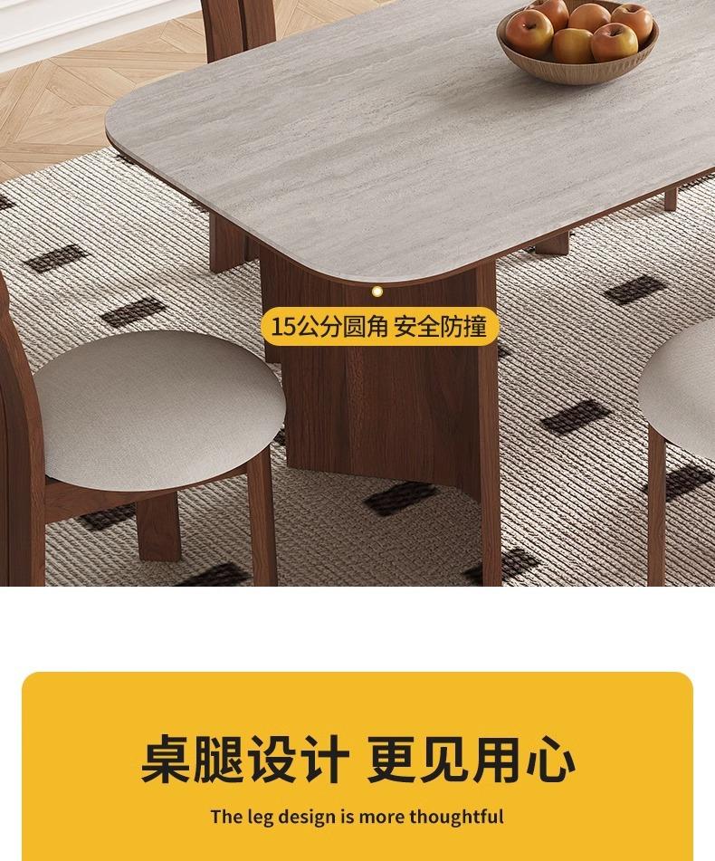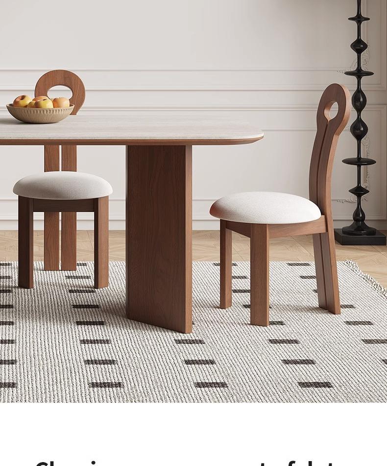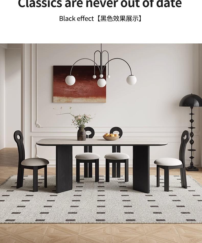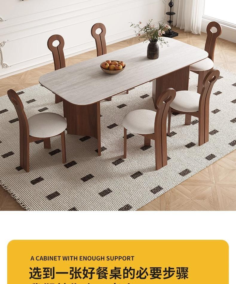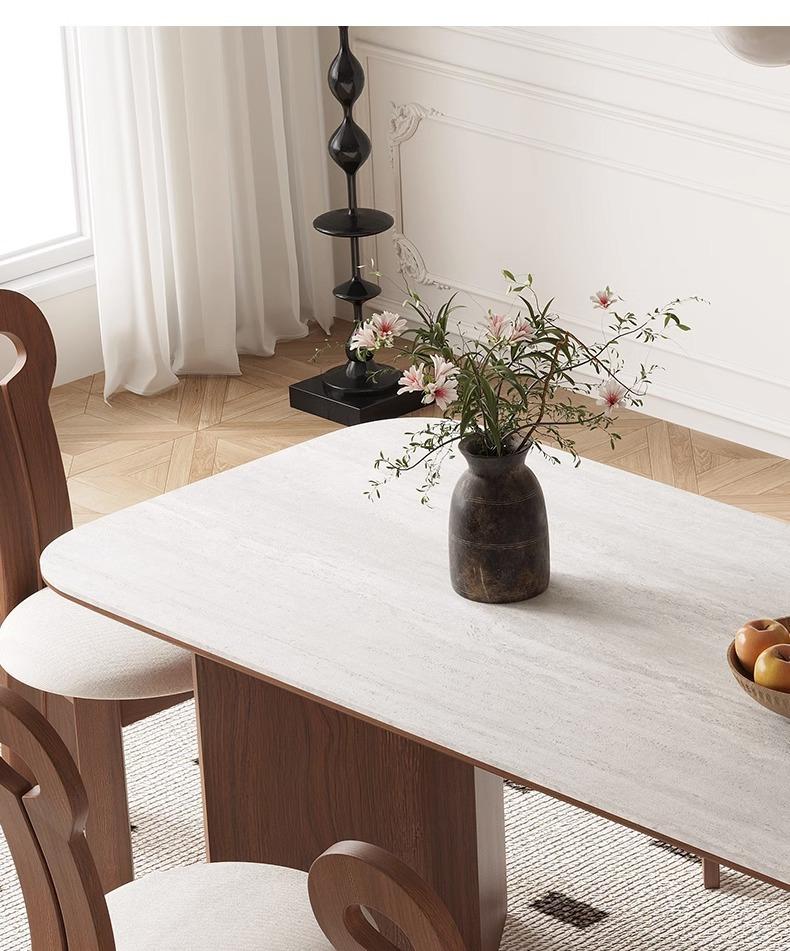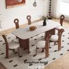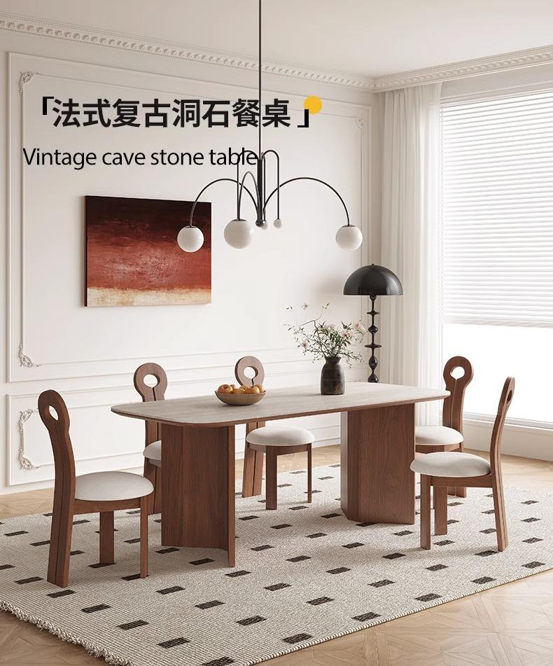Mesa de comedor de estilo francés, estilo nórdico retro, con placa de piedra, para el hogar, para apartamentos pequeños, mesa de comedor rectangular de madera maciza y combinación de silla.