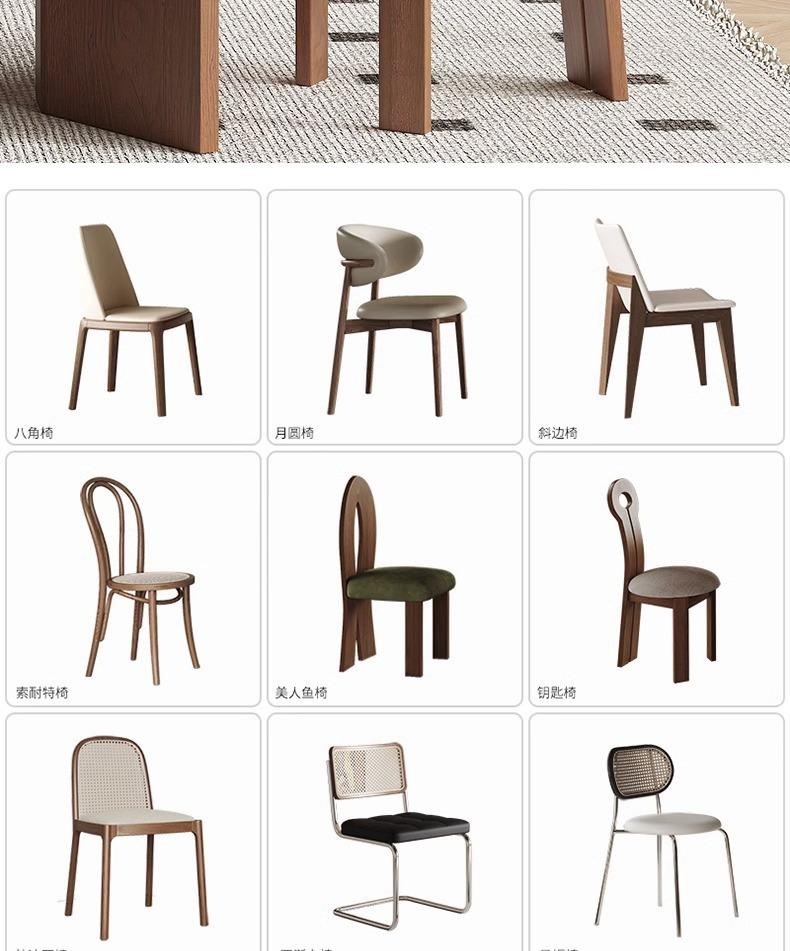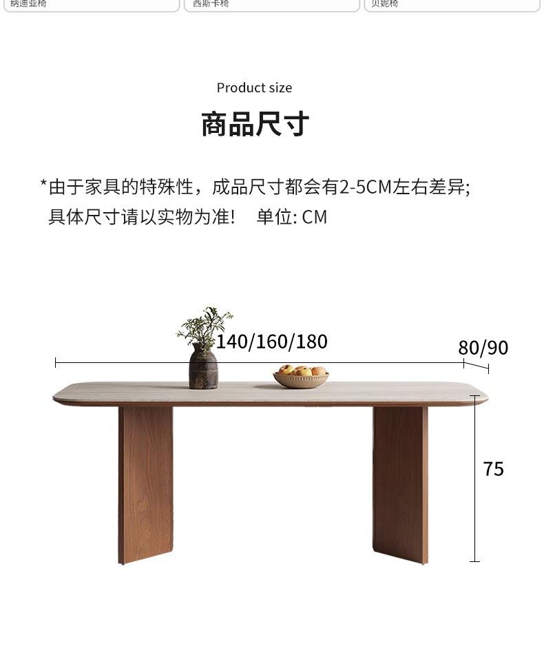 140*80*75 solid wood dining table, 160*80*75 solid wood dining table, 180*90*75 solid wood dining table, Two chairs.
