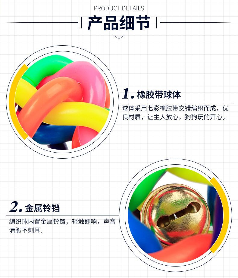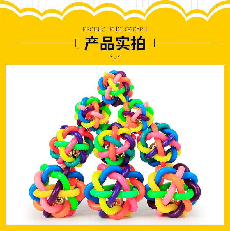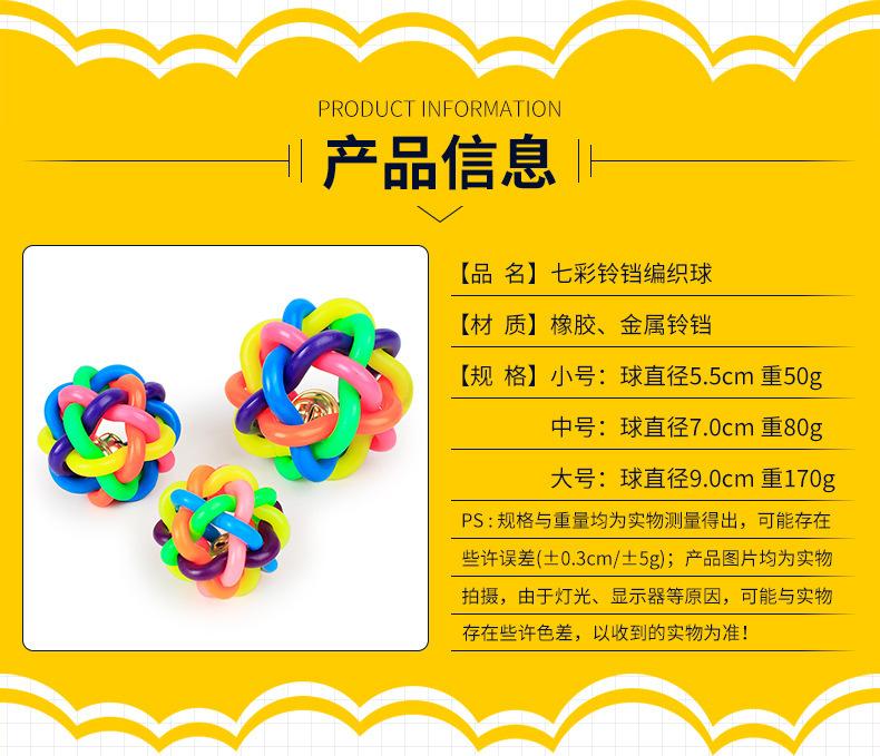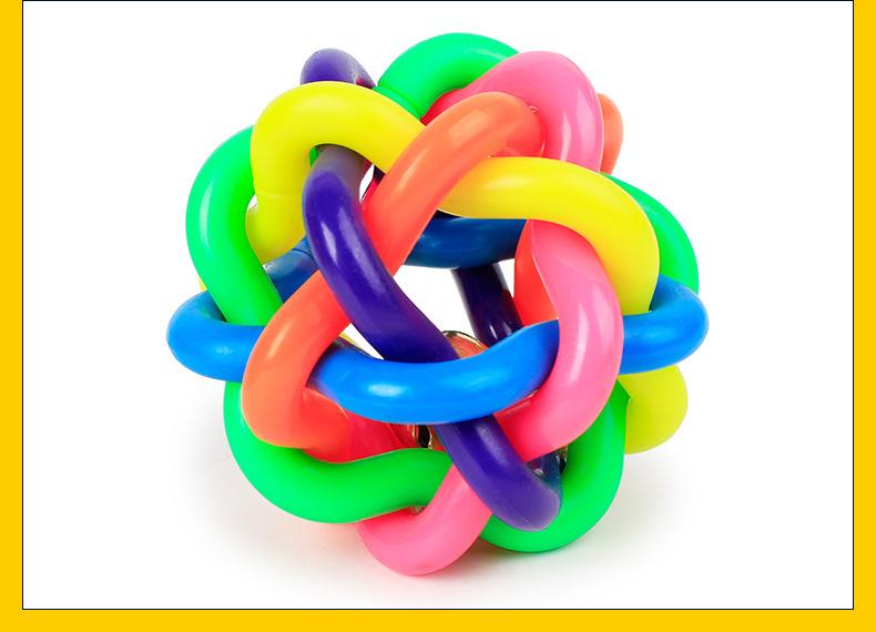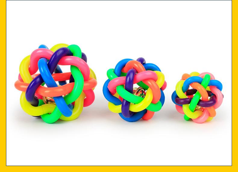 Juguete de pelota tejida con campana de colores para perros, juguete de goma para mascotas, molar con voz, suministros interactivos de entrenamiento para perros, pelota para morder perros