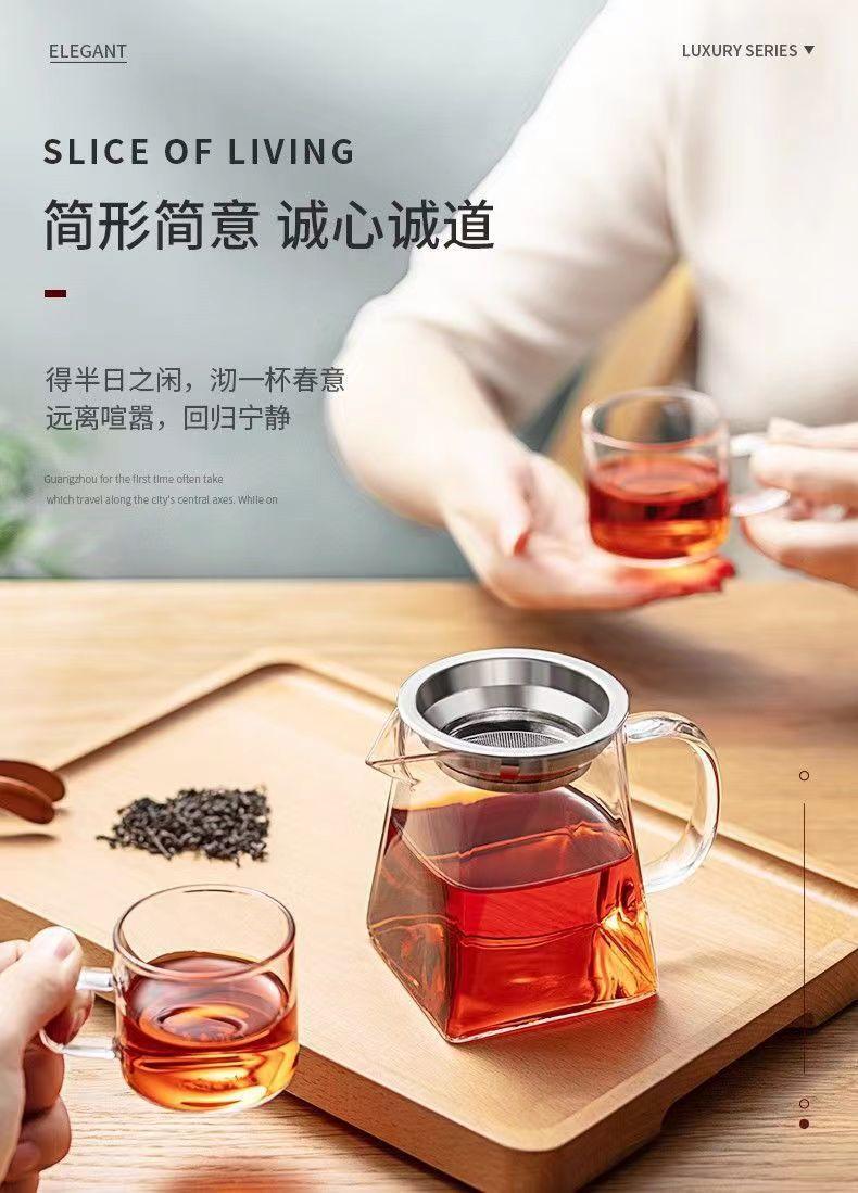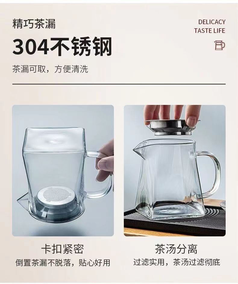 En stock, taza de vidrio transparente, juego de té de kung fu creativo, accesorios cuadrados de vidrio para hombres, taza de té de mar, fábrica al por mayor