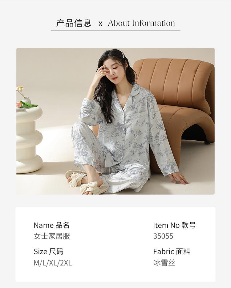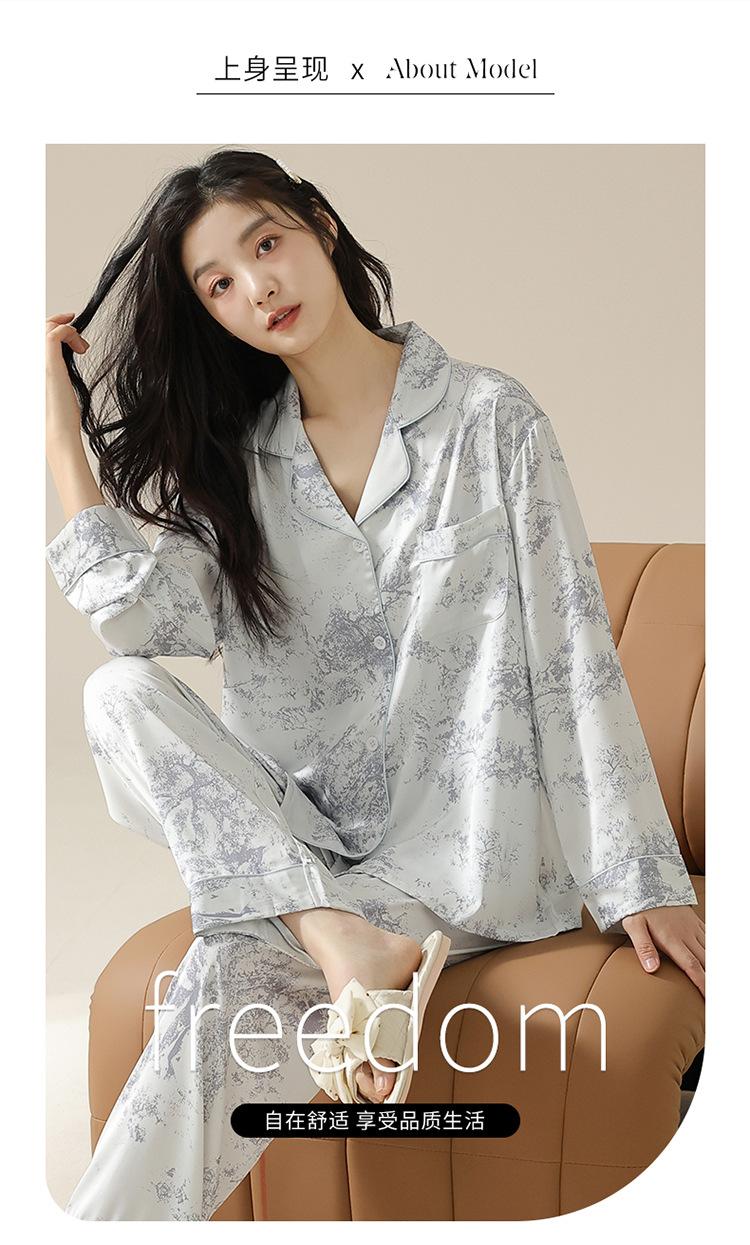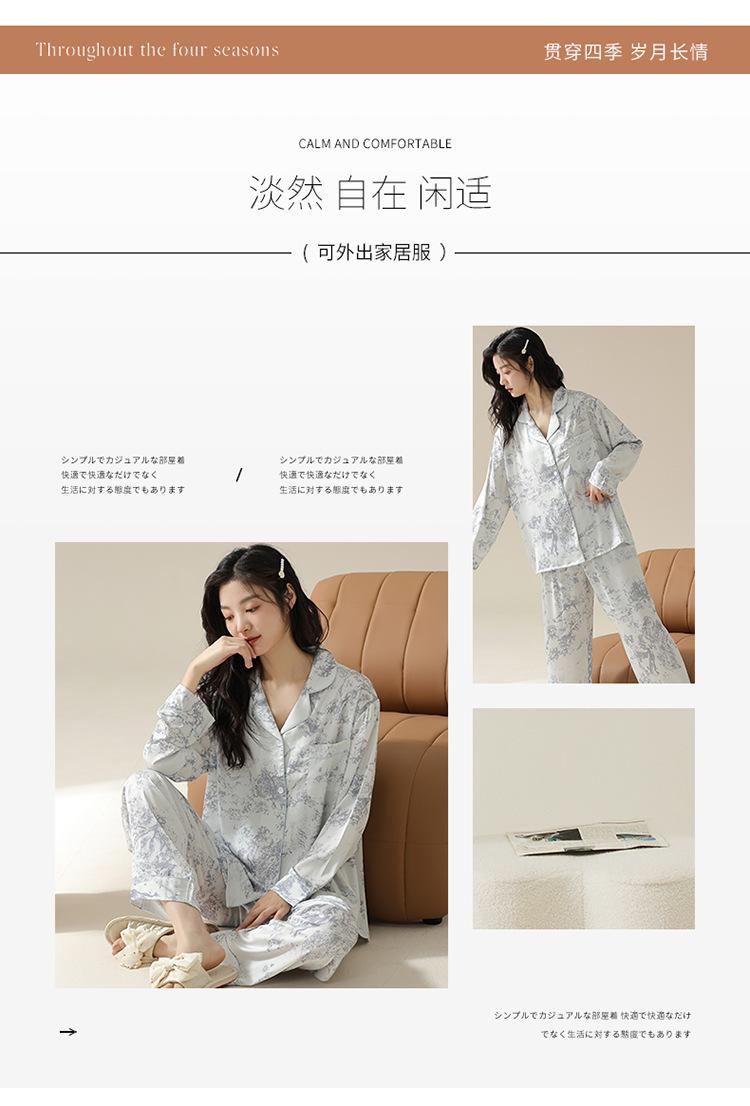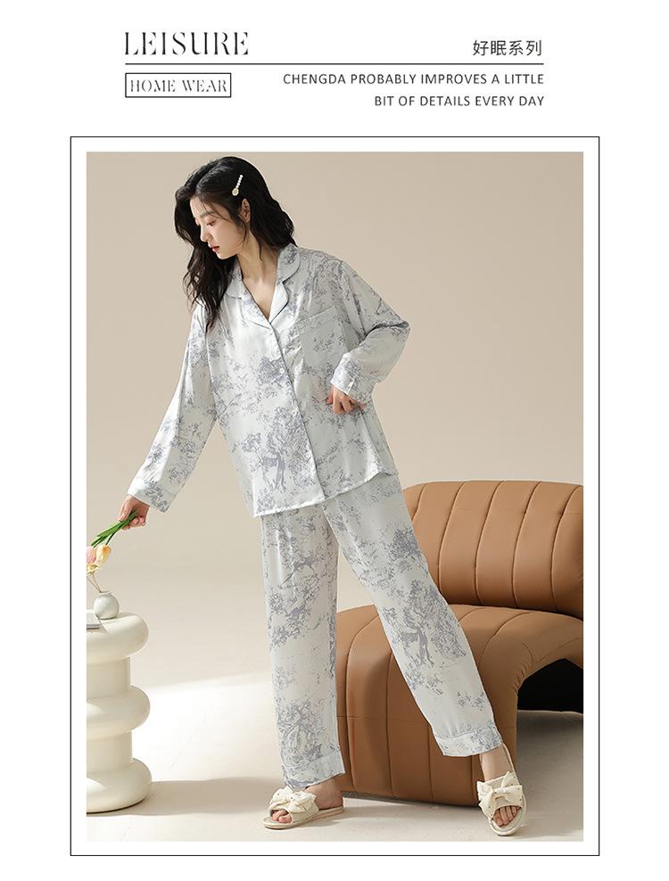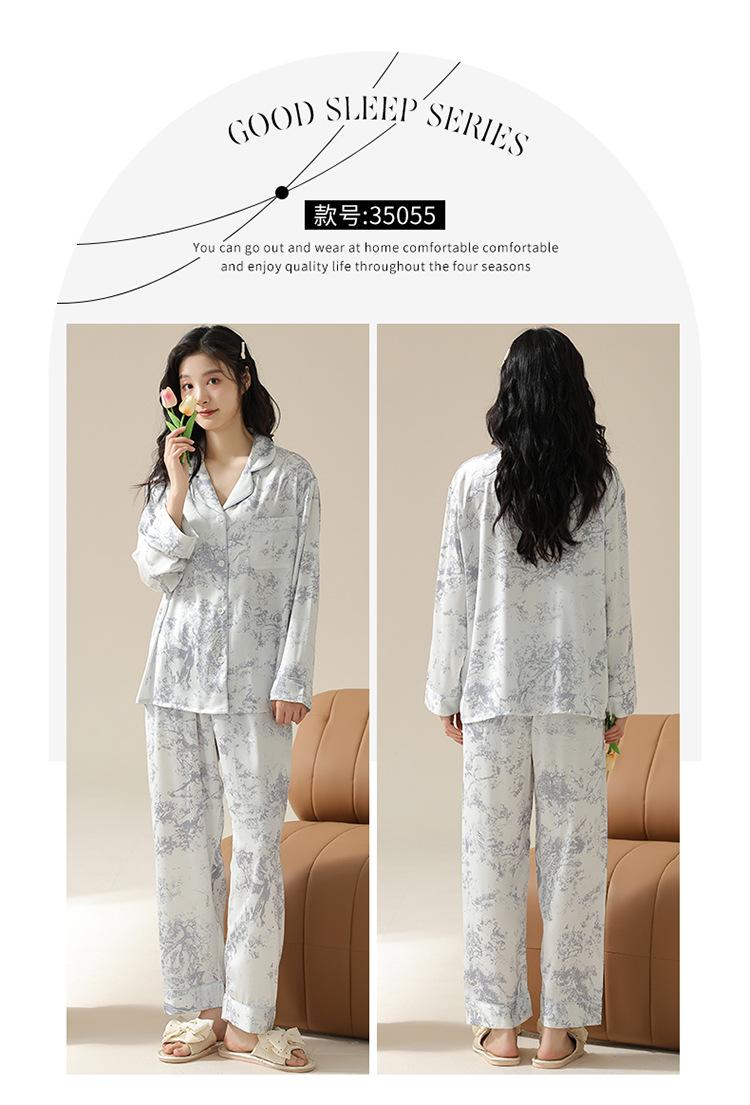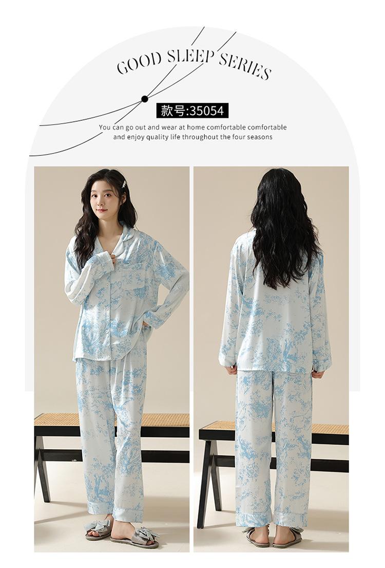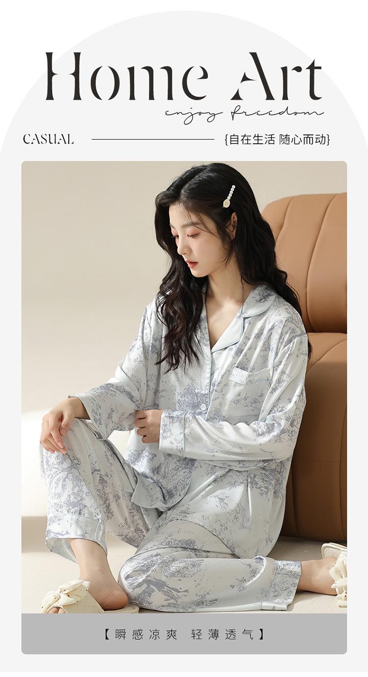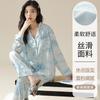 Pijama de flores de tinta para primavera y otoño para mujer, seda de hielo 2023, nuevo, fino, de manga larga, informal, estilo coreano, holgado, para el hogar