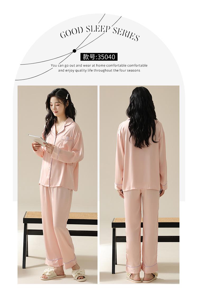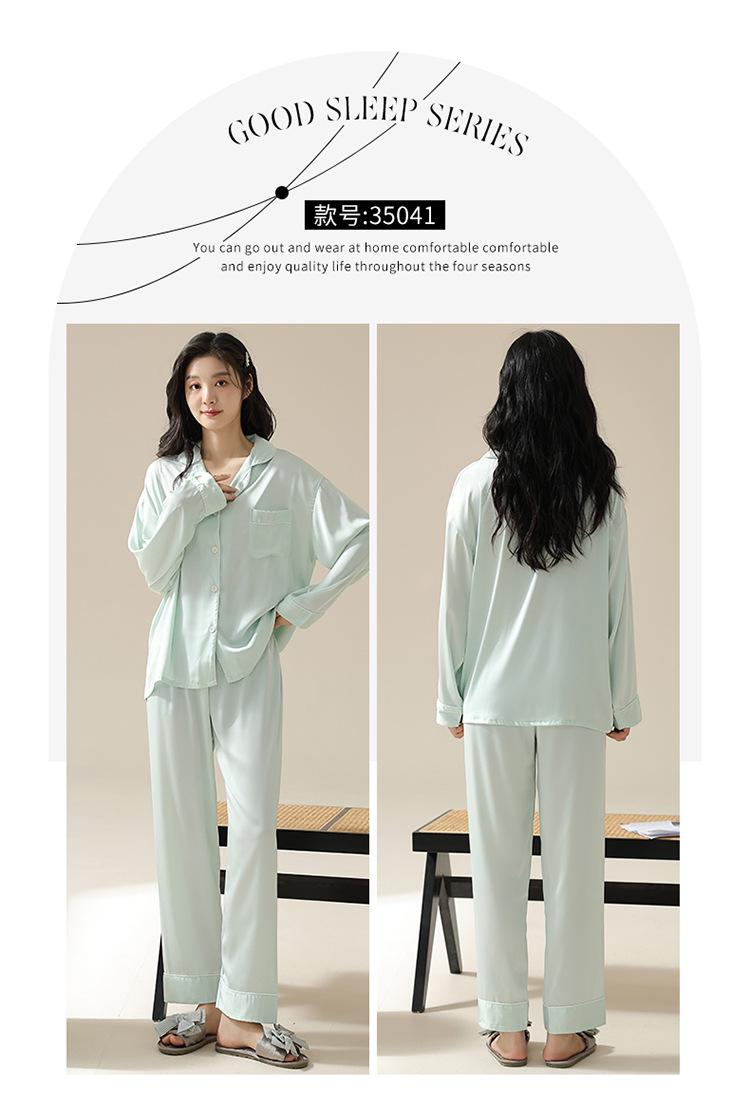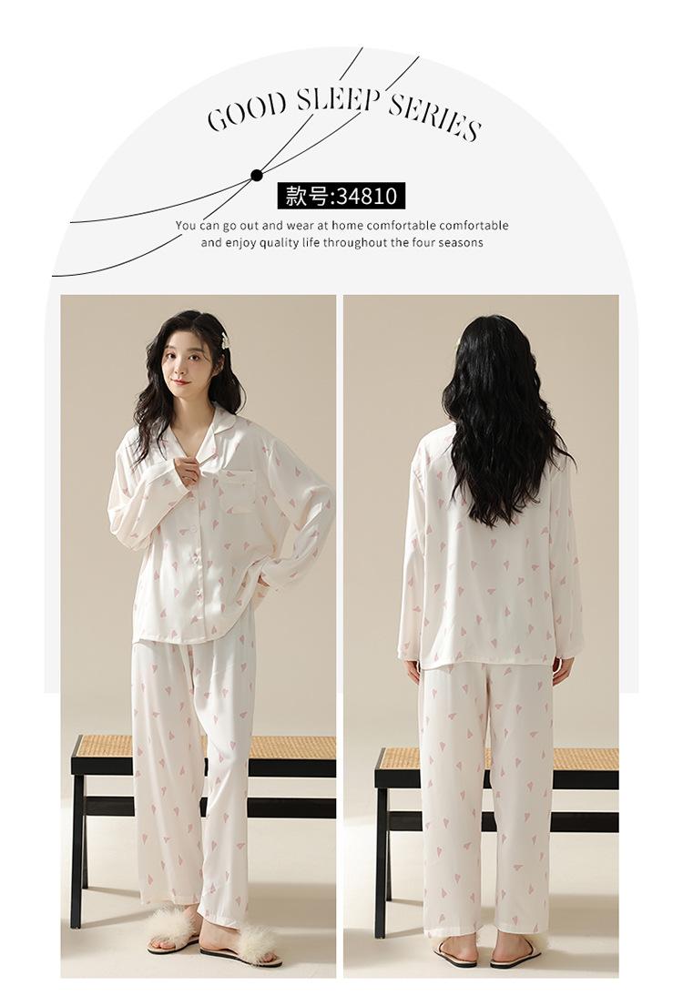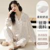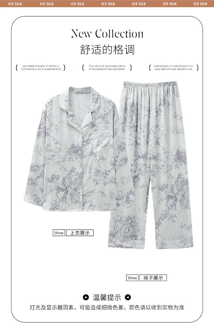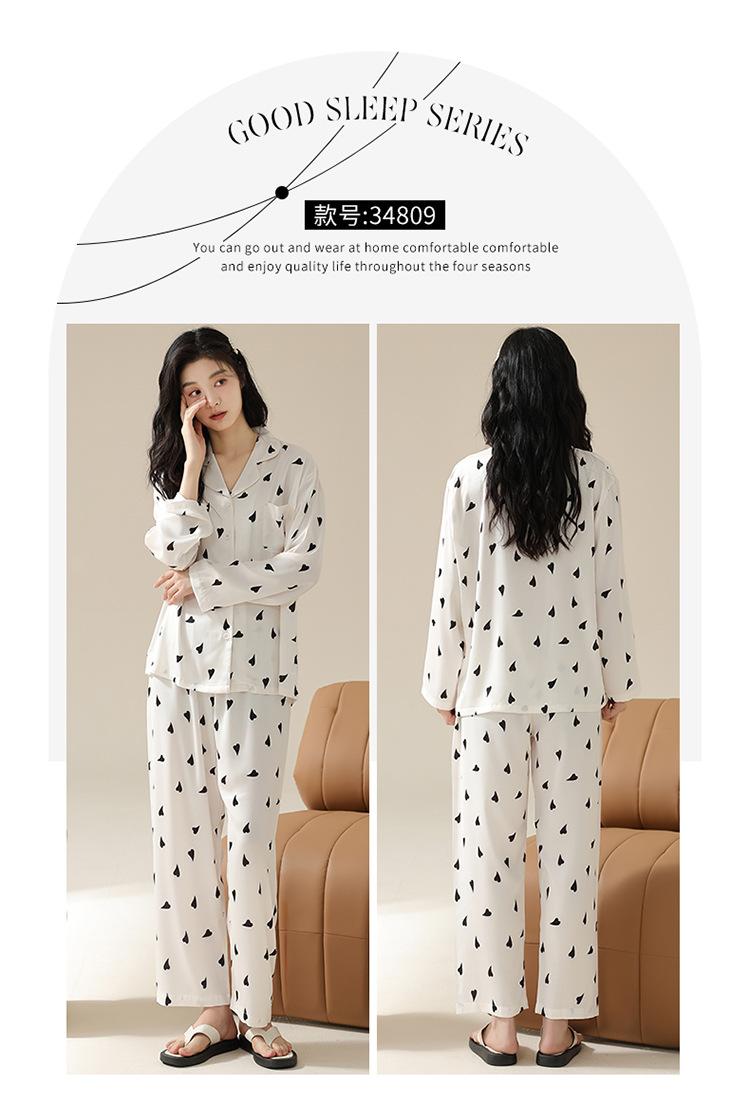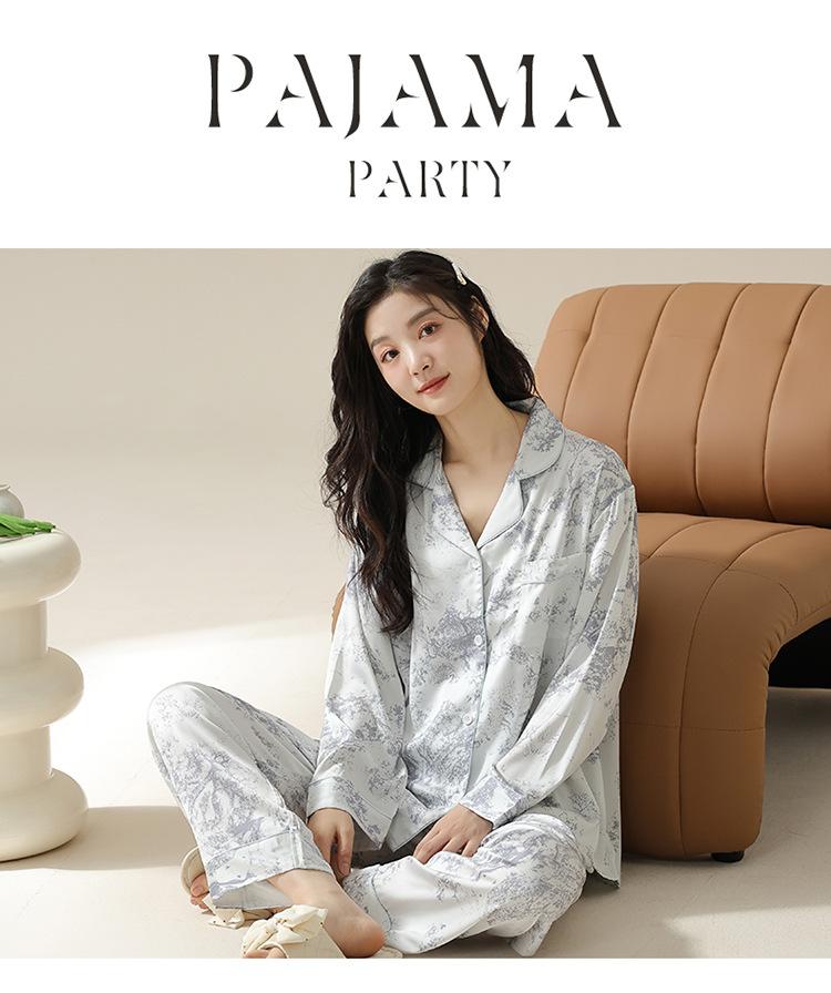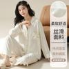 Pijama de flores de tinta para primavera y otoño para mujer, seda de hielo 2023, nuevo, fino, de manga larga, informal, estilo coreano, holgado, para el hogar