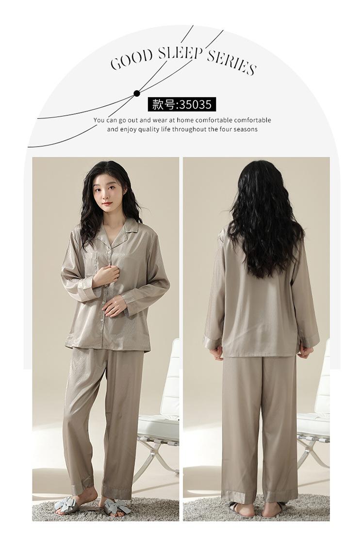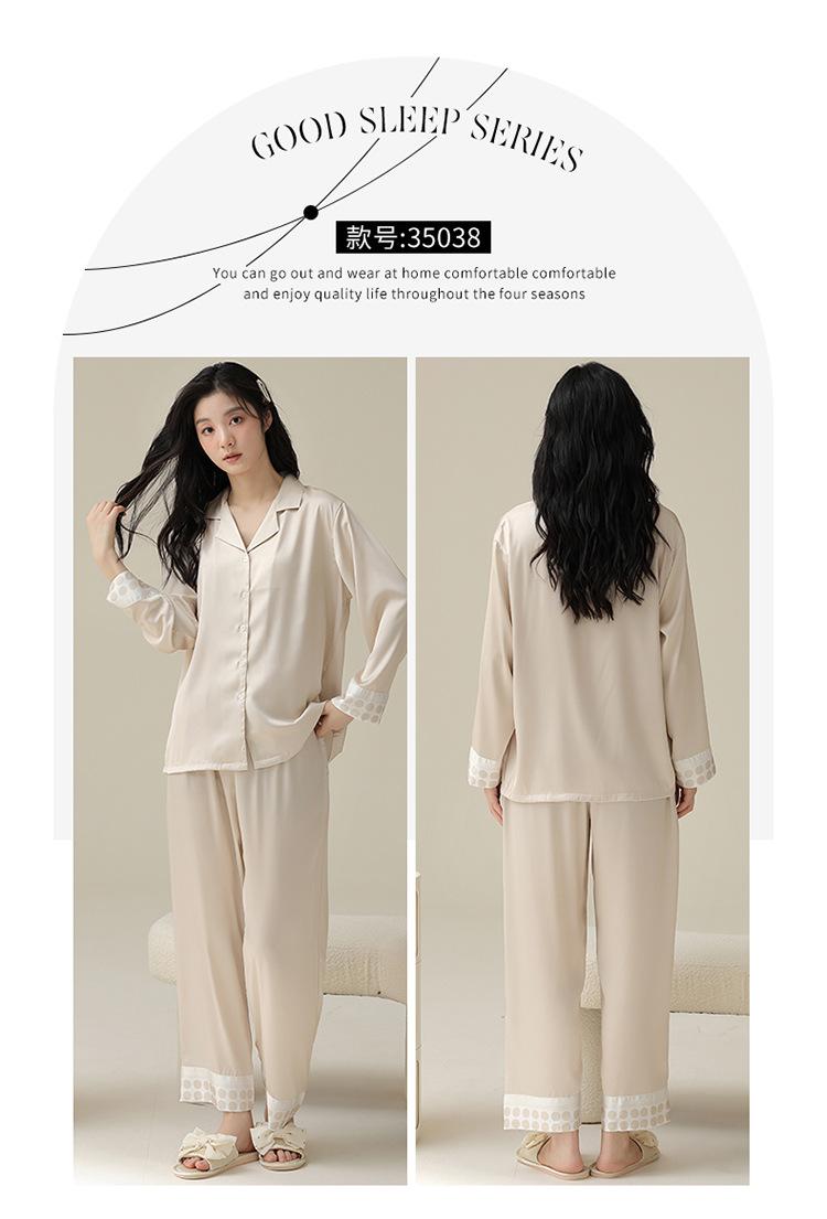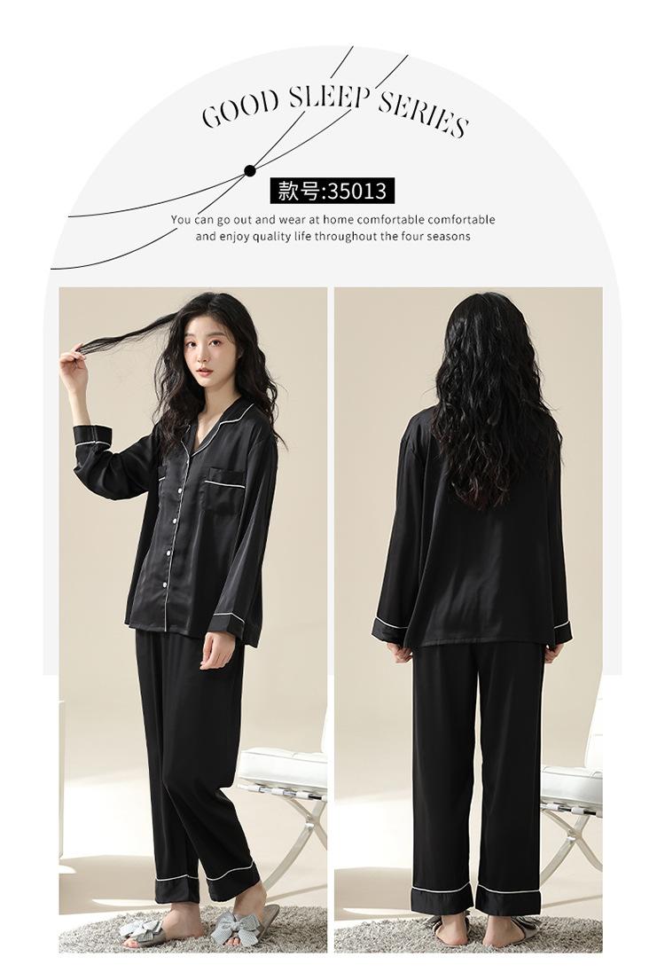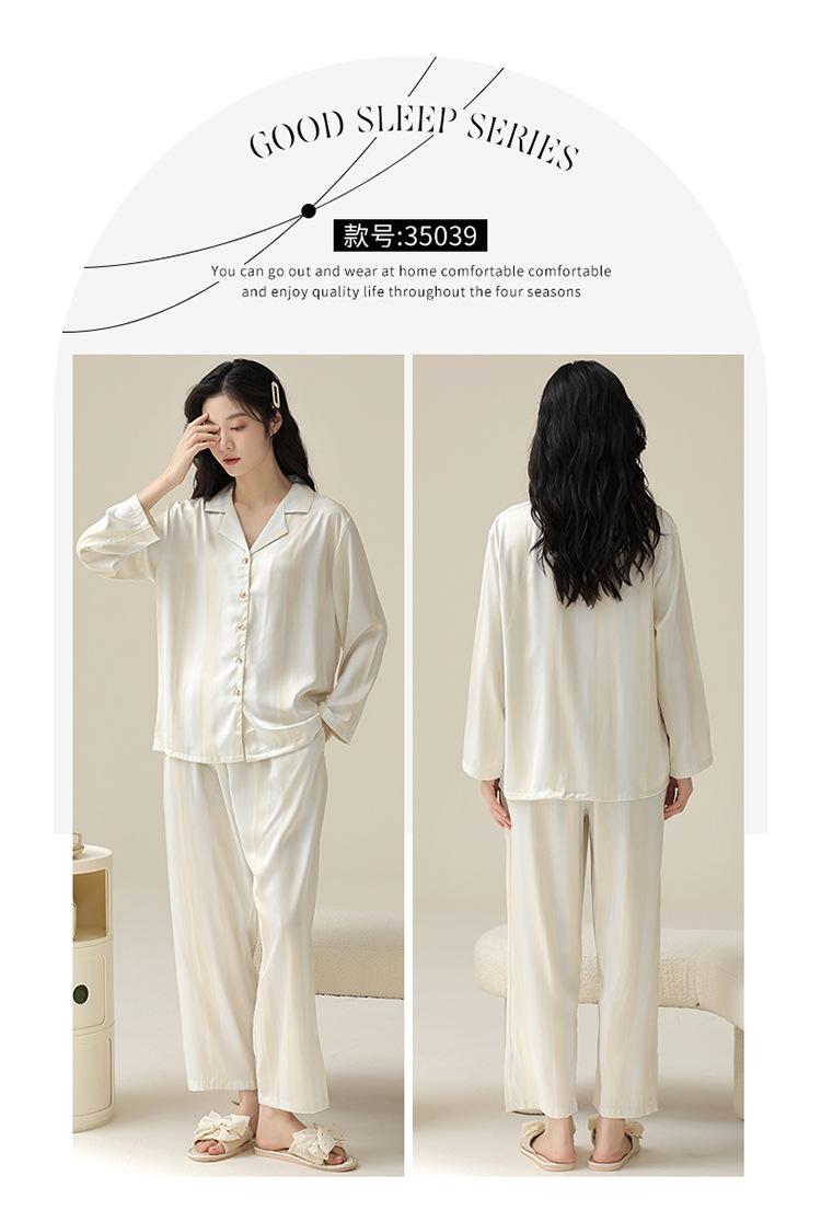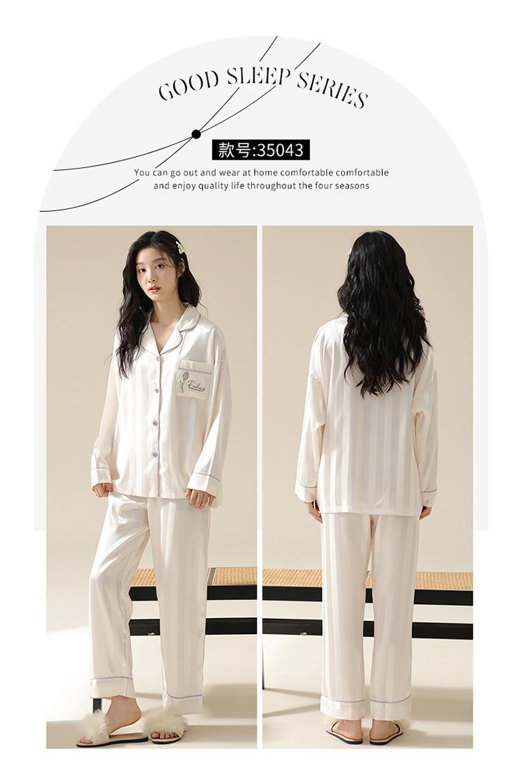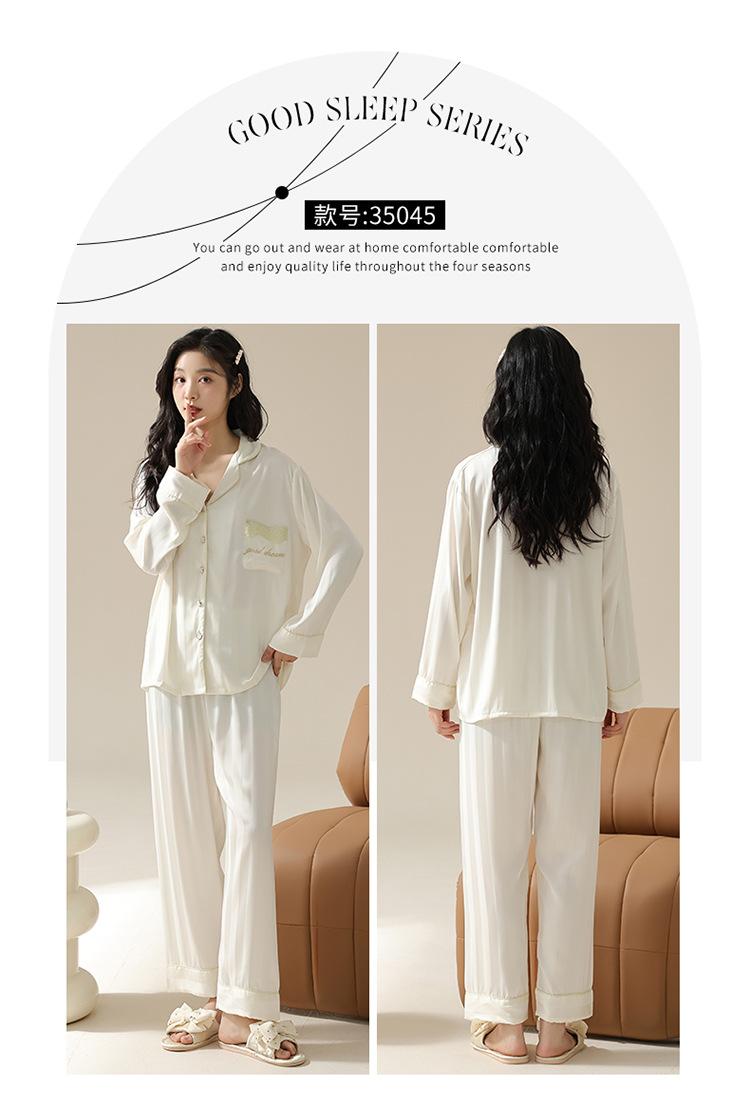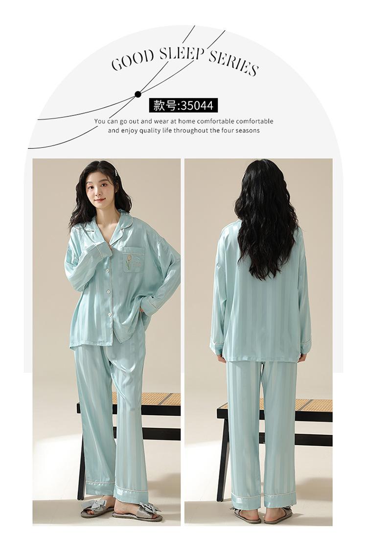 Pijama de flores de tinta para primavera y otoño para mujer, seda de hielo 2023, nuevo, fino, de manga larga, informal, estilo coreano, holgado, para el hogar