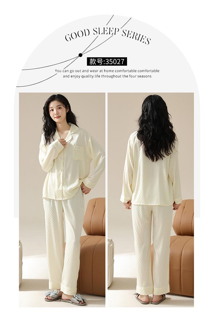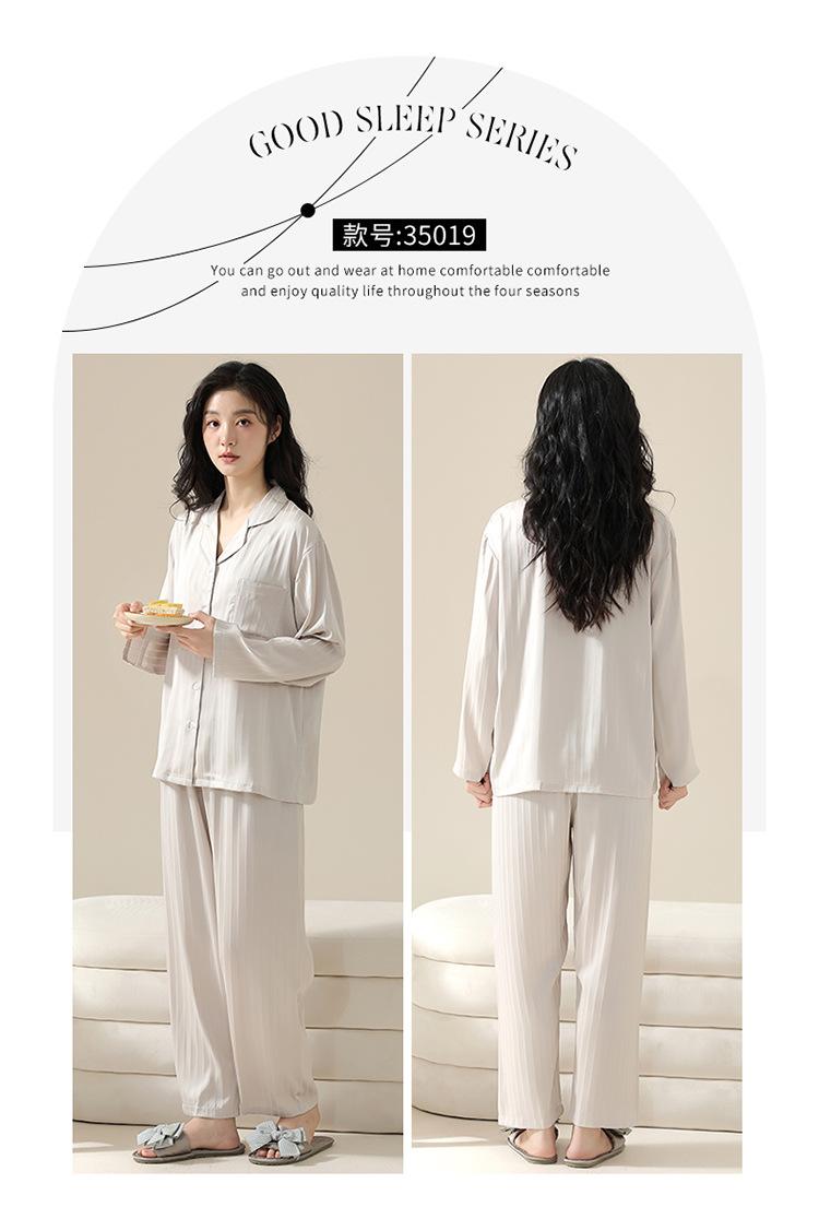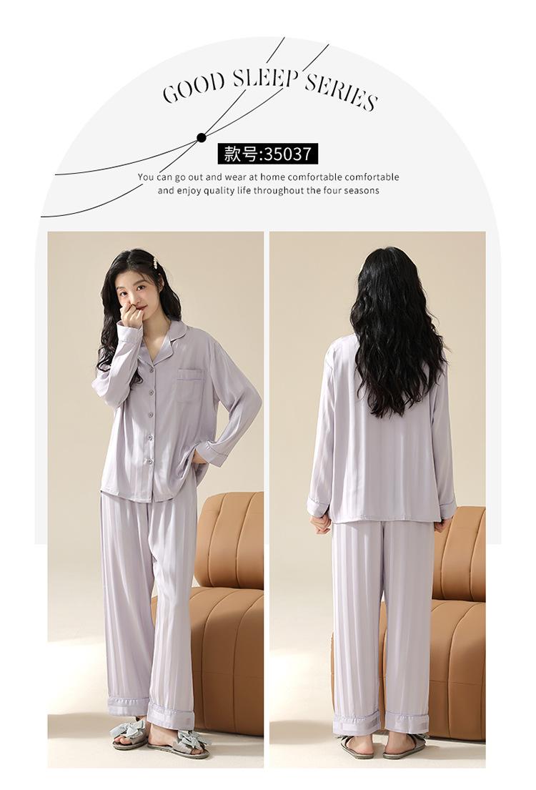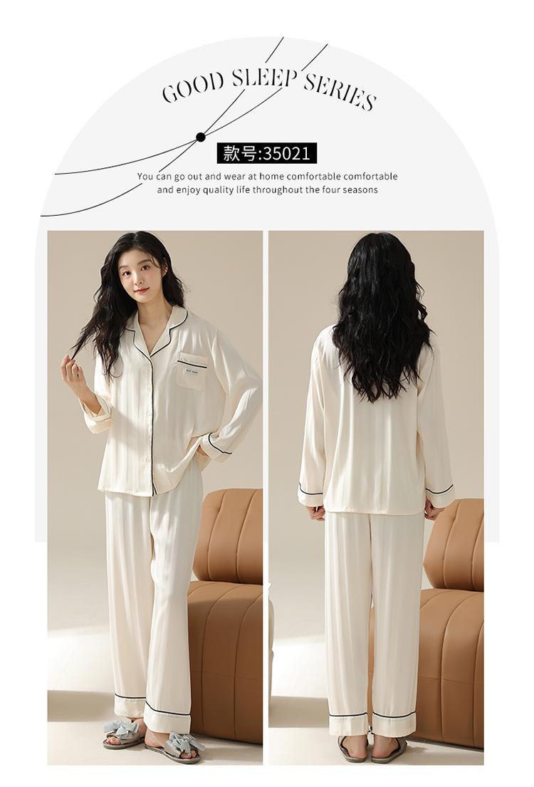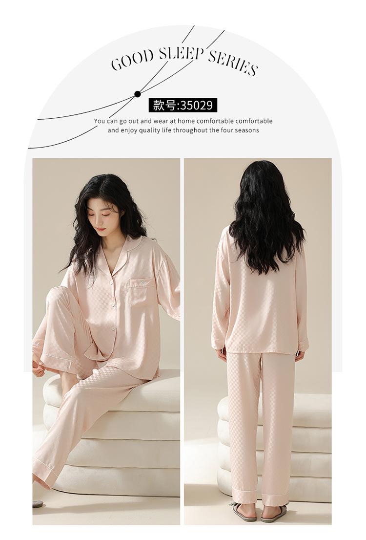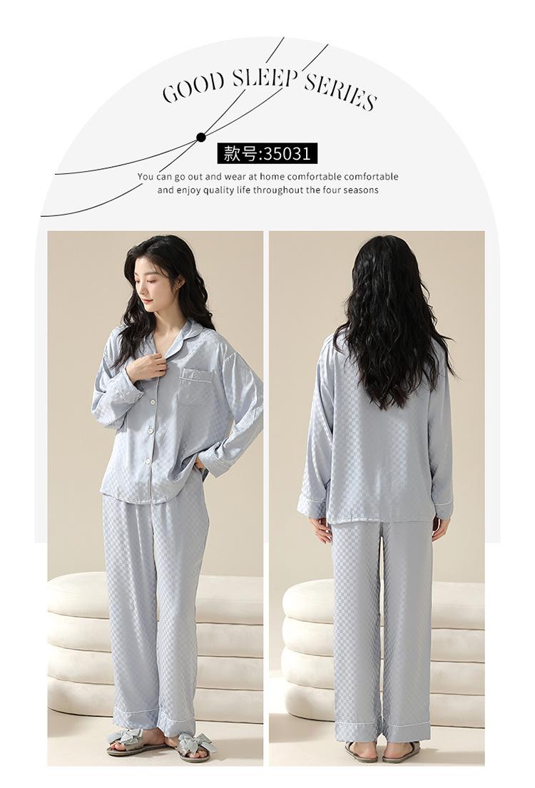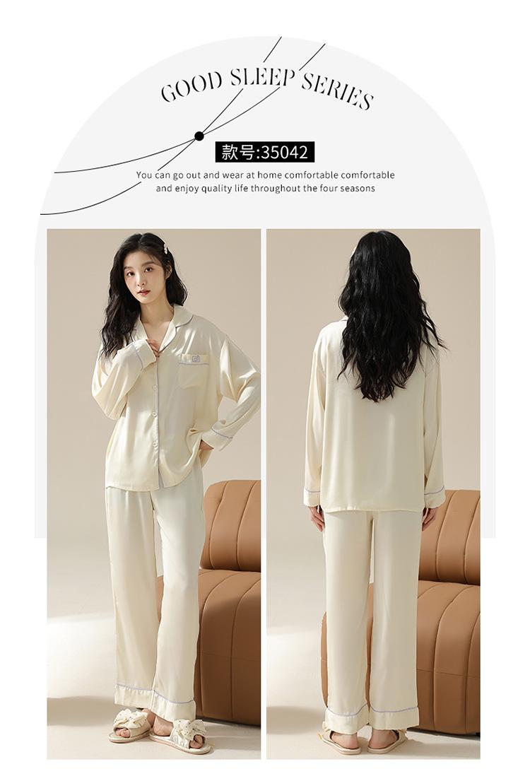 Pijama de flores de tinta para primavera y otoño para mujer, seda de hielo 2023, nuevo, fino, de manga larga, informal, estilo coreano, holgado, para el hogar