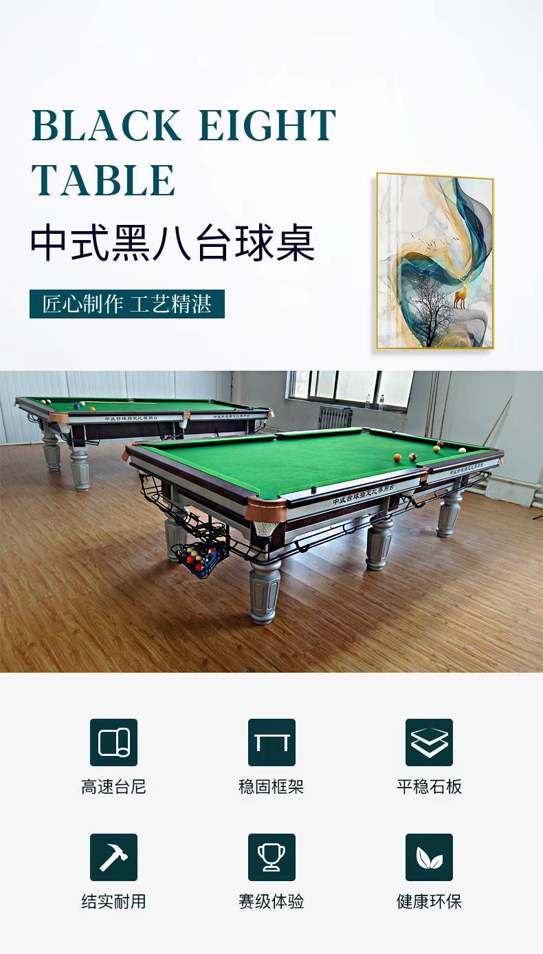 Mesa de billar Factory Spot, estándar de acero, para biblioteca, para adultos, comercial, de interior, chino-americana, negra, con ocho billares