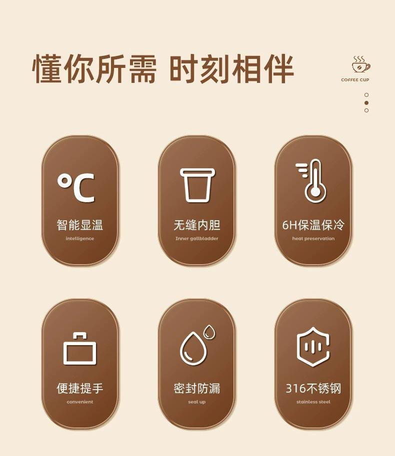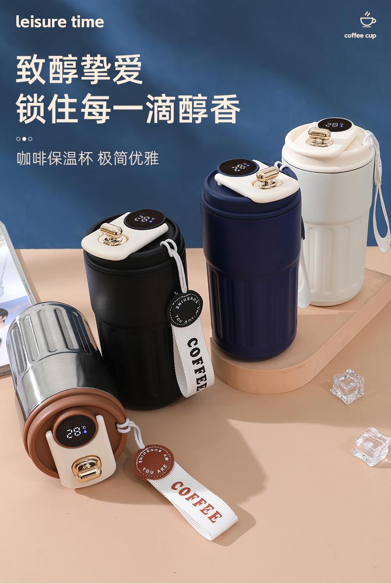 Compra Nueva taza de café inteligente de acero inoxidable 316, termo de doble vacío portátil con cuerda, taza acompañante para el hogar y la oficina al por mayor en Joom.pro