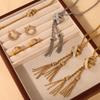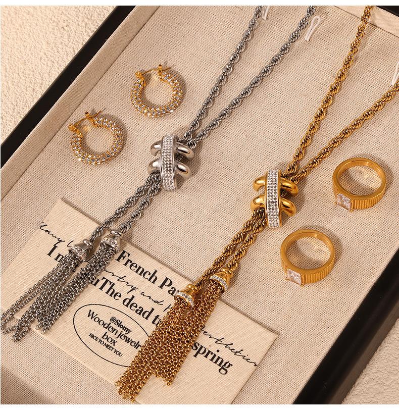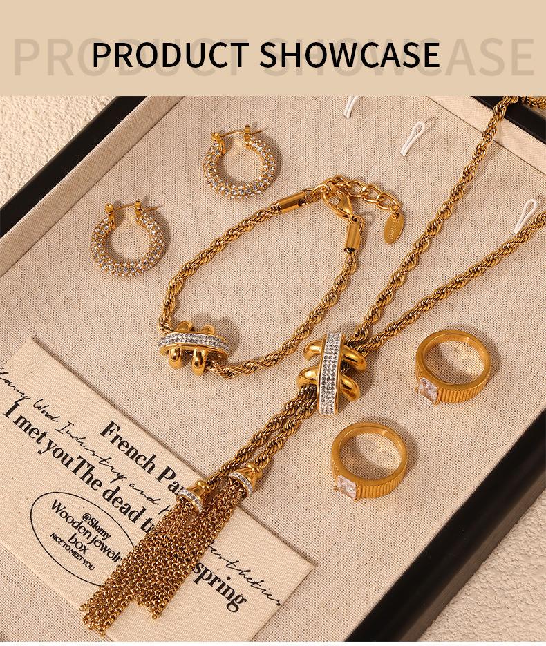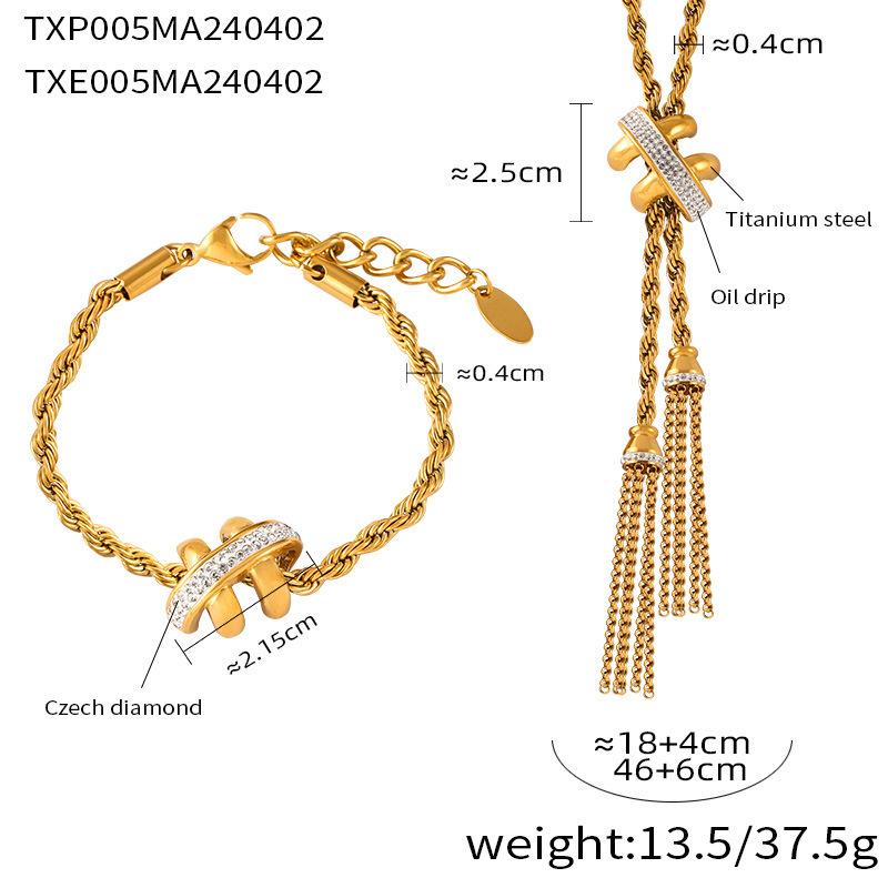 TXP005-gold necklace, TXP005-steel color necklace, TXE005-gold bracelet, TXE005-Steel Bracelet, F083-Gold Earr...