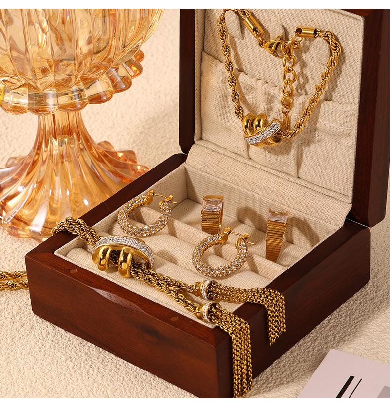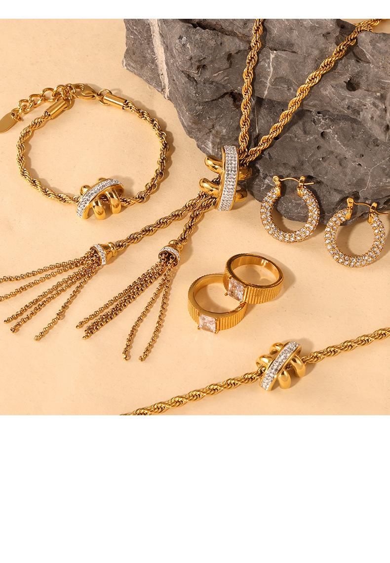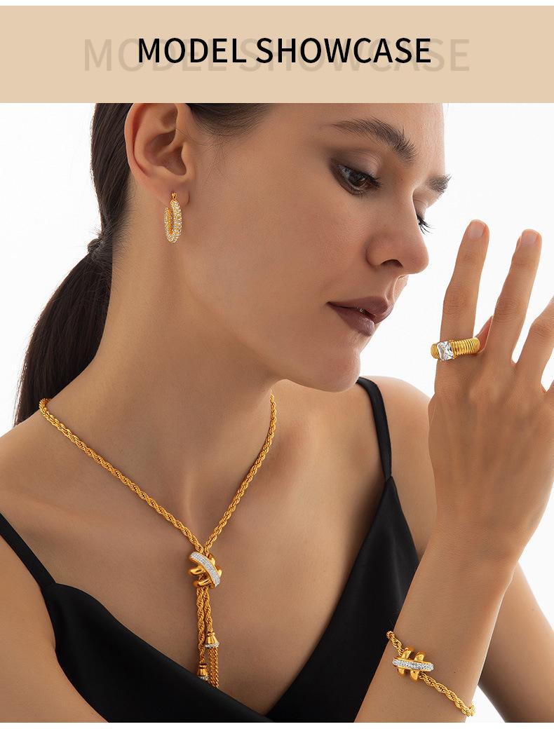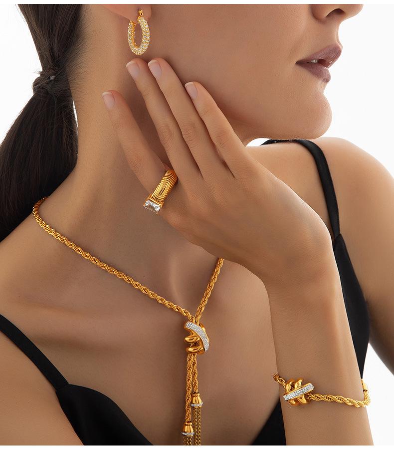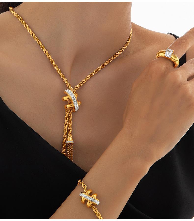 Cadena torcida simple europea y americana, joyería de acero de titanio chapada en oro, diseño de diamantes de lujo ligero, elegante juego de joyas para todo tipo de ocasiones.