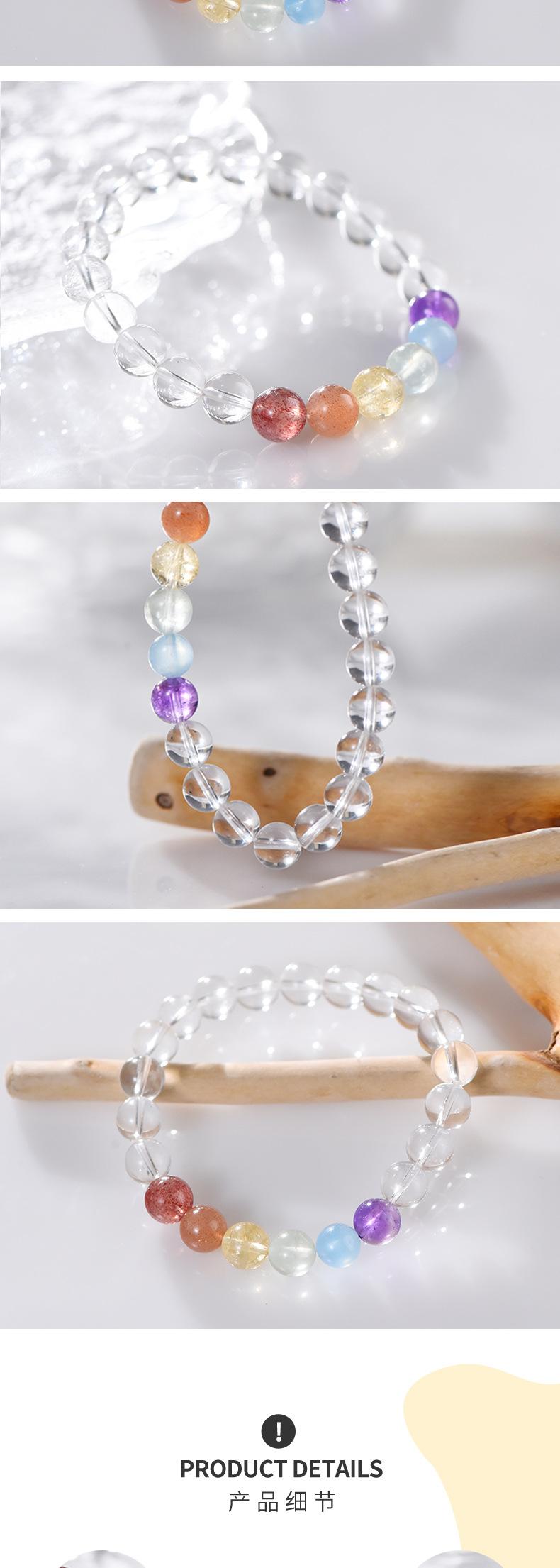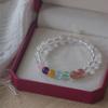 Pulsera de Círculo Sencillo de Cuentas Redondas de Cristal Blanco con Degradado de Arcoíris Colorido Natural al por Mayor Tejida a Mano Cuerda de Mano Accesorios Joyería