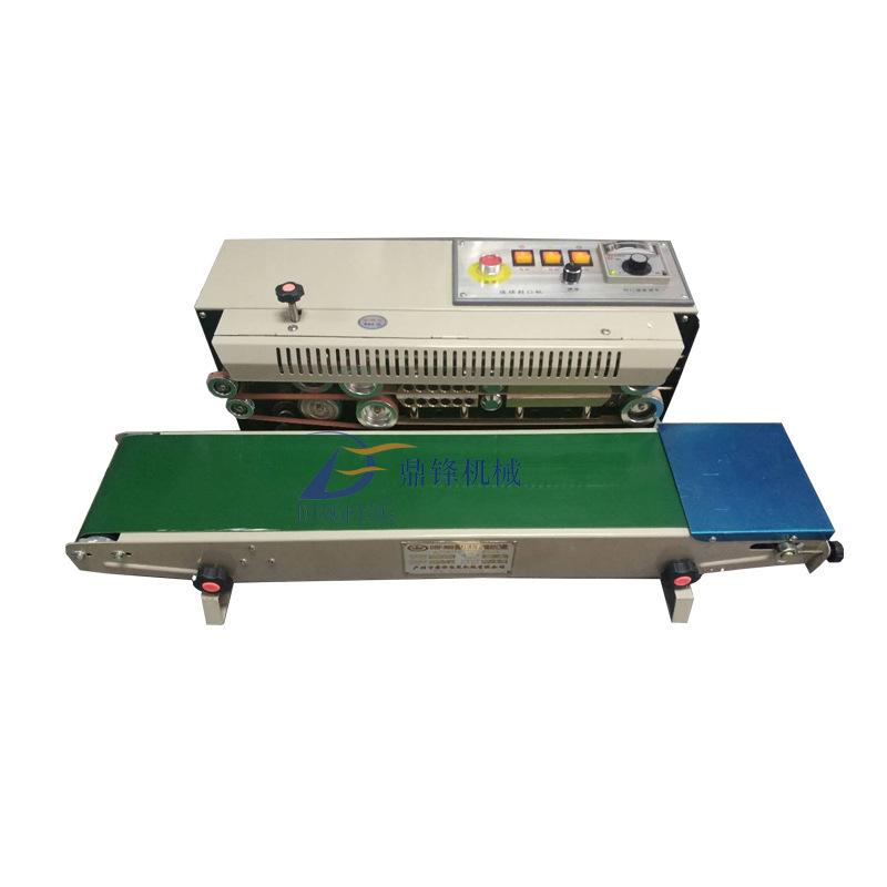 Descripción del Producto Esta serie de máquinas selladoras tiene las funciones de transporte continuo, sellado e impresión en una sola pasada, y se puede utilizar en posiciones horizontal, vertical o de pie. Adopta control electrónico de temperatura constante y mecanismo de transmisión de regulación de velocidad continua, y es adecuada para películas plásticas de diversos materiales. Parámetros técnicos