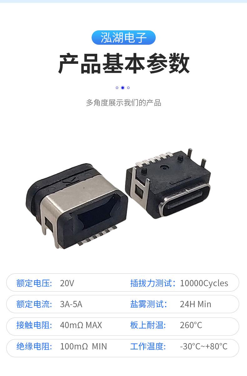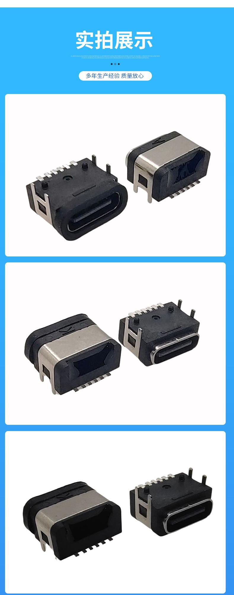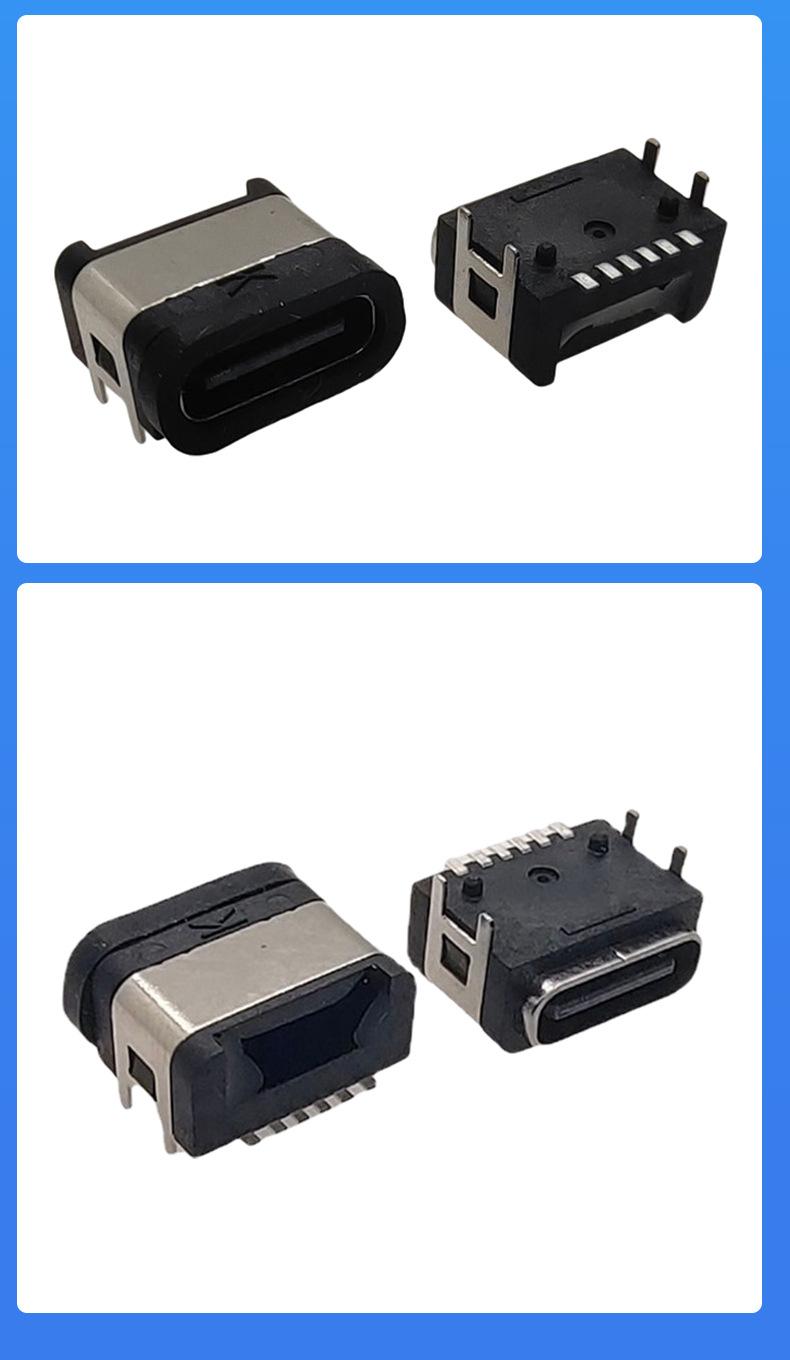 Conector hembra impermeable tipo C de 6 pines, conector tipo C, terminal enchufable de cuatro pines, conector SMD impermeable.