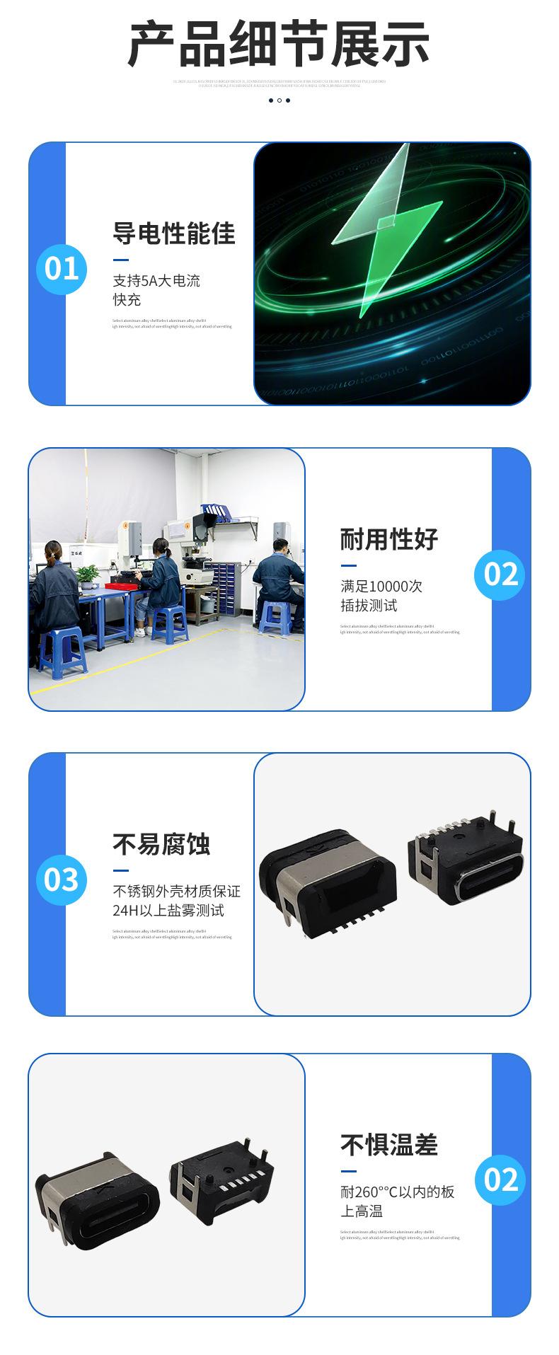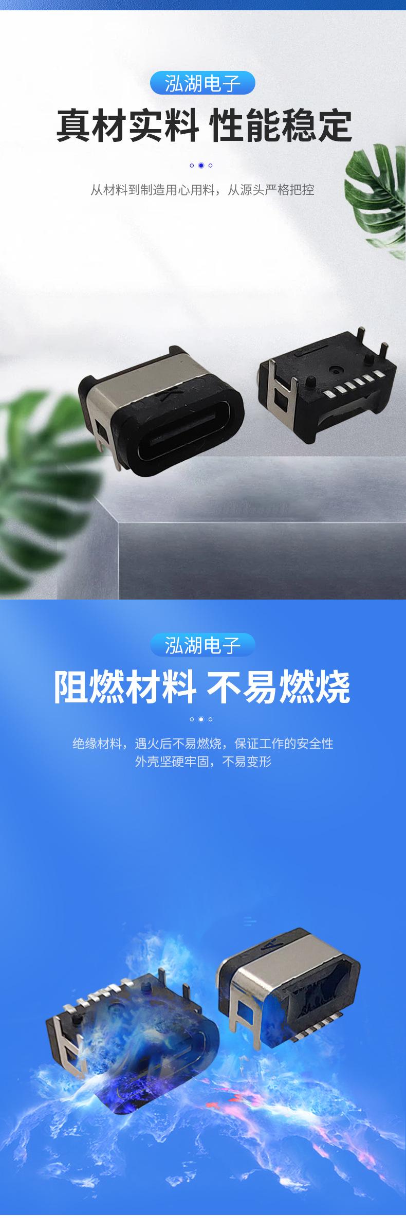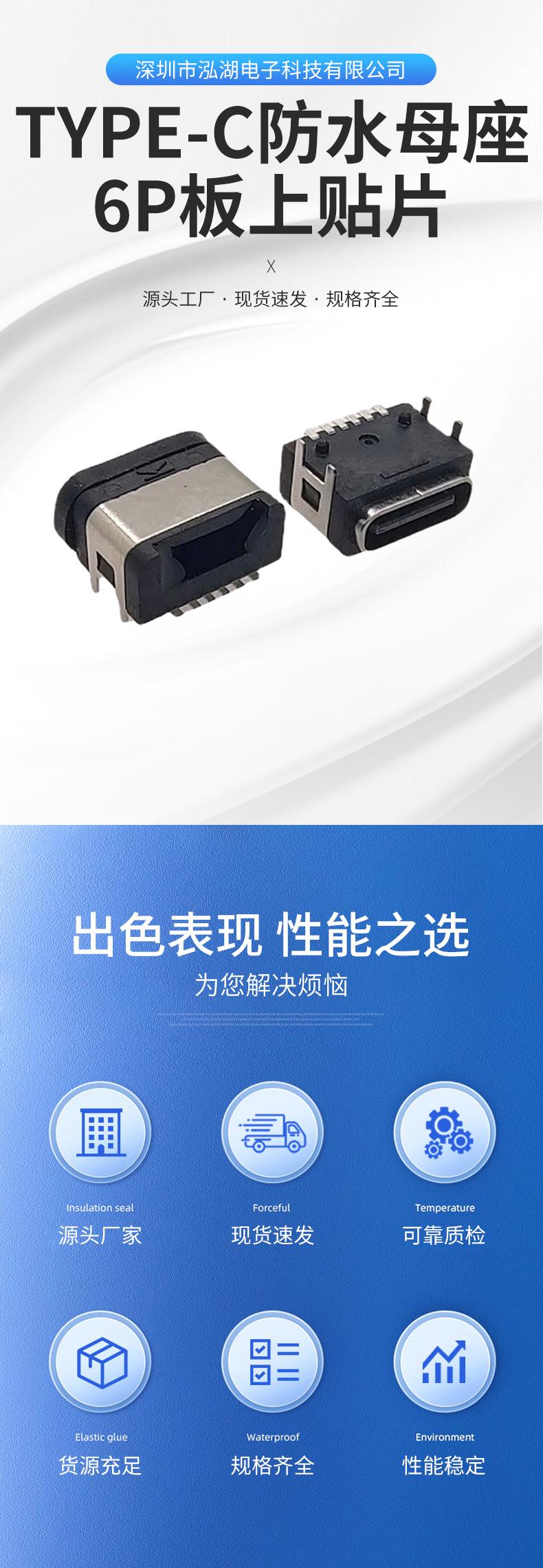 TYPE-C female seat waterproof 6pin on board patch connector