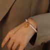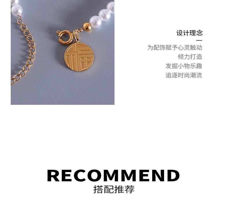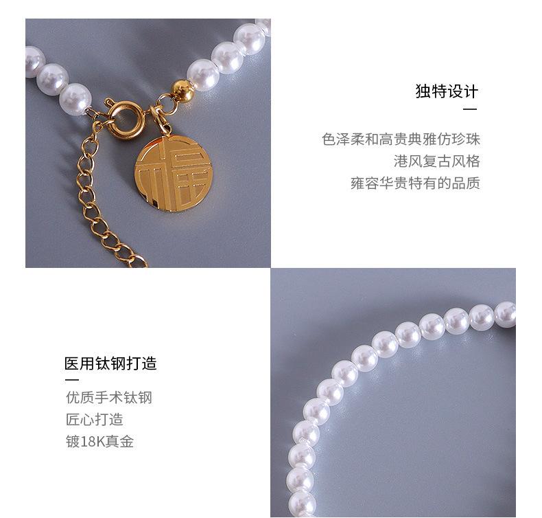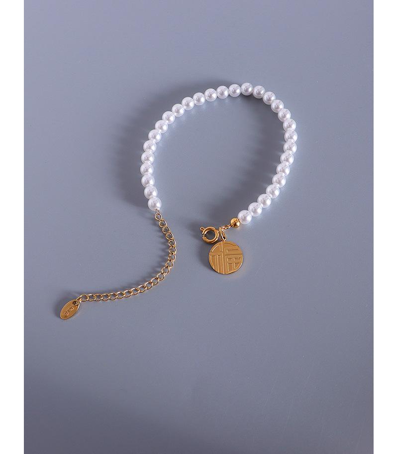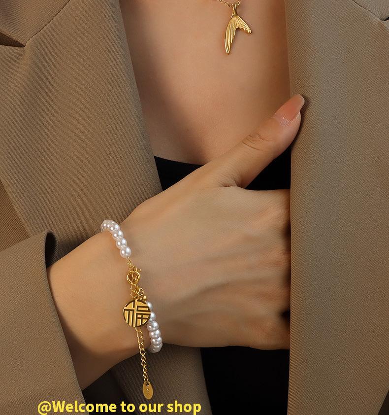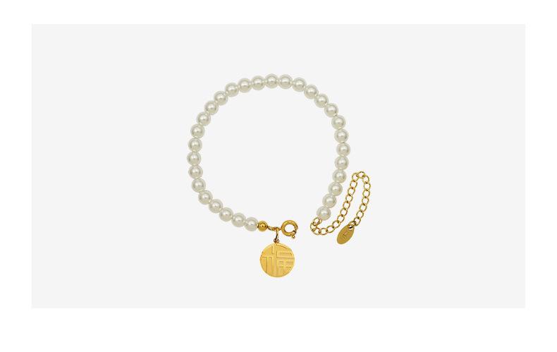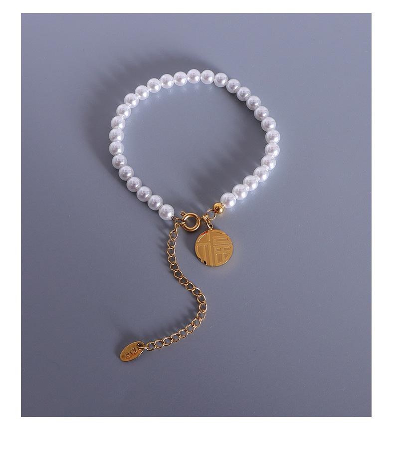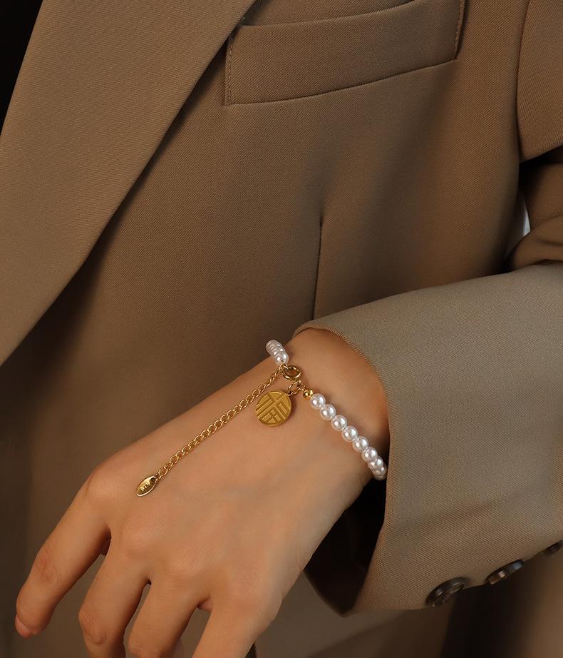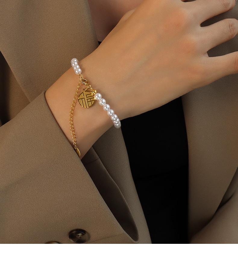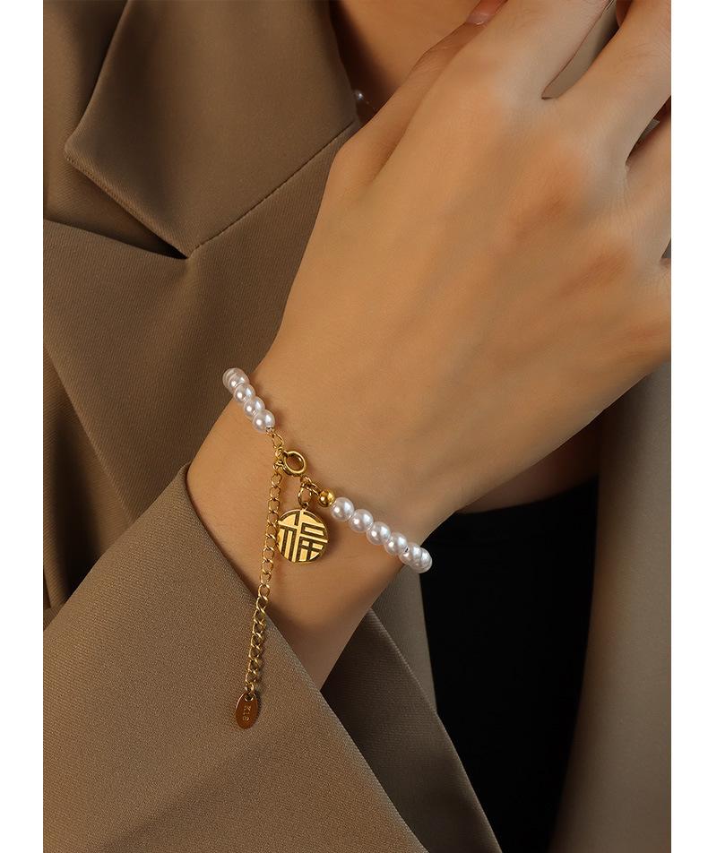 Compra Pulsera Redonda Estilo Chino Marca Carácter Fu Imitación Perla Pulsera de Novia Pulsera de Mujer Acero de Titanio Oro de 18k Joyería E242 al por mayor en Joom.pro