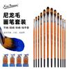 Juego de pinceles de nailon y lana para óleo transfronterizos, pinceles acrílicos para pintura artística, bolígrafos de acuarela para estudiantes, venta al por mayor