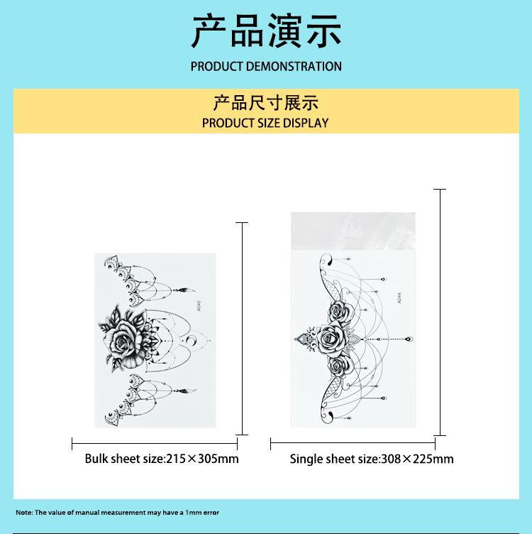Venta al por mayor directa de fábrica de tatuajes de clavícula en blanco y negro para hombres y mujeres, pegatinas sexys de tatuajes de flores frescas