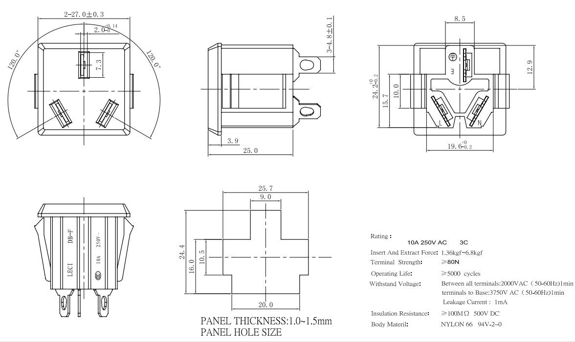 1. Parámetros eléctricos: 10 A 250 V CA