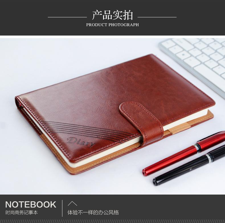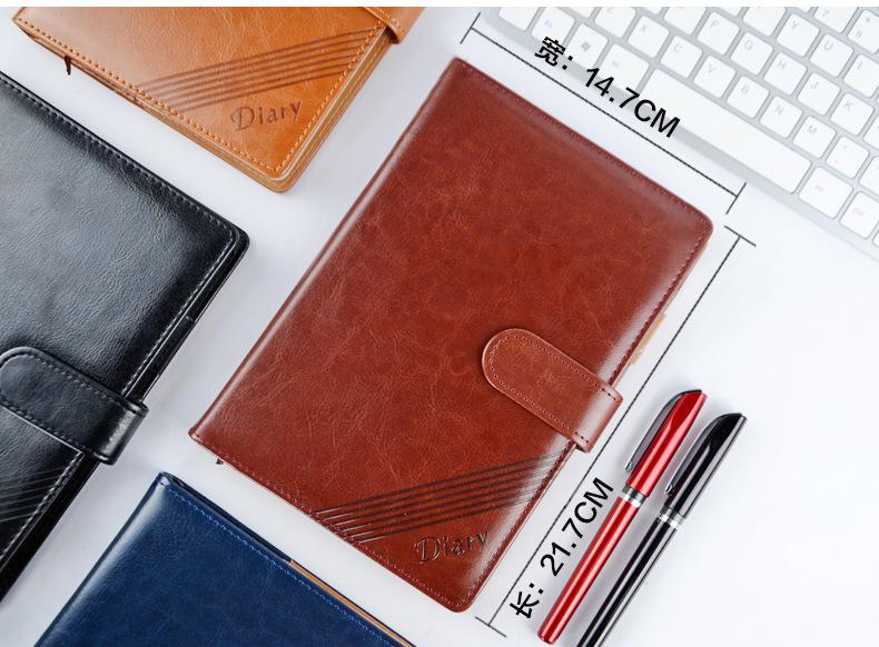 Cuaderno de negocios con hebilla magnética B5, cuaderno de registro de reuniones de oficina, cuaderno de líneas horizontales, cuaderno de trabajo de cuero engrosado