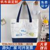 Bolsas de Lona Personalizadas por el Fabricante con Logotipo de Patrón Impreso, Bolsas de Algodón de Compras Ecológicas de Gran Capacidad con Diseño de Empalme Moderno