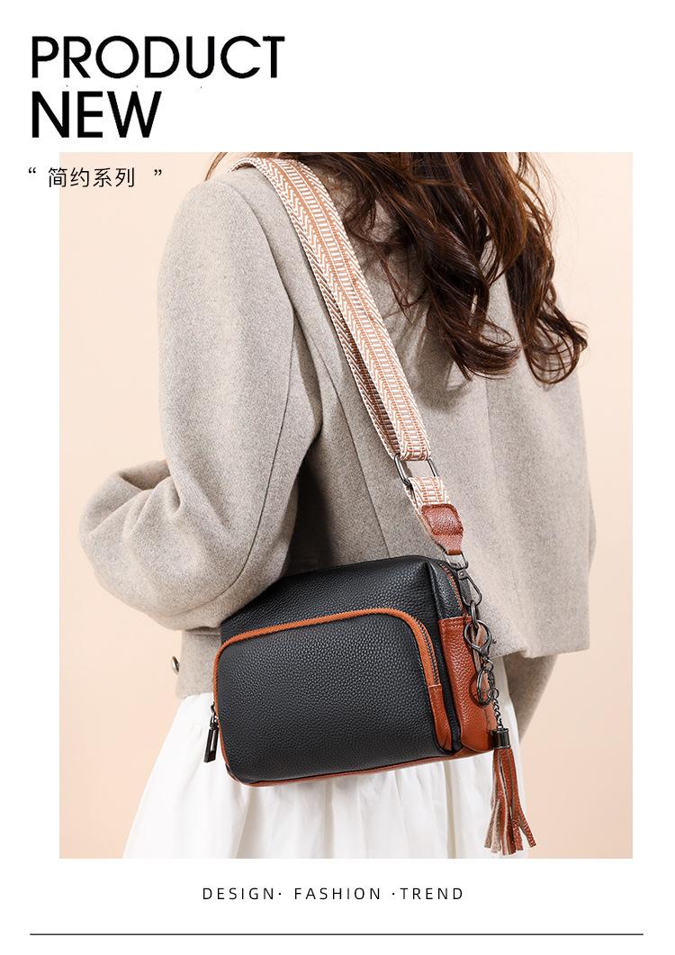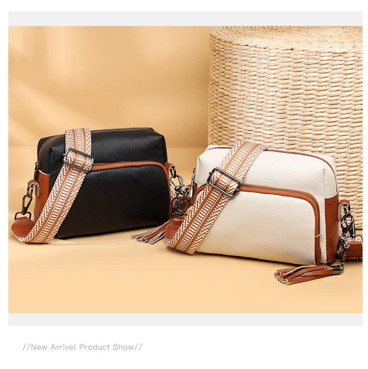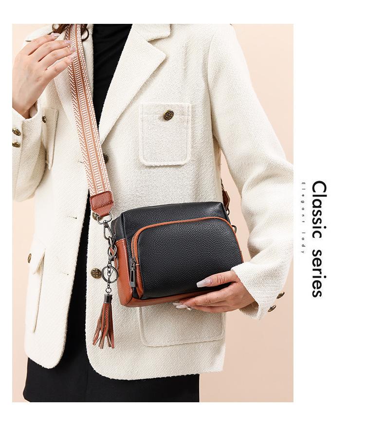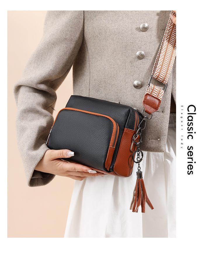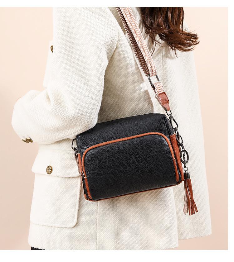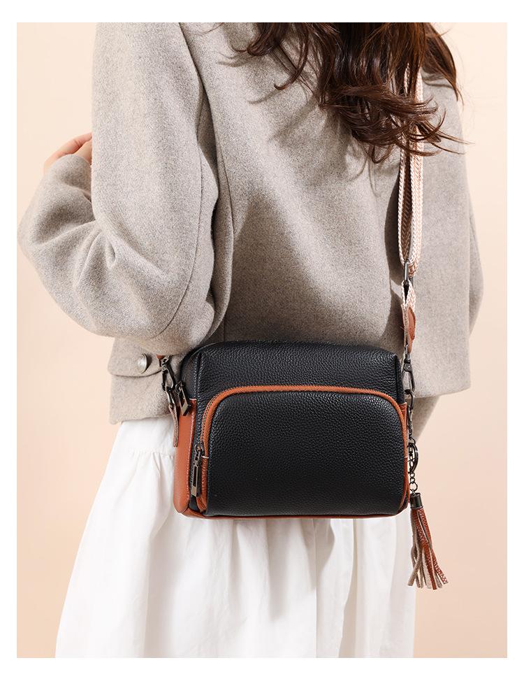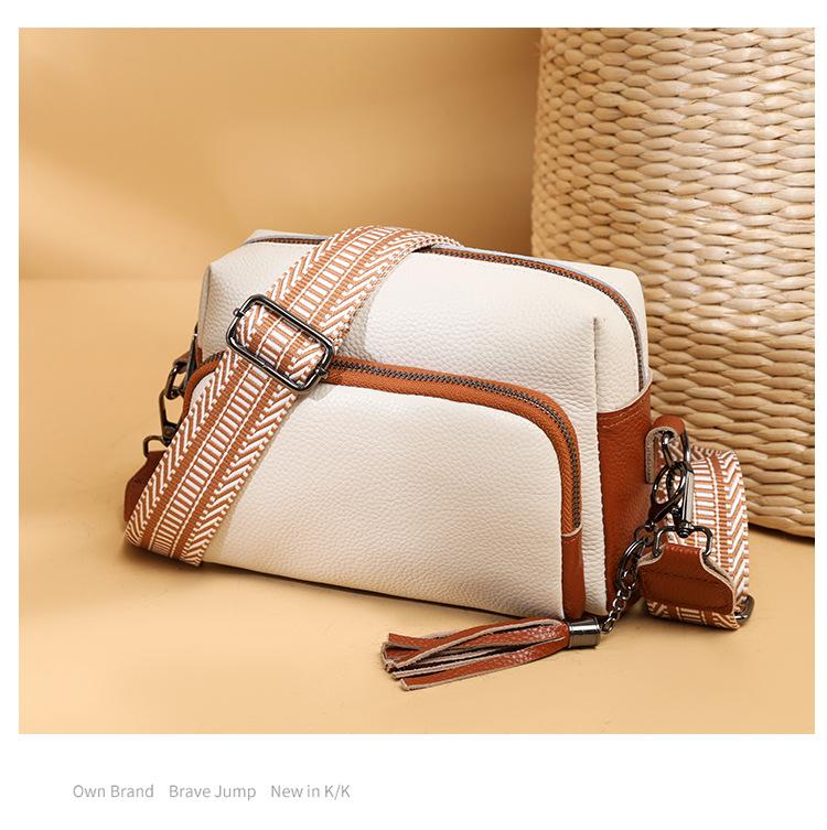 Bolso bandolera de piel auténtica para mujer, de primavera, combinable con todo, con capa superior de piel de vaca, pequeño, cuadrado, con borlas, moderno.