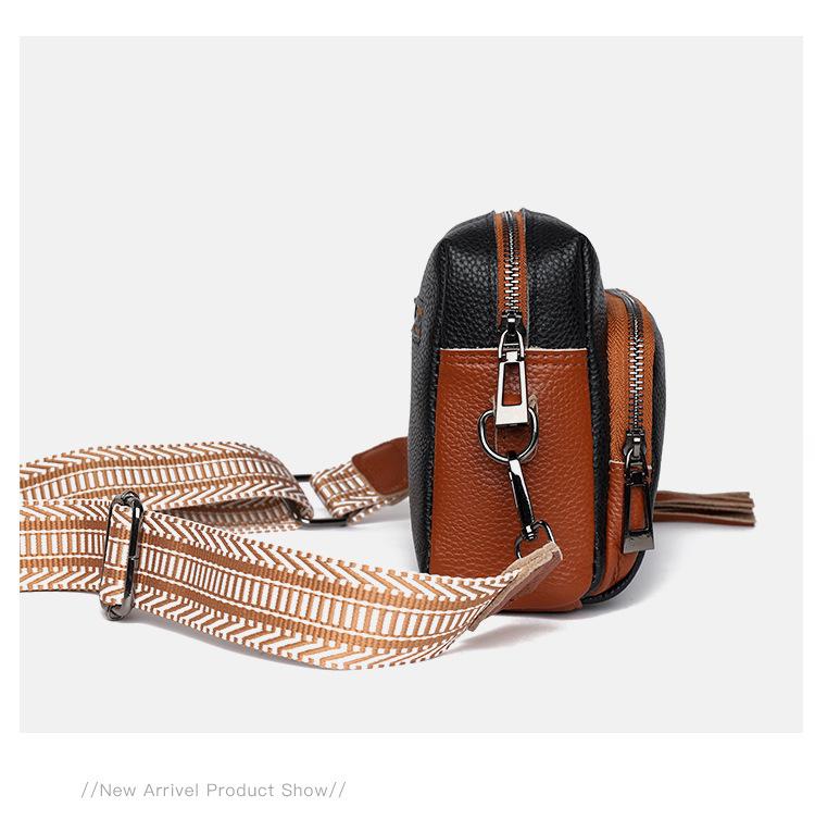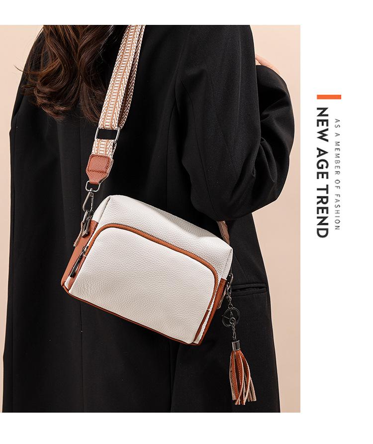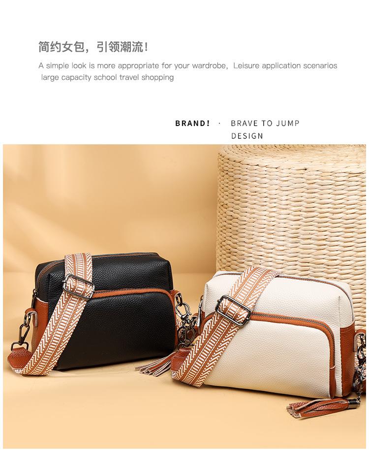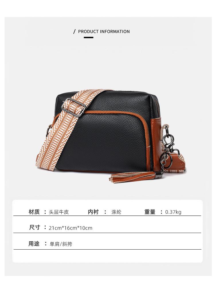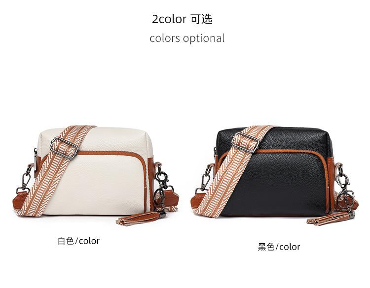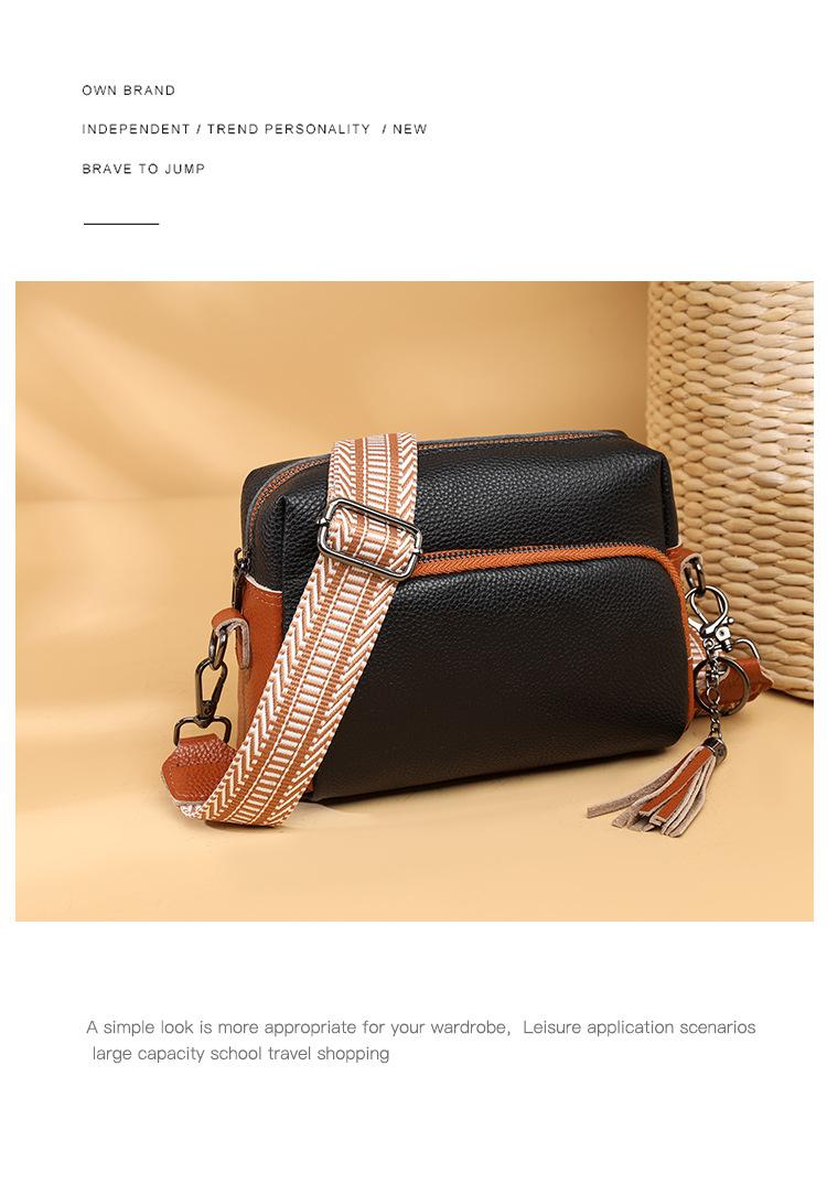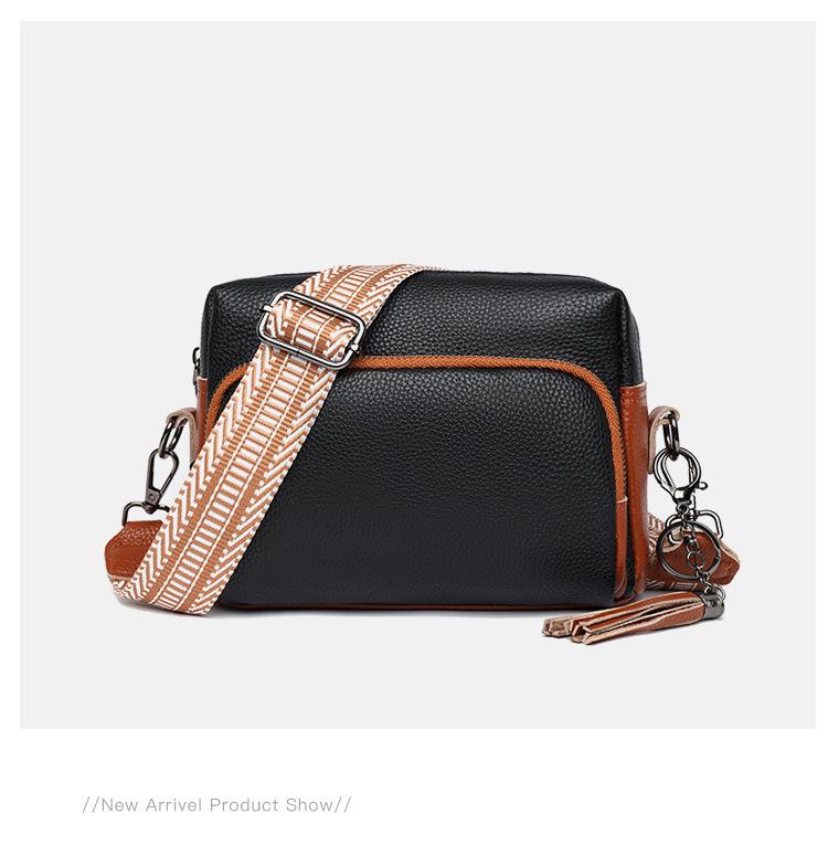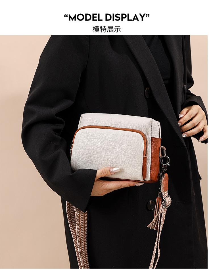 Bolso bandolera de piel auténtica para mujer, de primavera, combinable con todo, con capa superior de piel de vaca, pequeño, cuadrado, con borlas, moderno.