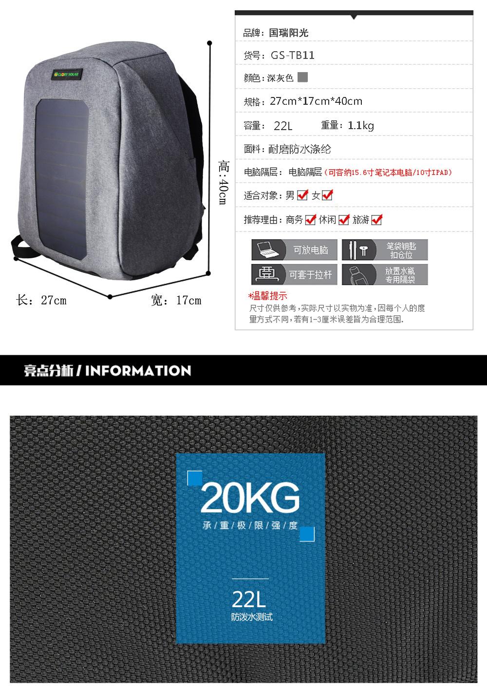 1. Las mochilas solares vendidas en la tienda no admiten la personalización de pedidos pequeños.[Referencia de muestra disponible]Si tiene necesidades de personalización a gran escala, por favor contacte al servicio de atención al cliente o llame al gerente comercial. El precio del producto no incluye impuestos ni envío, ¡tenga en cuenta!
