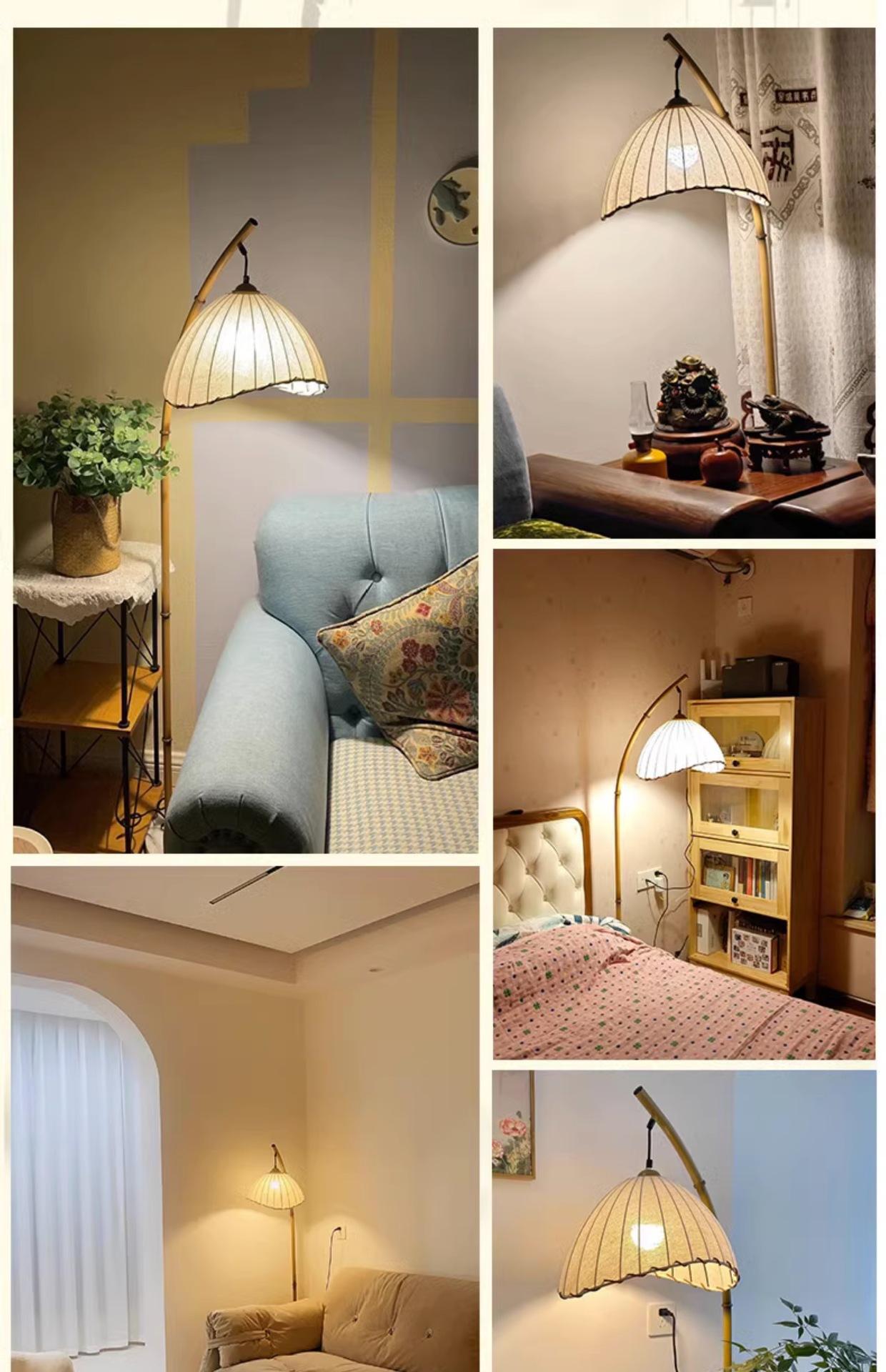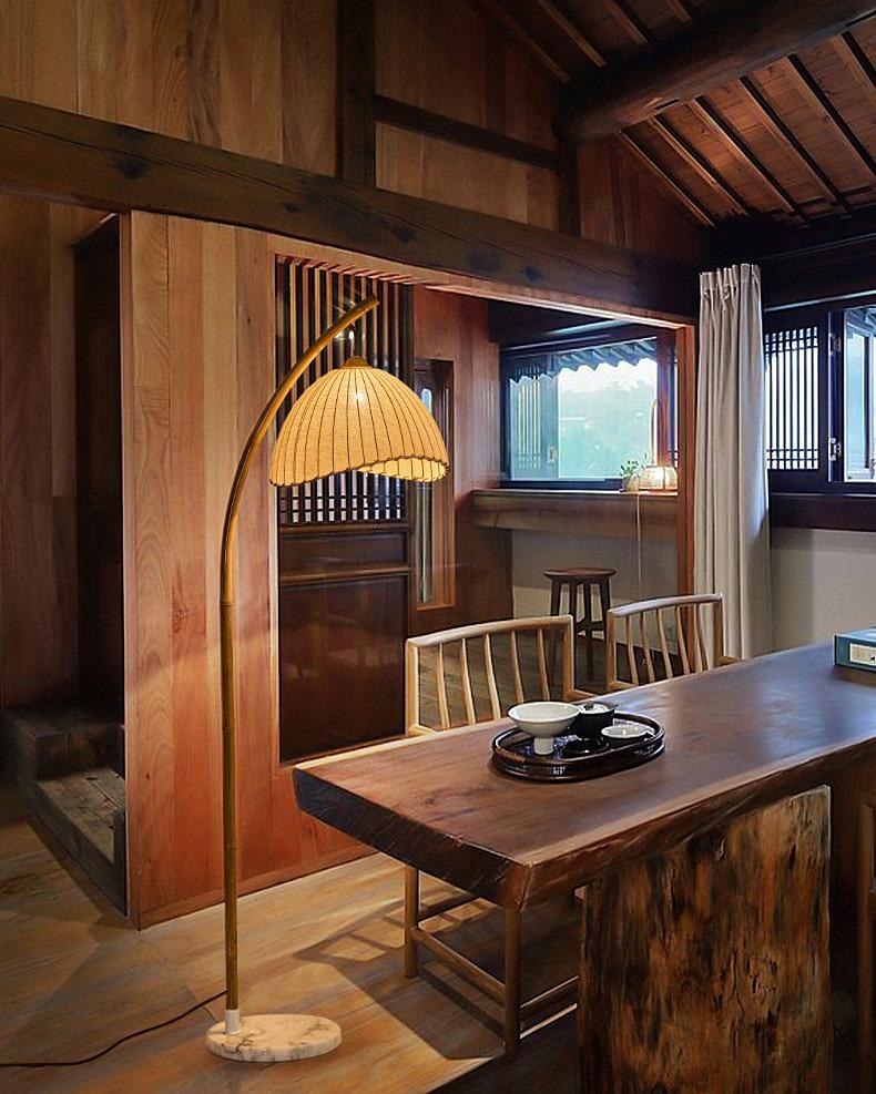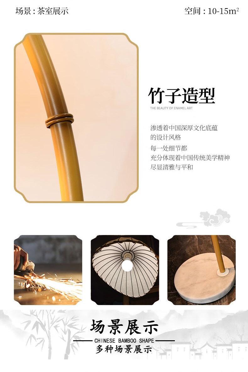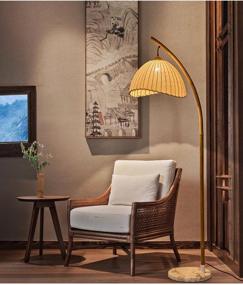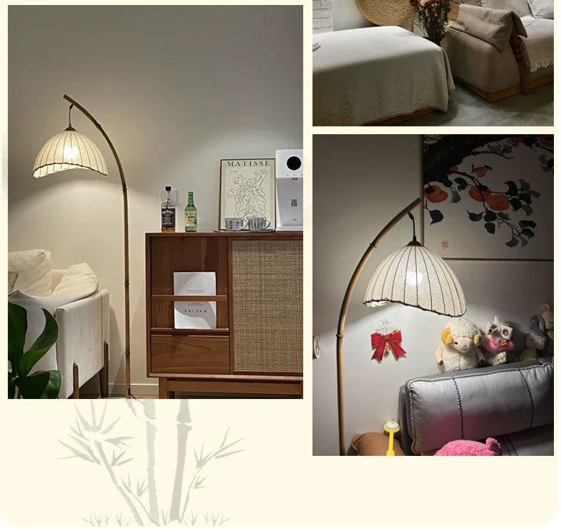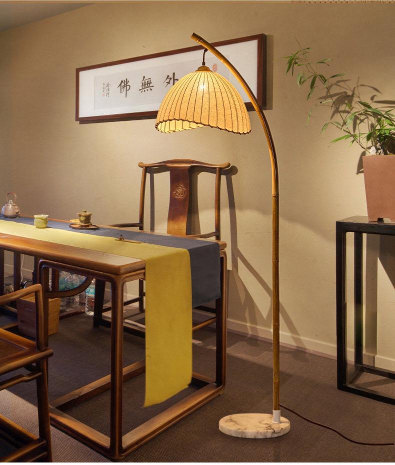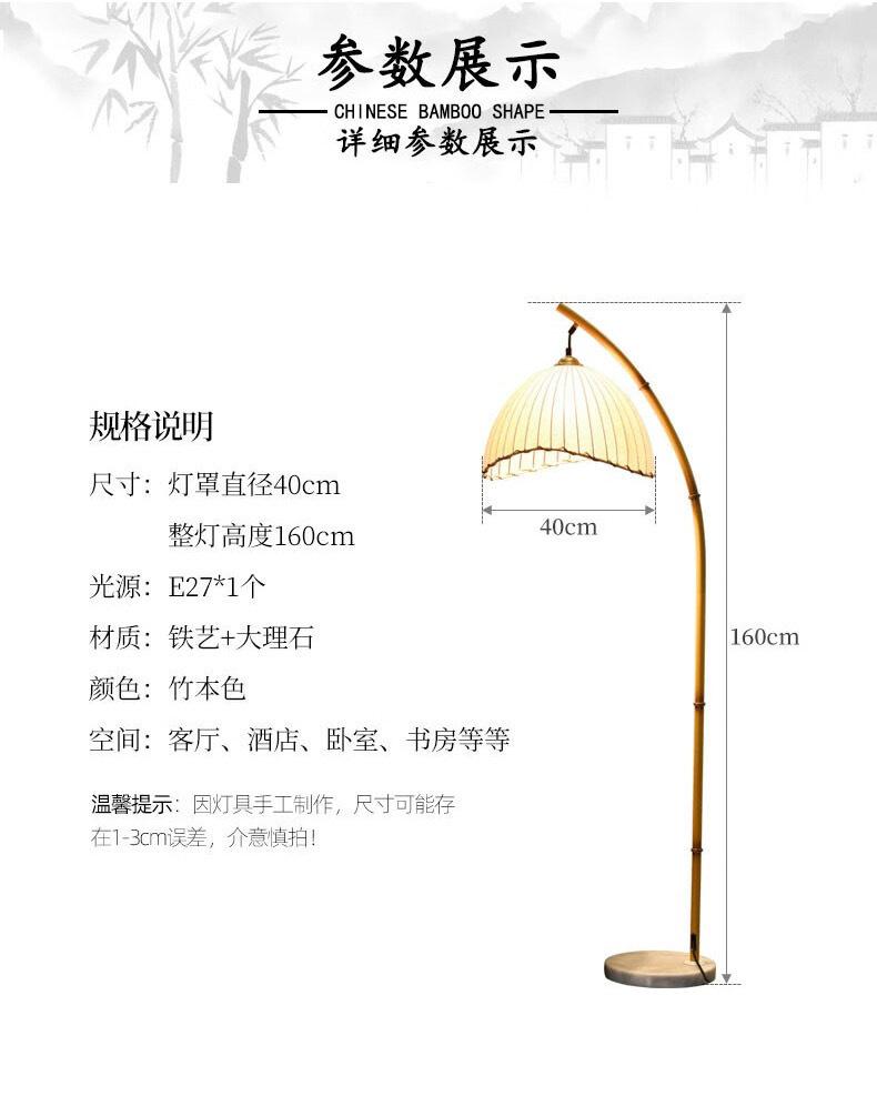 Lámpara de pie retro estilo chinoiserie wabi-sabi, estilo zen chino, estilo B&B, de bambú, para sala de estar, salón de té, estudio, lámpara de pie vertical.