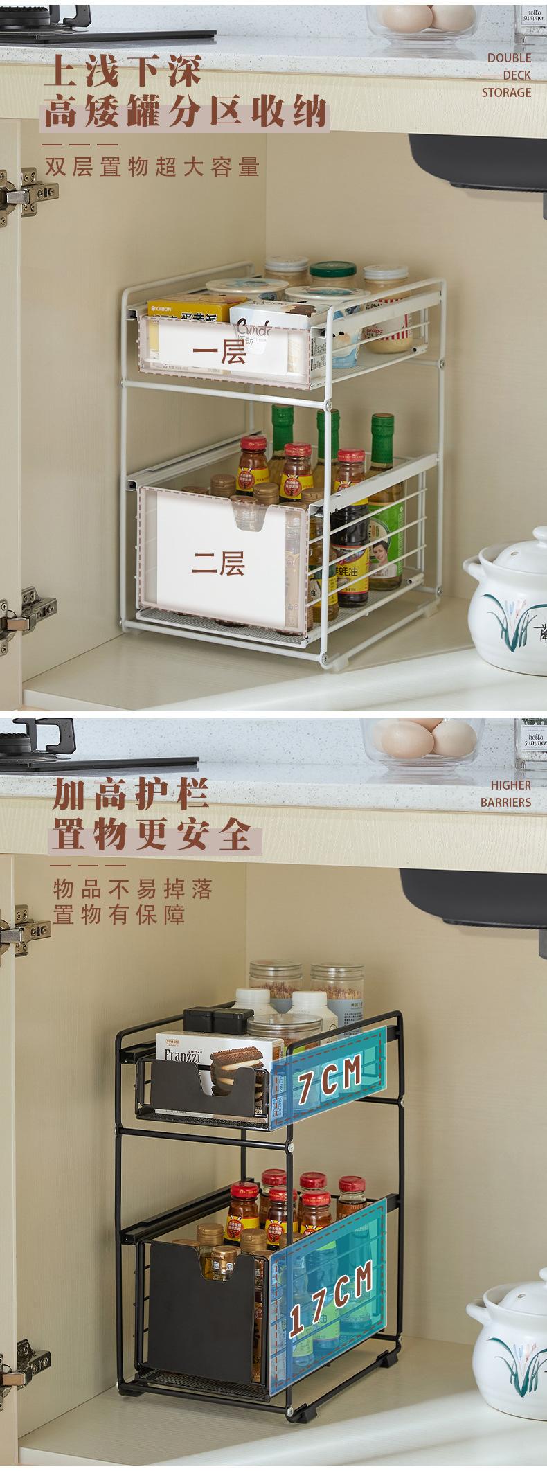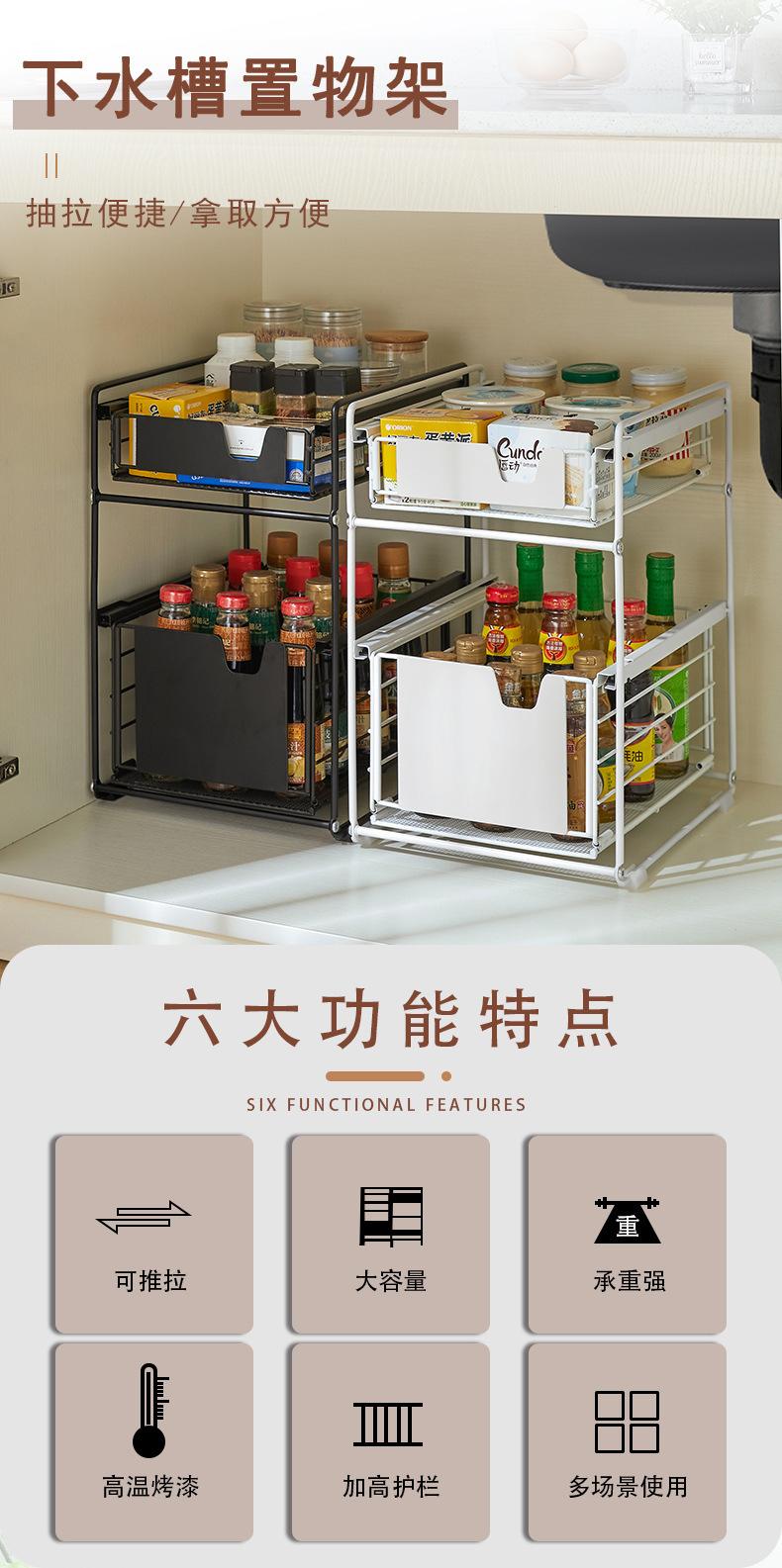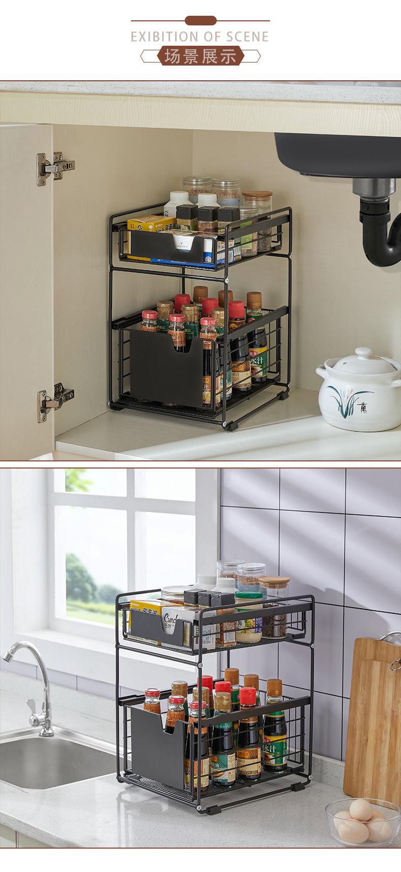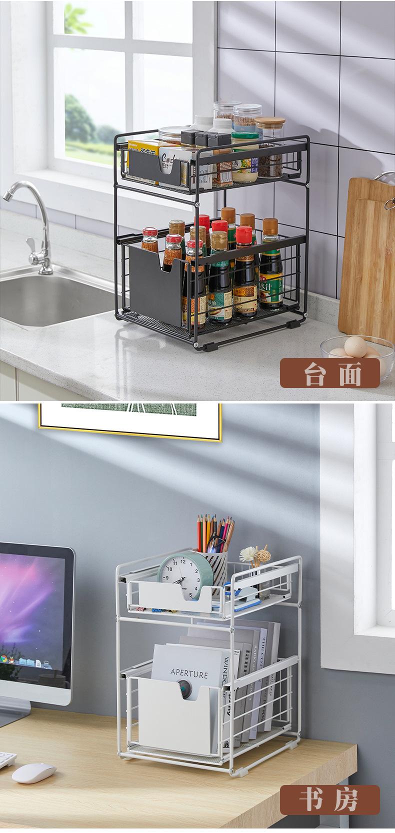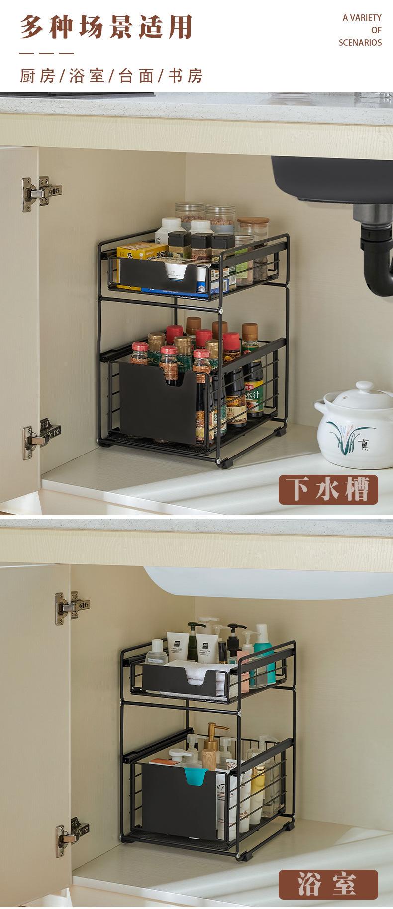 Estante de almacenamiento para fregadero de cocina, tipo cajón, para encimera, con capas, para baño, con opción de empujar y tirar, Amazon transfronterizo.