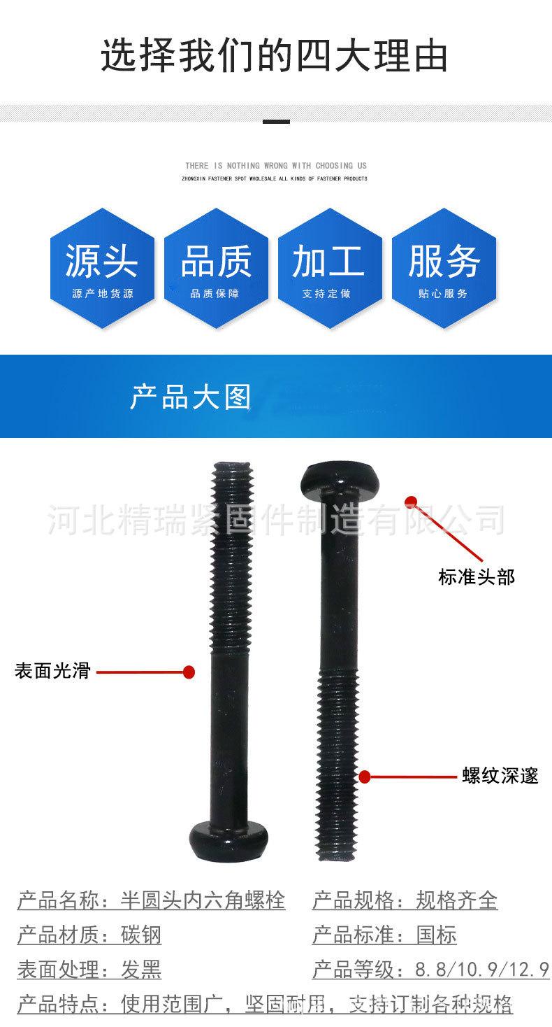 Tornillo de cabeza hueca hexagonal de media caña de alta resistencia m8, tornillo de fijación de cabeza hueca hexagonal negro oxidado, tornillo de alargamiento de cabeza plana