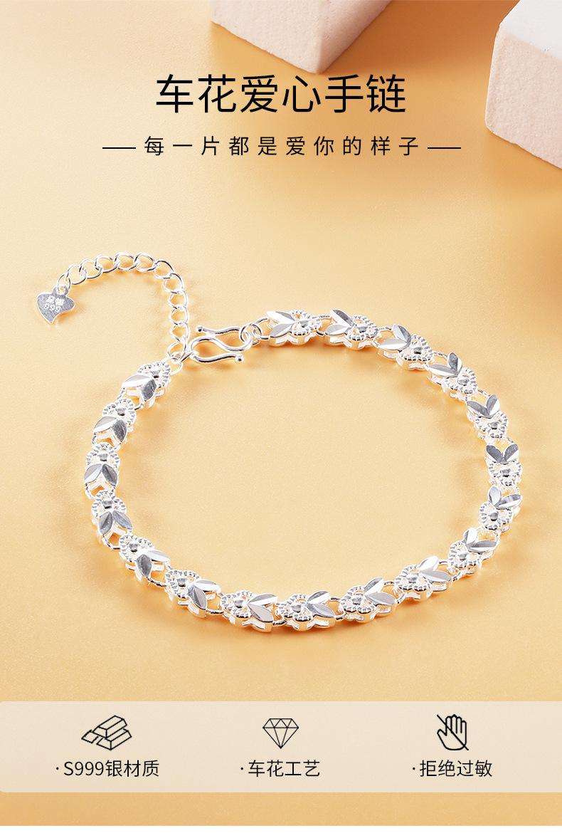 Love white gold, Pure silver four-leaf clover bracelet weighs 5.7-6g