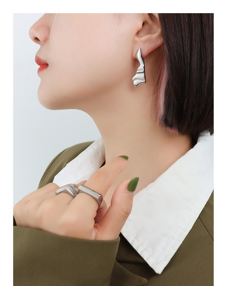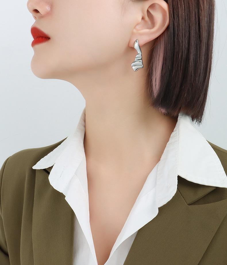F555-Irregular Wave Earrings Steel Color