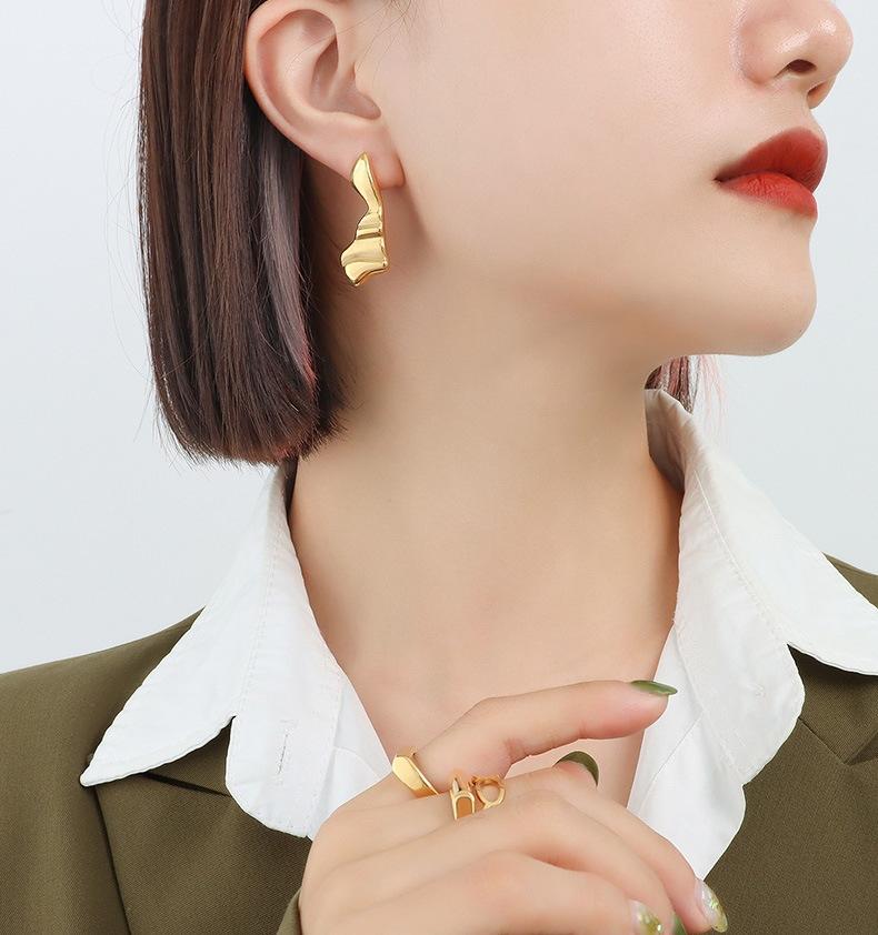F555-Irregular Wave Earrings Gold