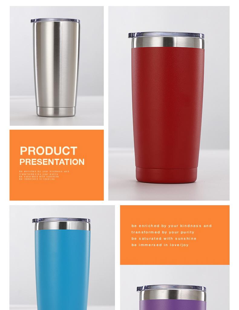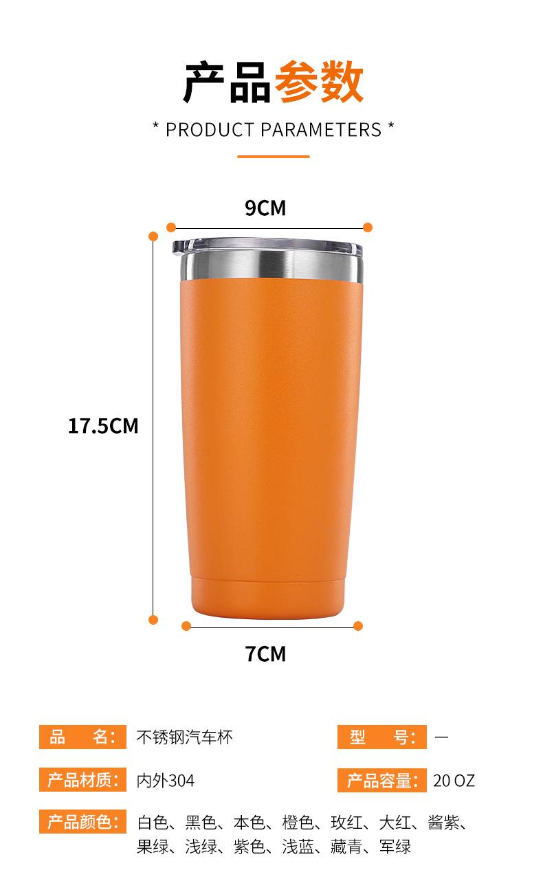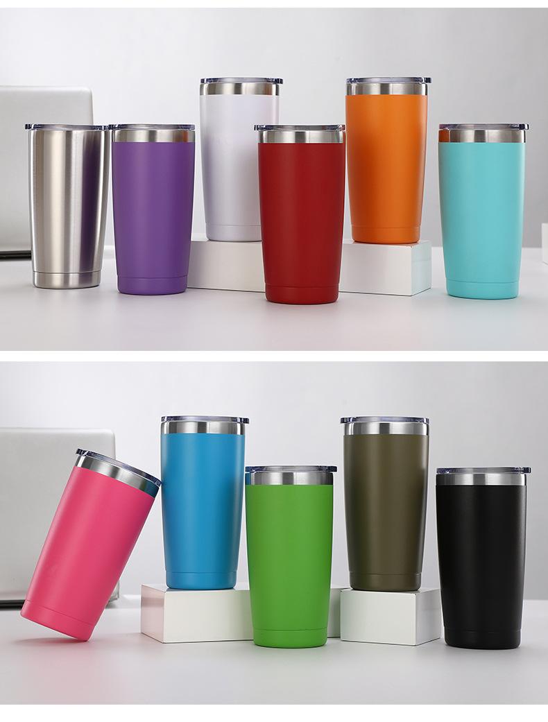 Taza de acero inoxidable 304 para coche, 20 oz, con pulverizador de plástico, para café, para coche, para hielo, cerveza, suministro directo de Amazon