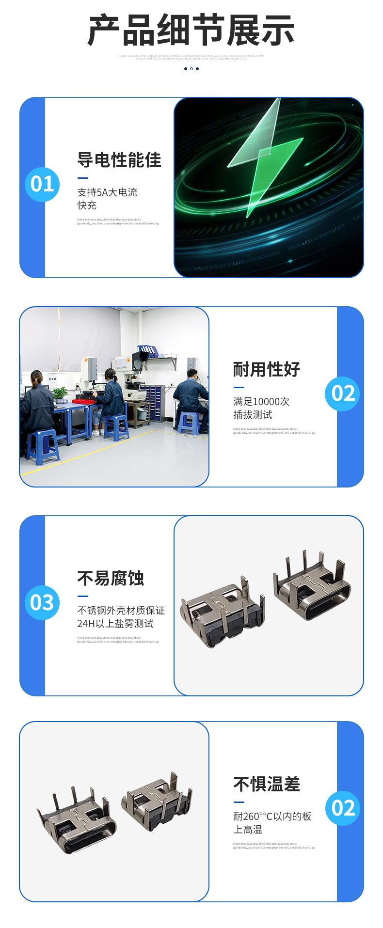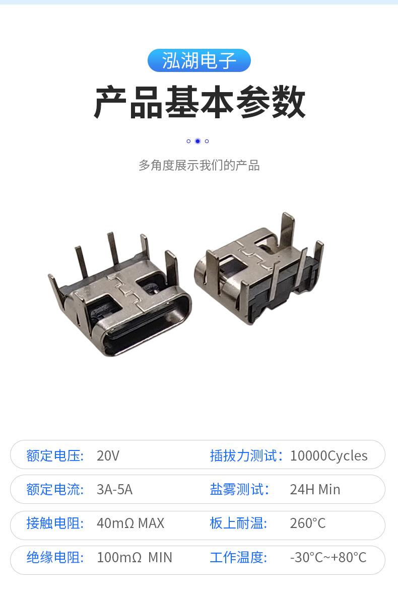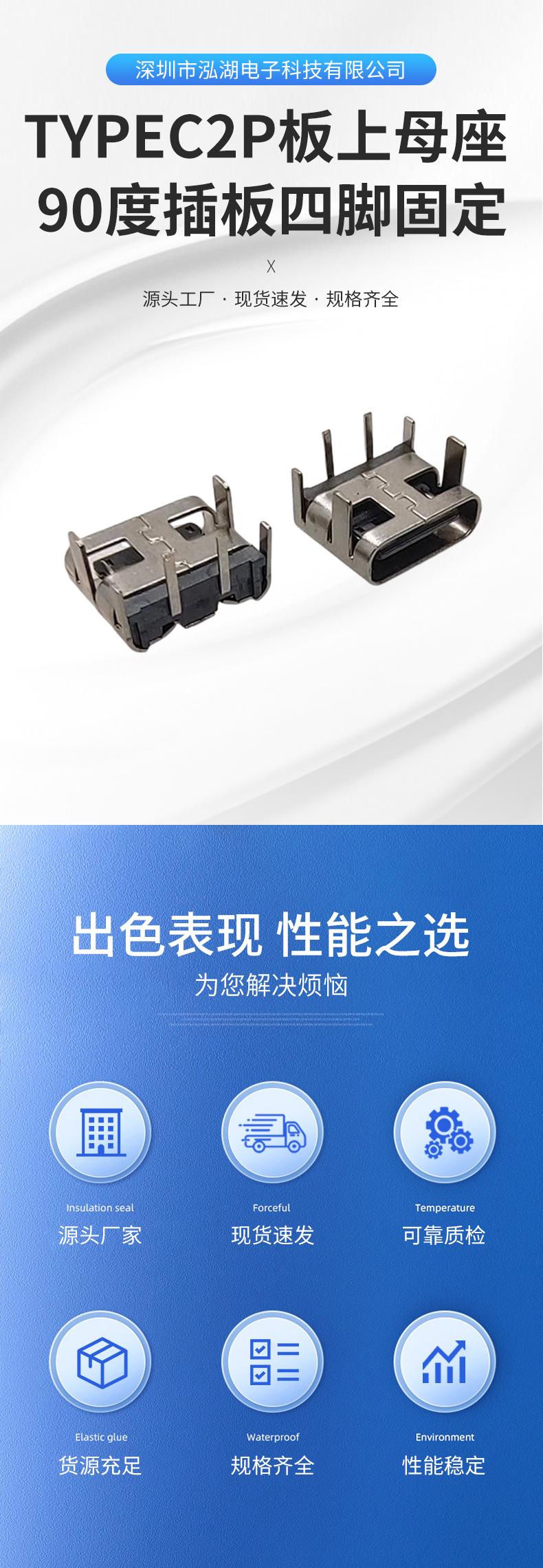 TYPE-C female 2PIN horizontal 90 degree plug-in connector