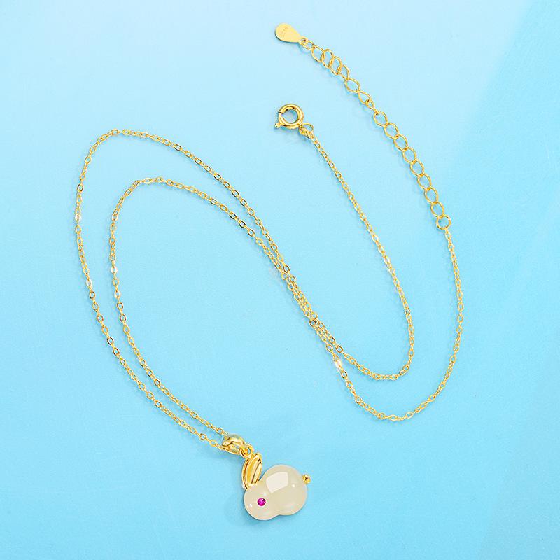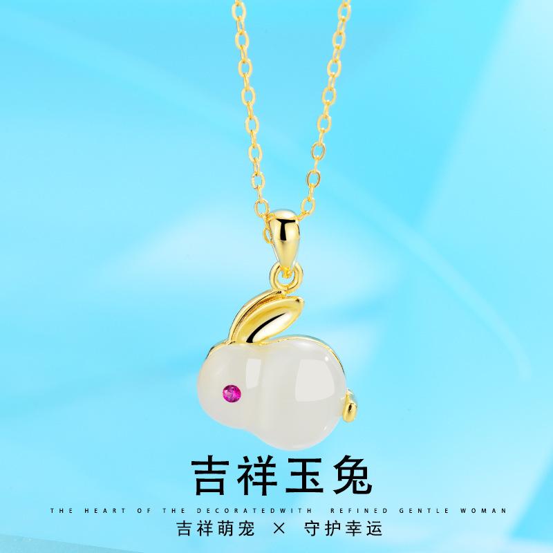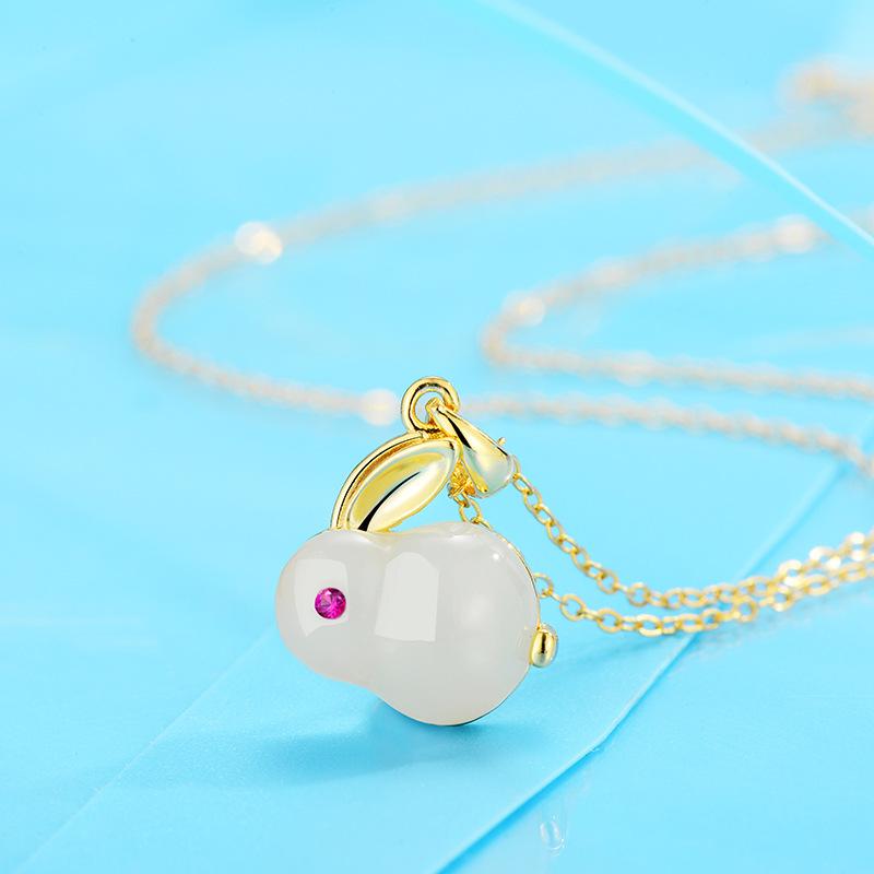 Compra Collar de conejo de jade auspicioso de plata esterlina S925, colgante de jade hetiano retro de estilo chino para regalo de cumpleaños al por mayor en Joom.pro