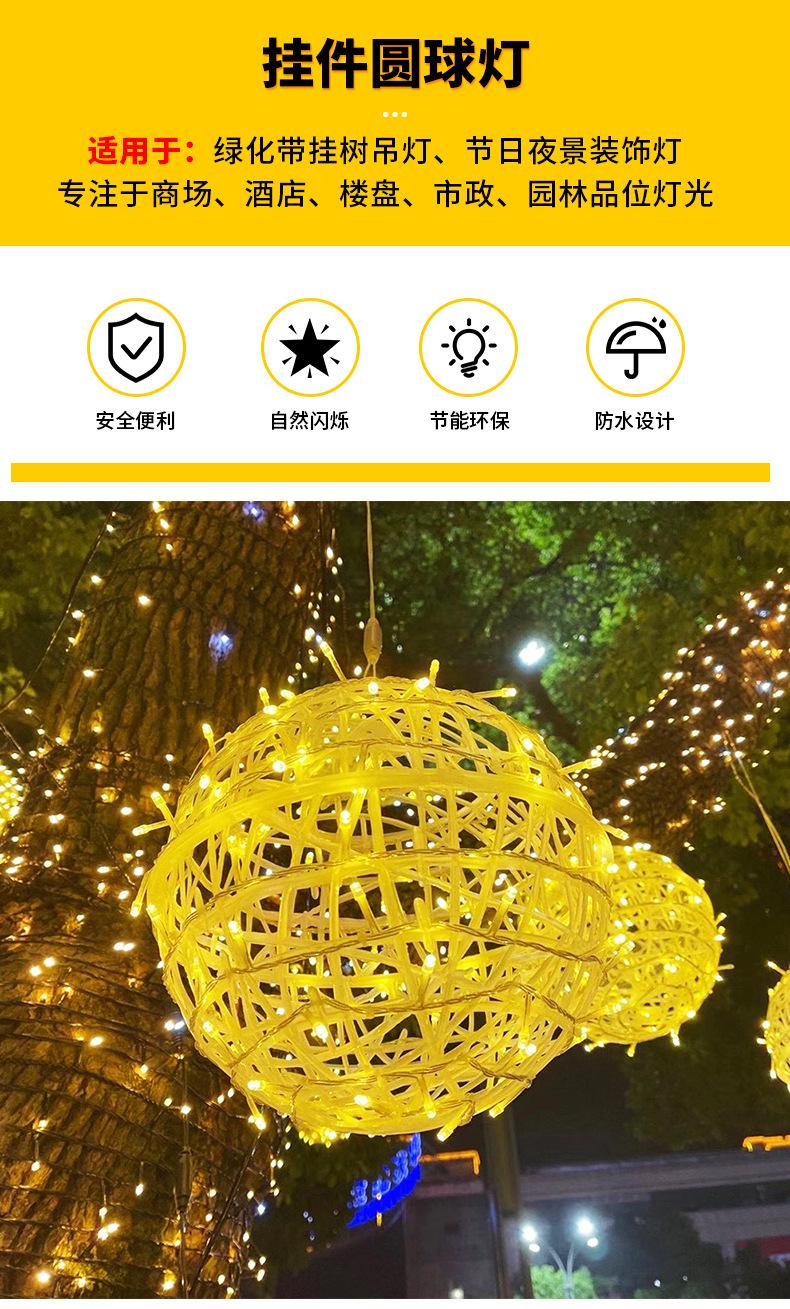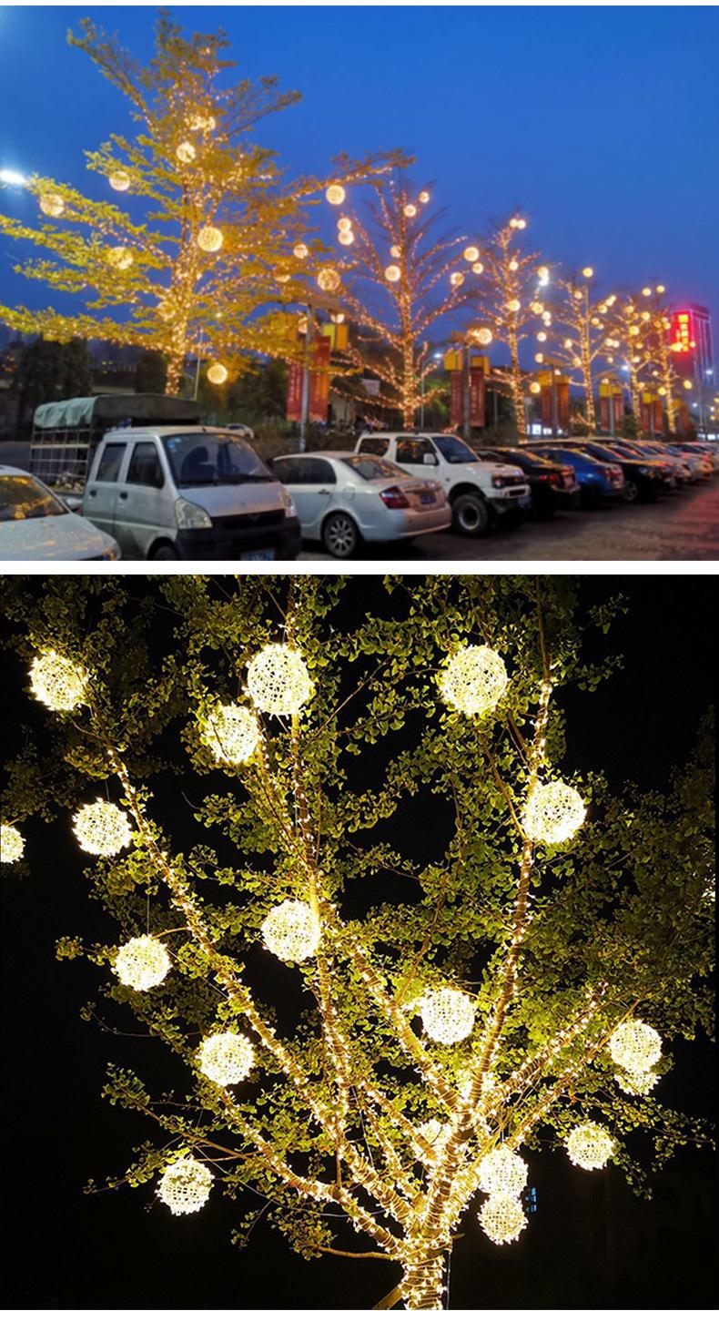 Bola de luz LED de ratán para decoración de festivales, luces de bola para exteriores, iluminación de calle, luces de colores de ambiente, cadena de luces LED colgantes para árbol.