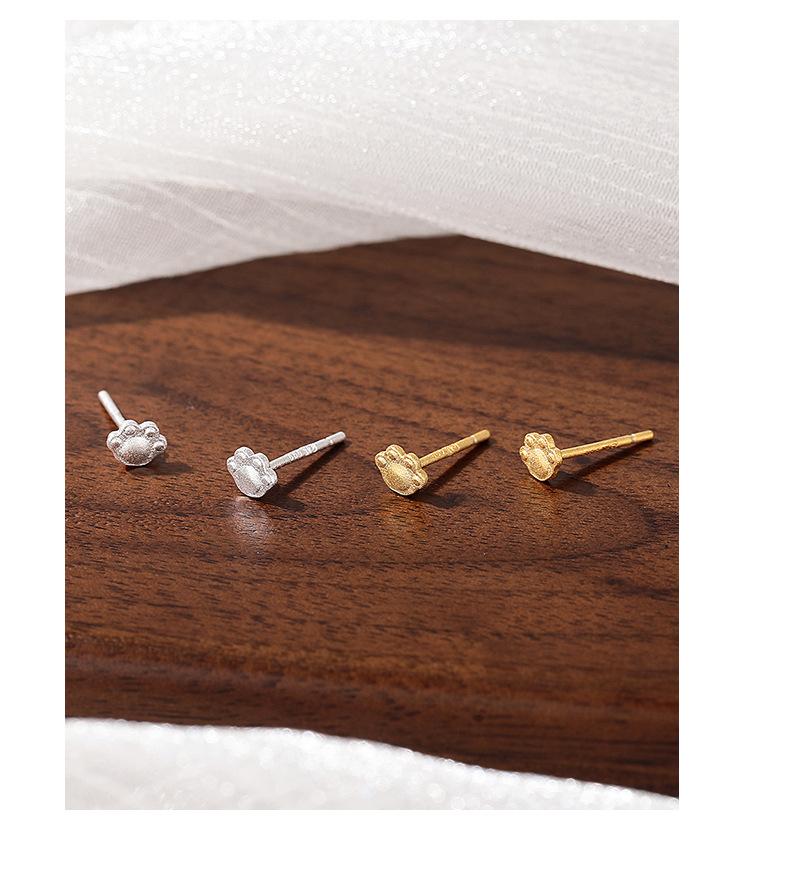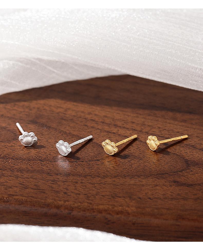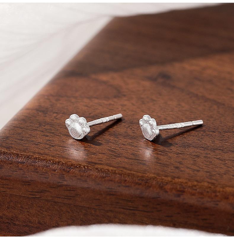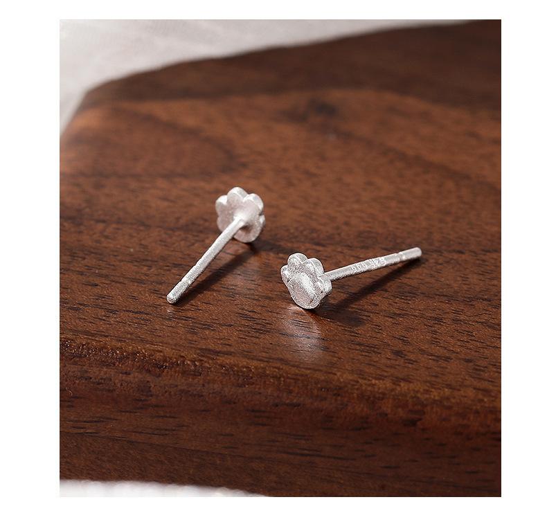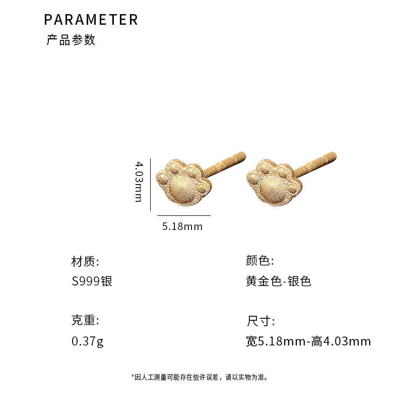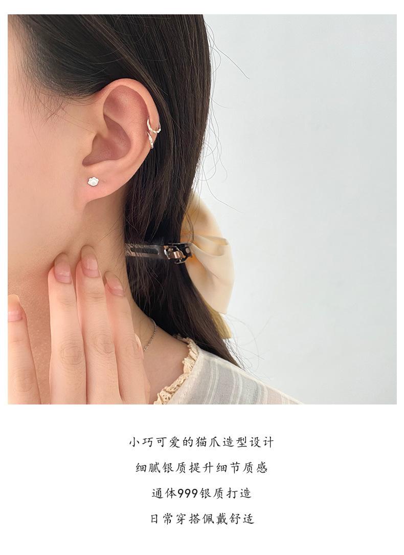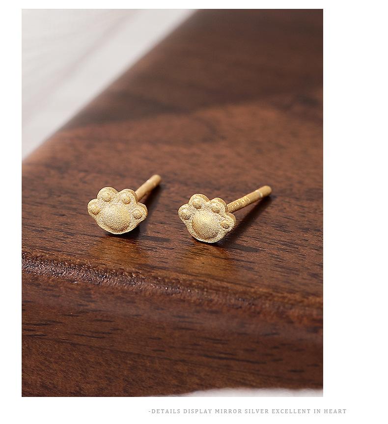 Yicheng S999 plata pura aretes de botón con garra de gatito pequeño y lindo para estudiantes, aretes pequeños y dulces para perforación diaria de orejas