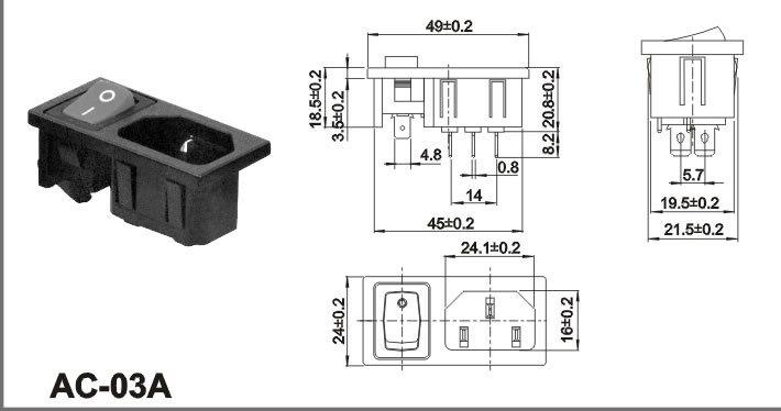 Toma de corriente CA AC-03A dos en uno con enchufe industrial eléctrico tipo tarjeta de conmutación