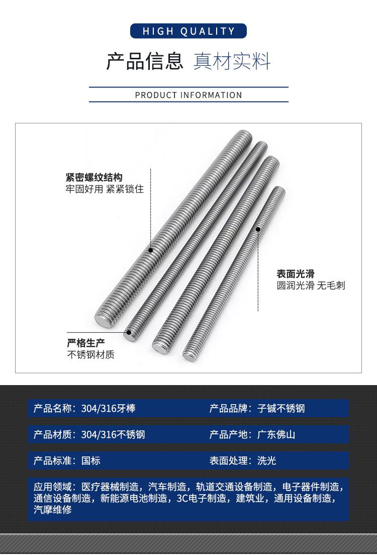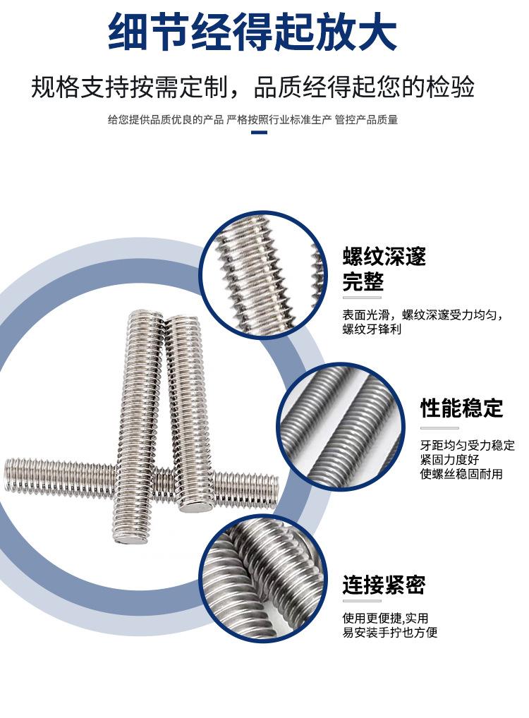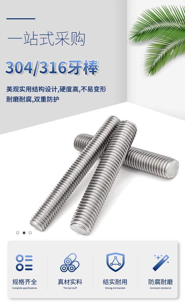 Varilla roscada dentada de acero inoxidable 304, rosca completa, rosca dentada completa, rosca de cabeza simple, varilla roscada de doble cabeza
