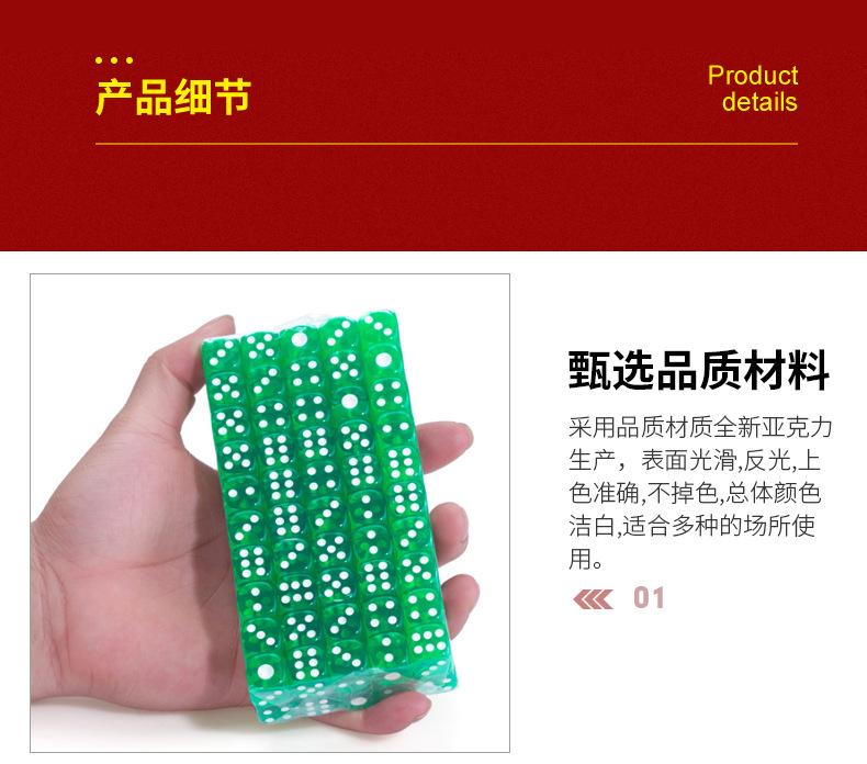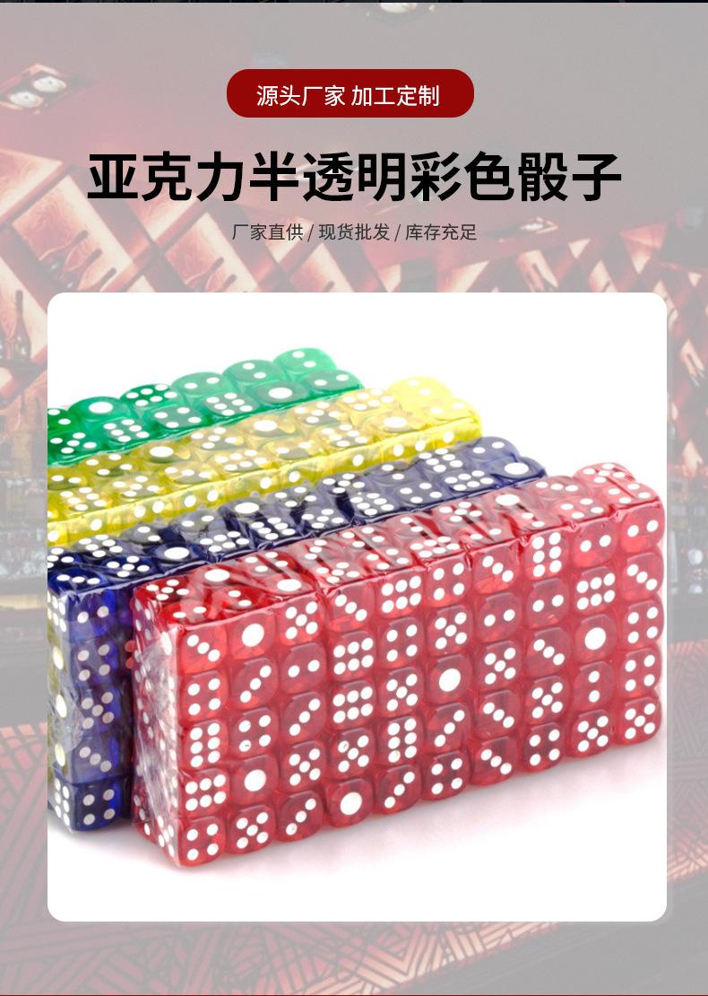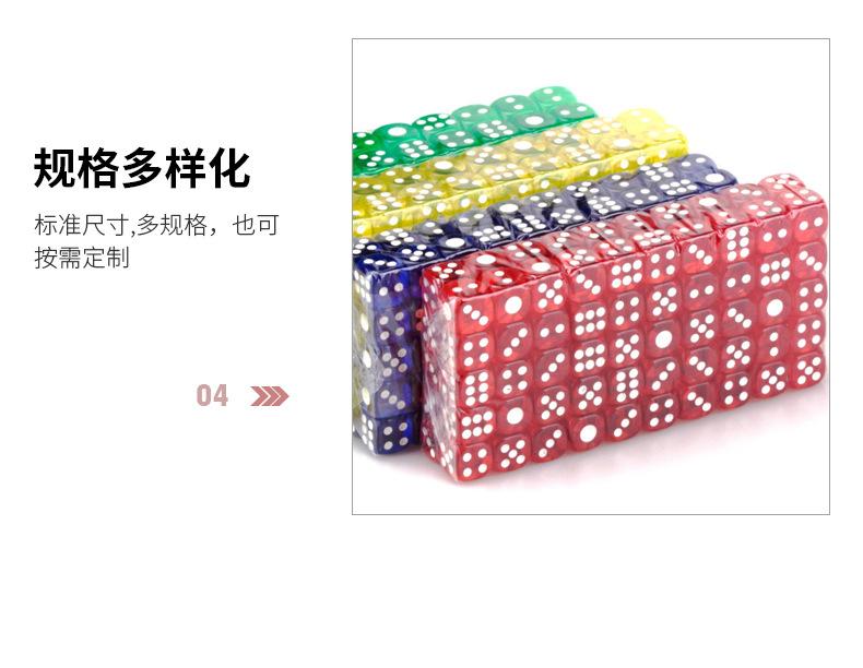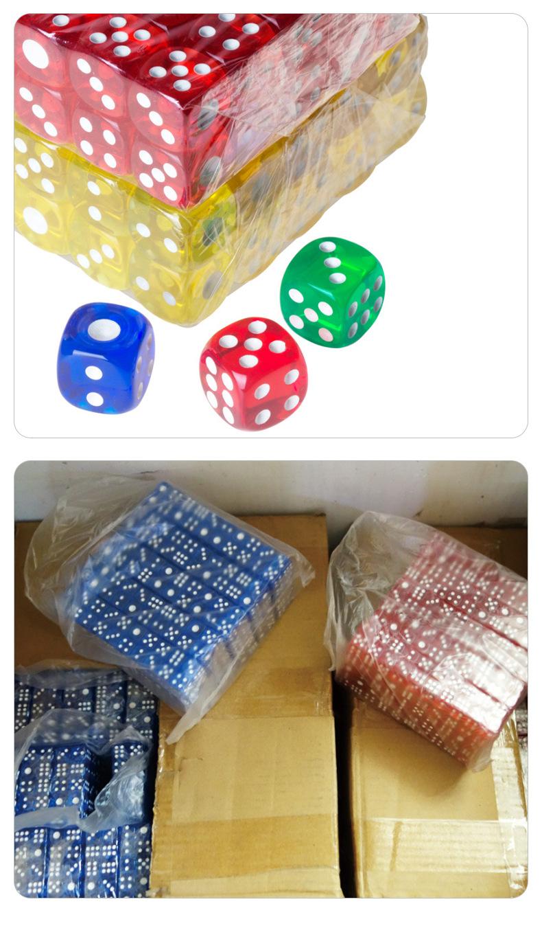 Dados de fabricante en stock acrílico transparente dados de color grano dados rojos dados negros Amarillo Azul Verde grano de tamiz