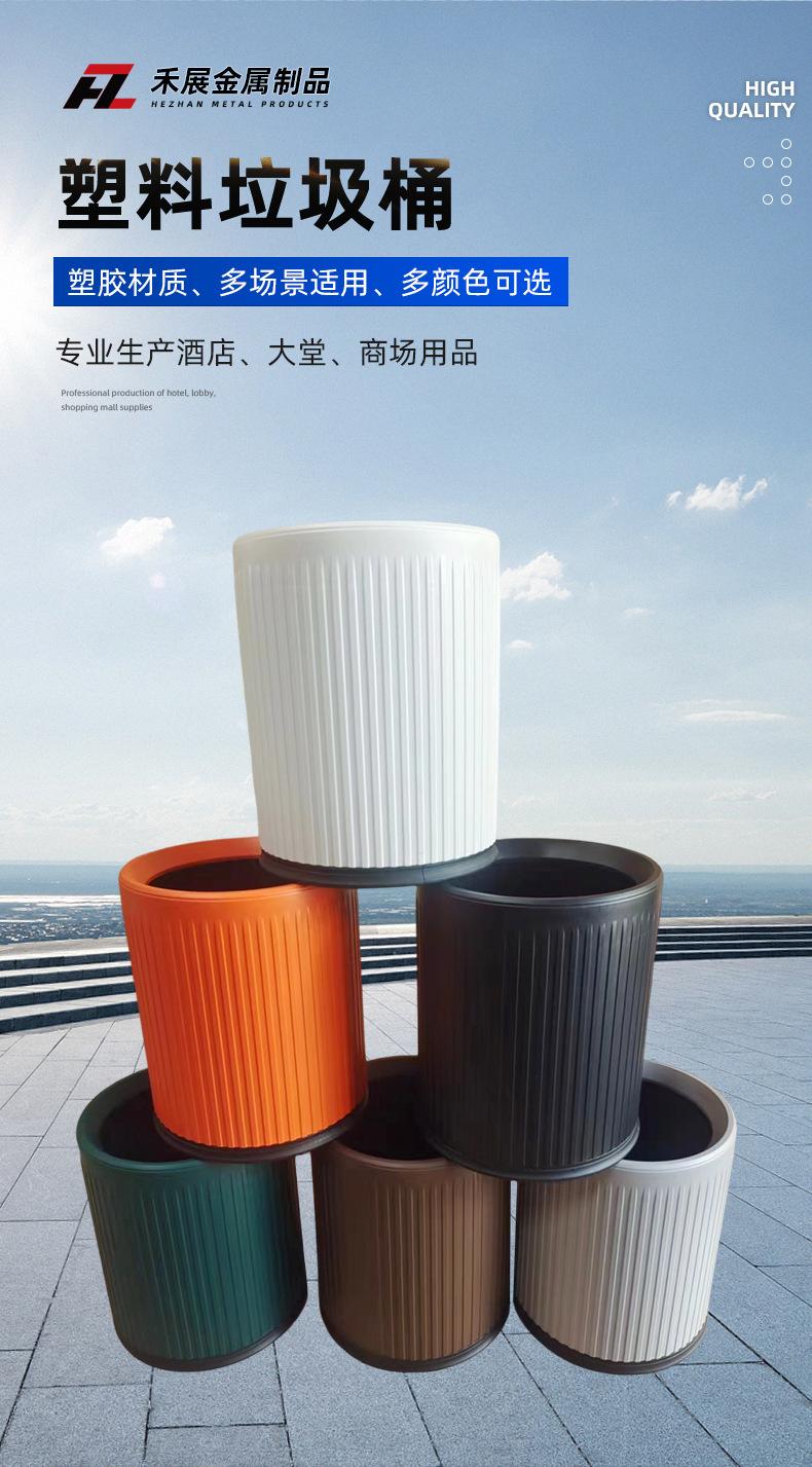 Contenedor de basura de plástico para el hogar, sala de estar, hotel, catering, doble ignífugo, comercial, redondo, descubierto.