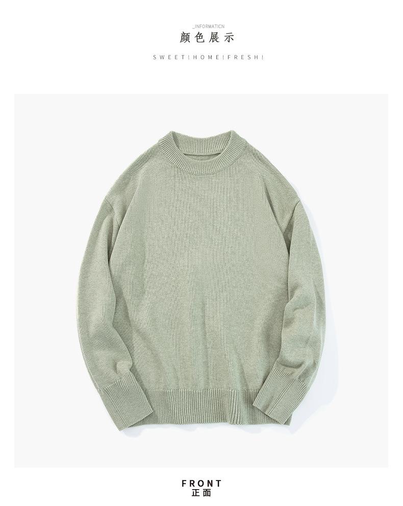 Suéter de cuello redondo de color sólido para hombre, camisa básica ajustada, suéter informal de manga larga para jóvenes, combinable con todo, primavera y otoño.