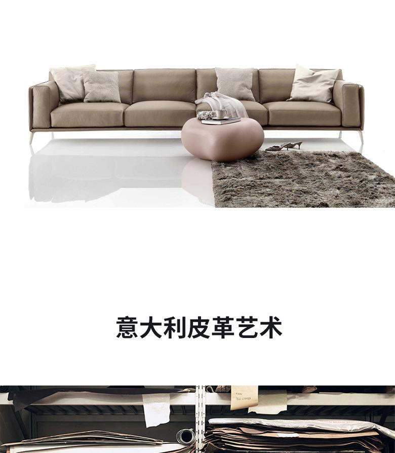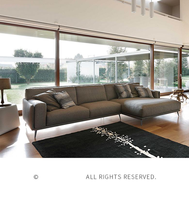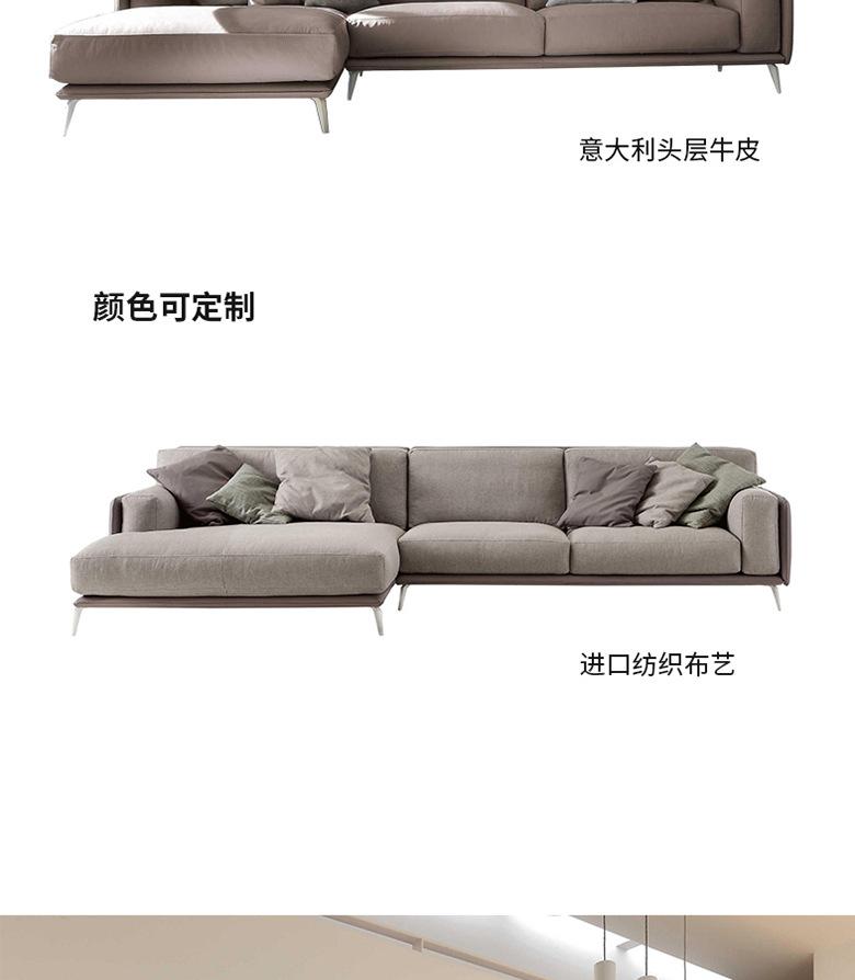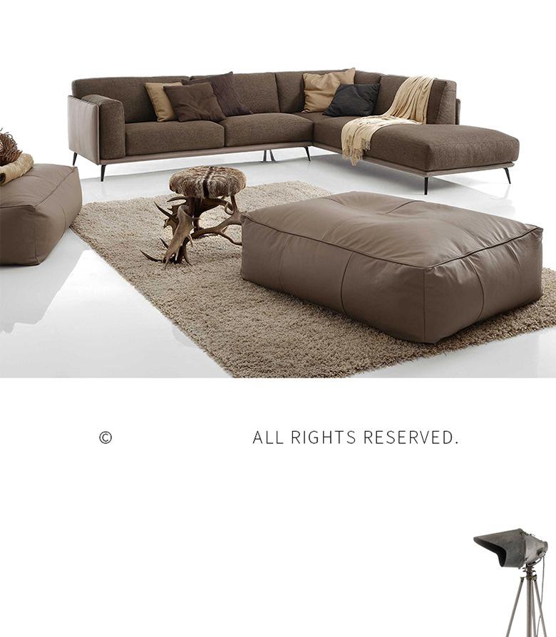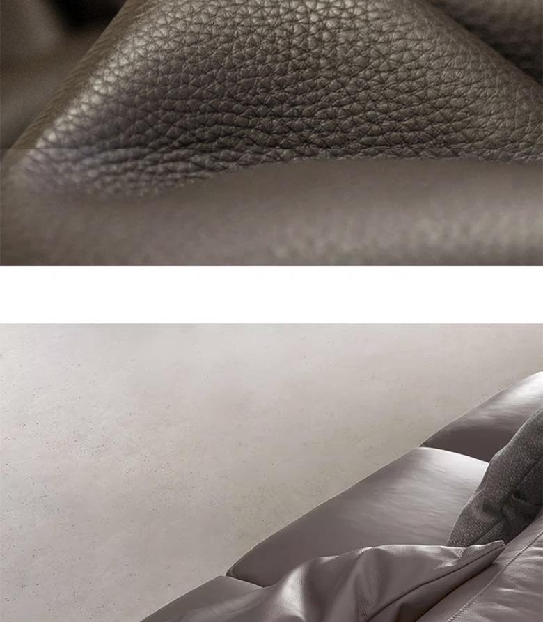 Sofá esquinero minimalista italiano de cuero de vaca con capa superior, moderno, sencillo, para apartamentos grandes y pequeños, con ambiente de alta gama.
