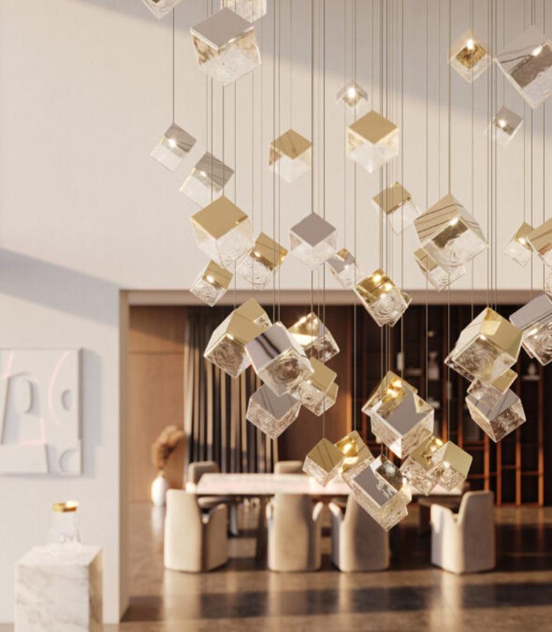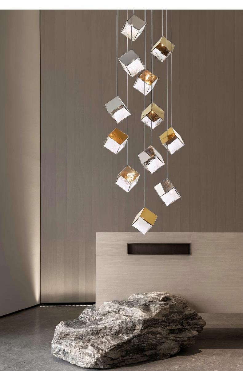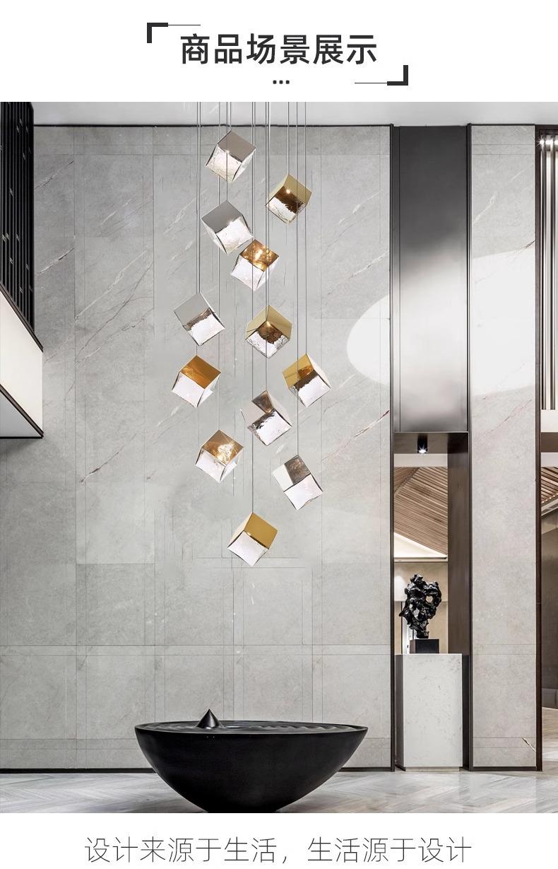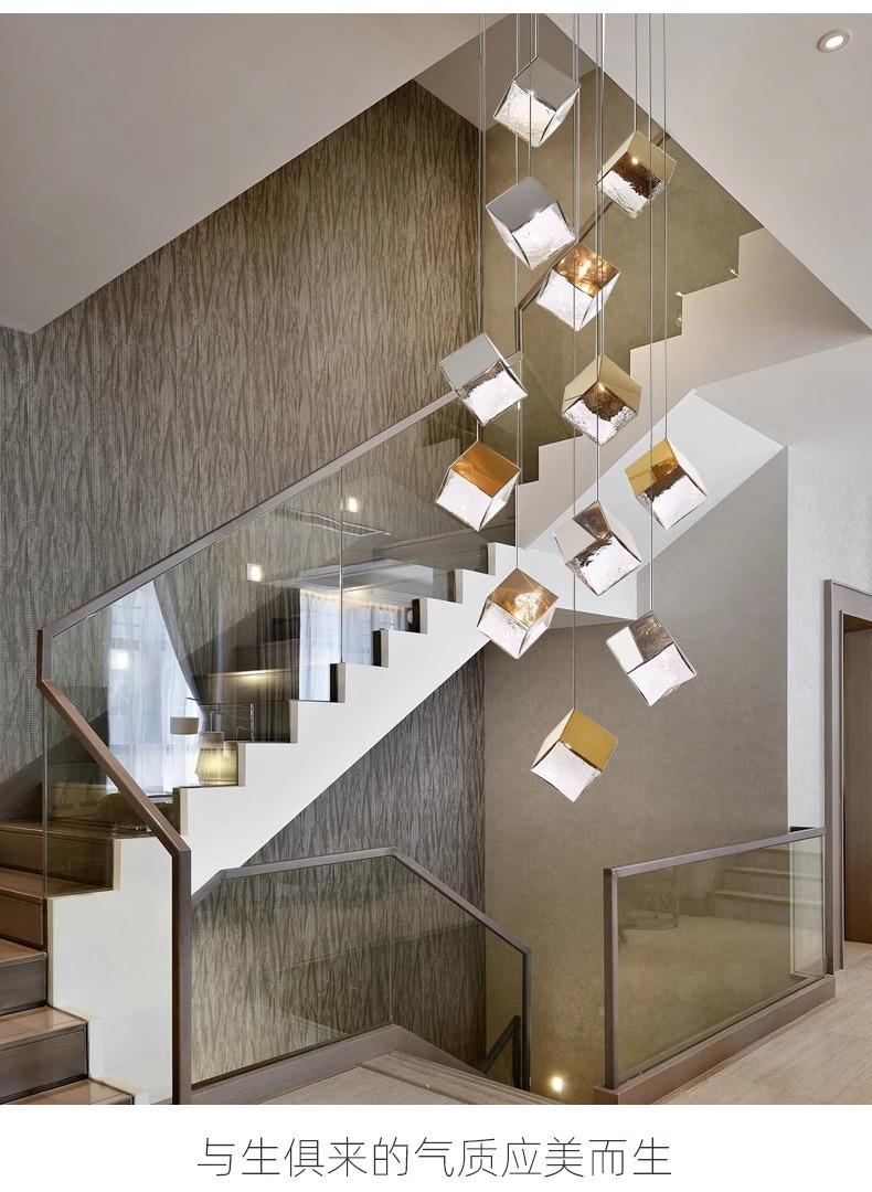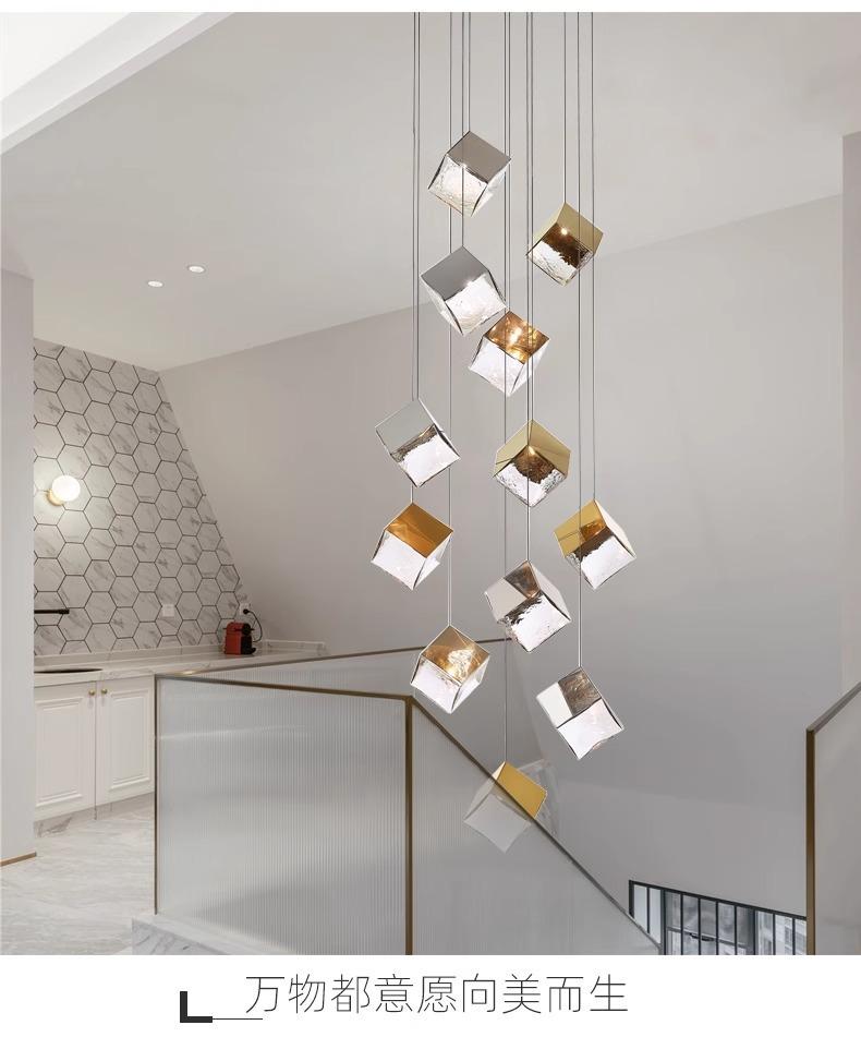 Lámpara de araña de escalera creativa de hielo, personalizada, para villa, sala de estar, comedor, bar, dúplex, luz simple, lámpara de araña de cristal de lujo