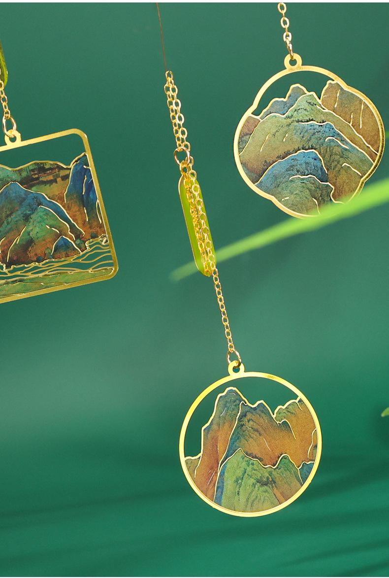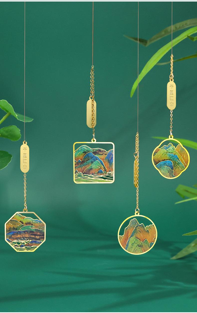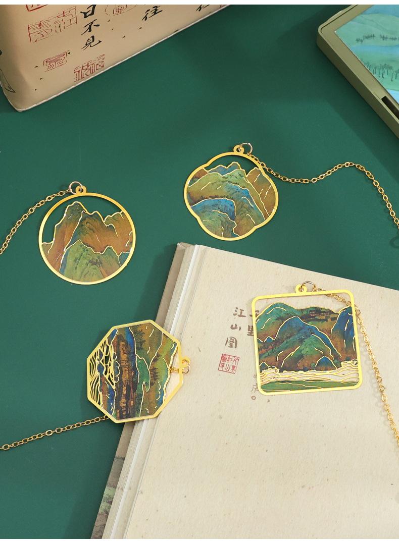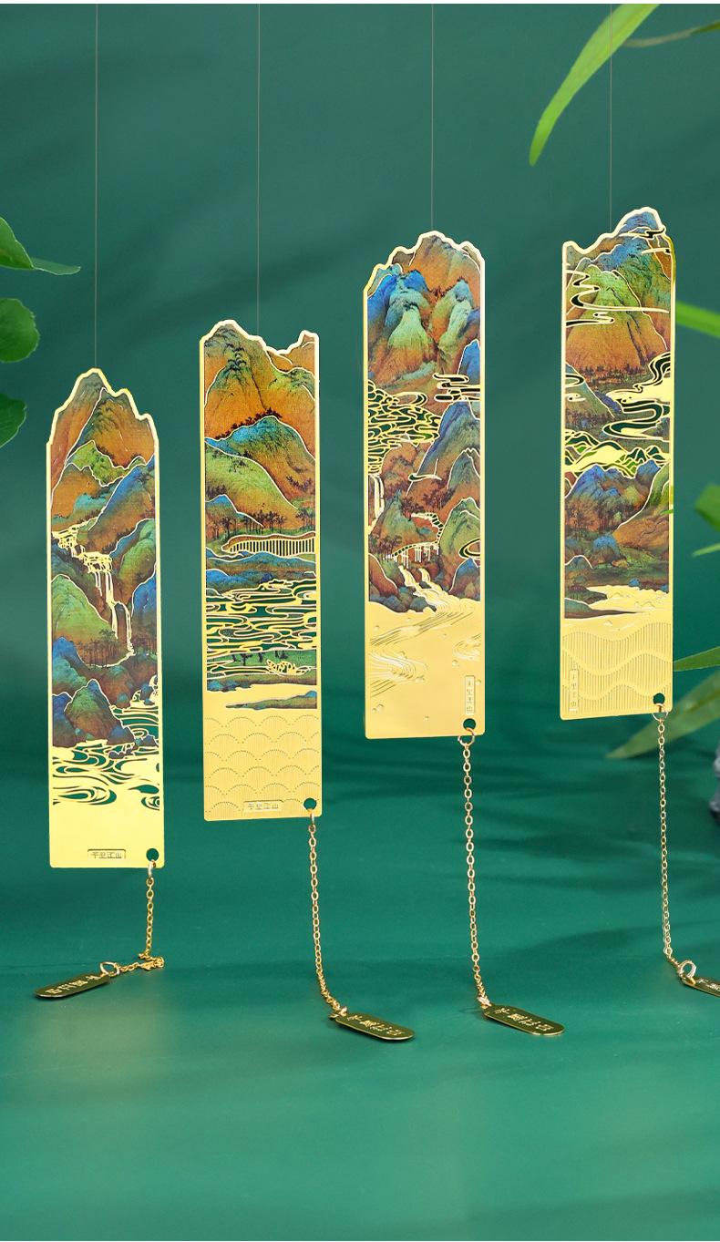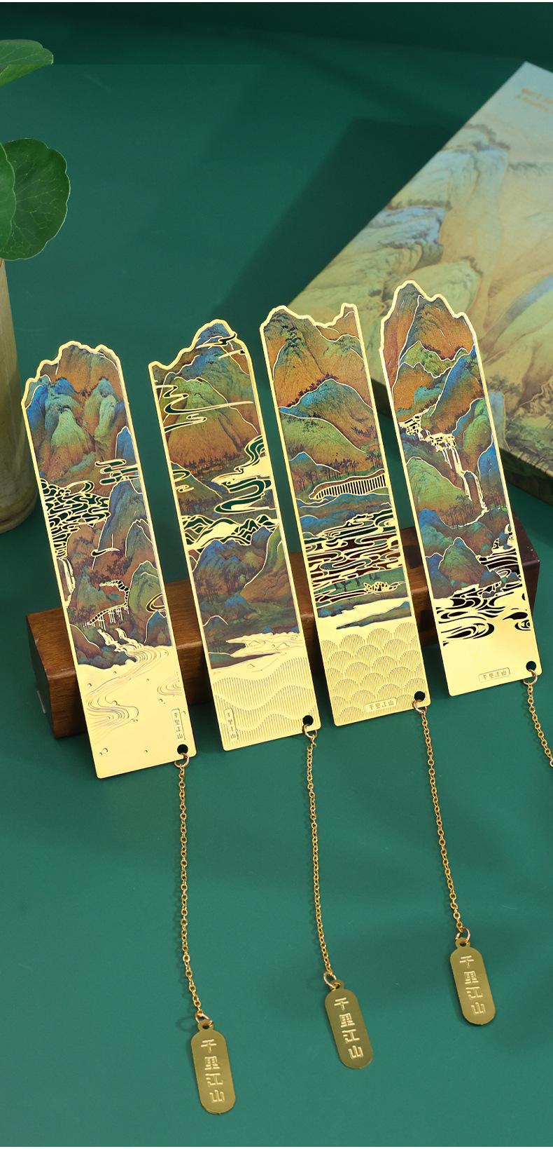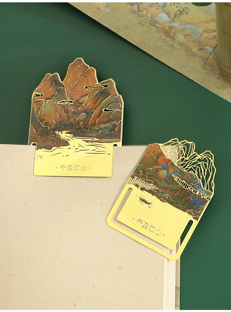 Marcapáginas de metal de estilo chino Qianli Jiangshan recortado, recuerdo, regalo para estudiantes, graduación, marcador de latón, grabado personalizado