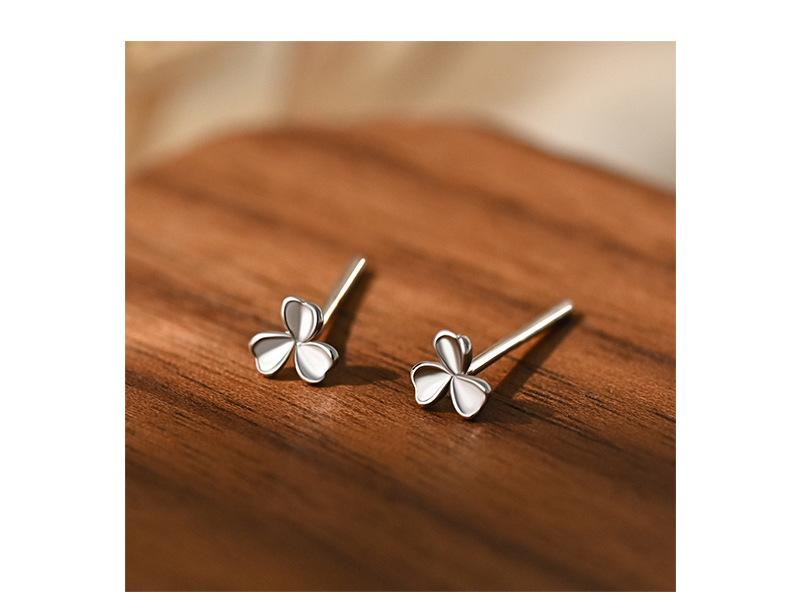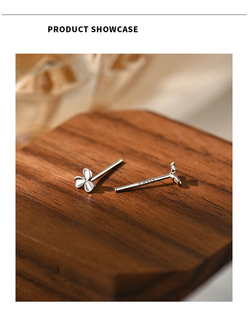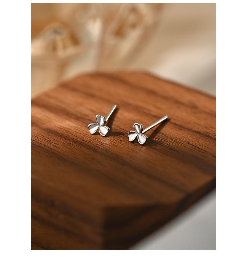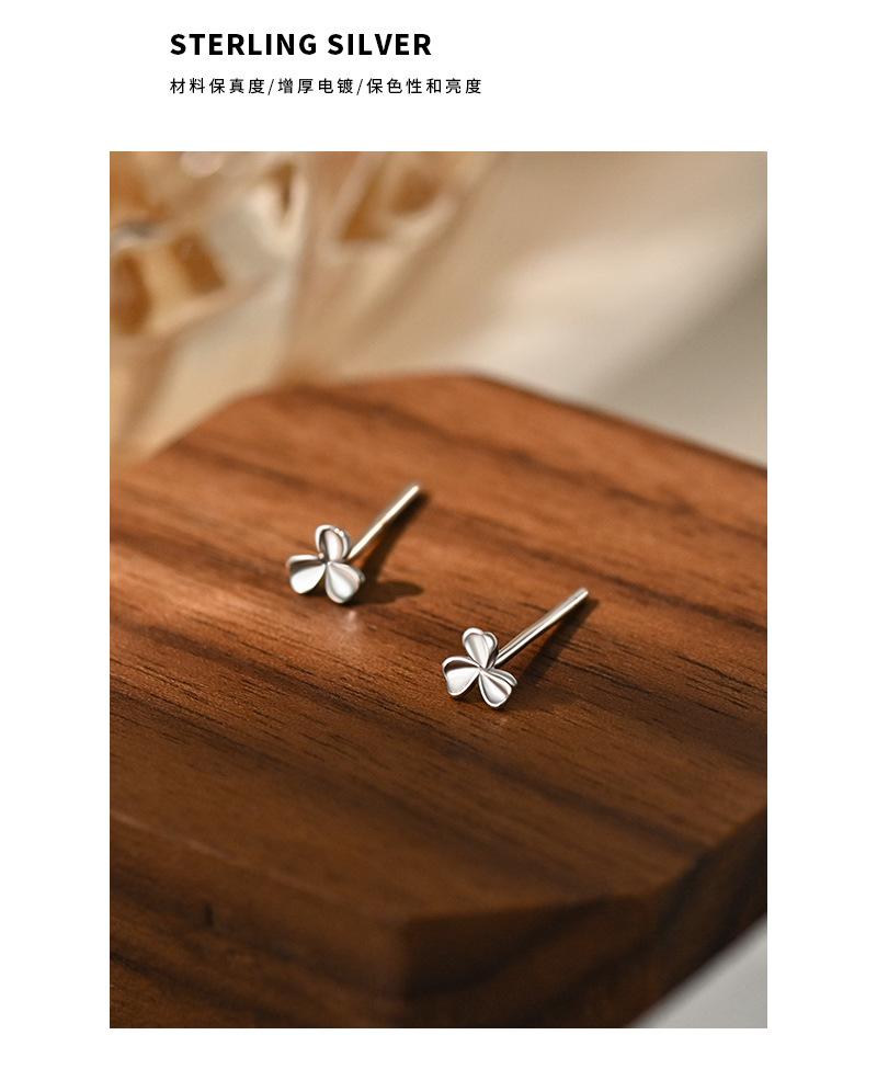 Yicheng S999 aretes de trébol de plata pura Mini aretes pequeños exquisitos diarios para combinar con todo Perforación de oreja estilo commuter