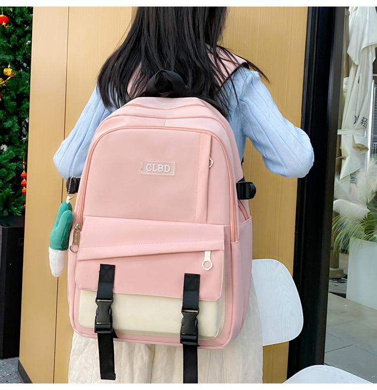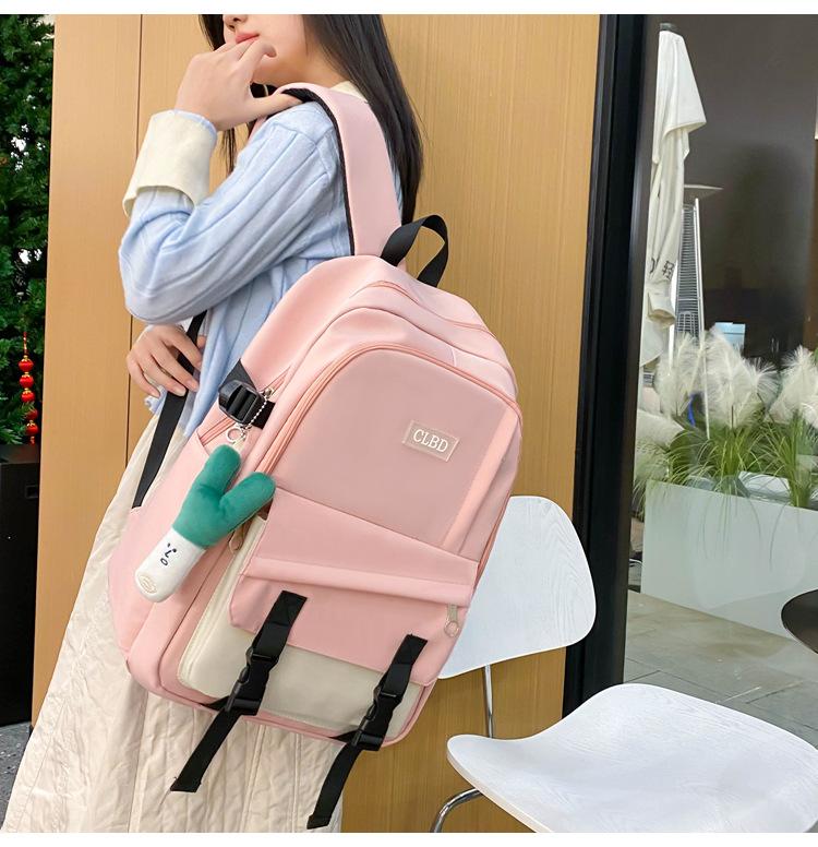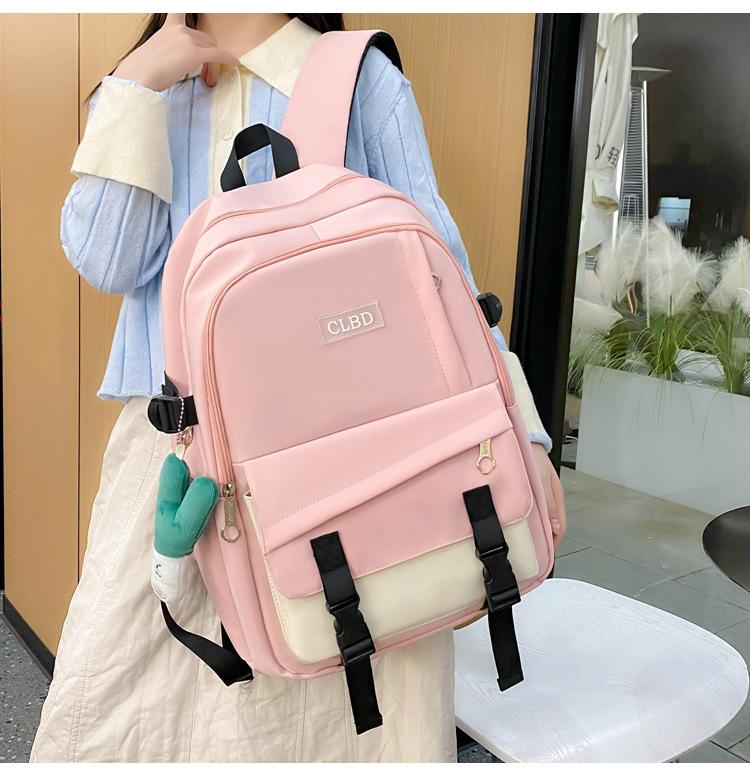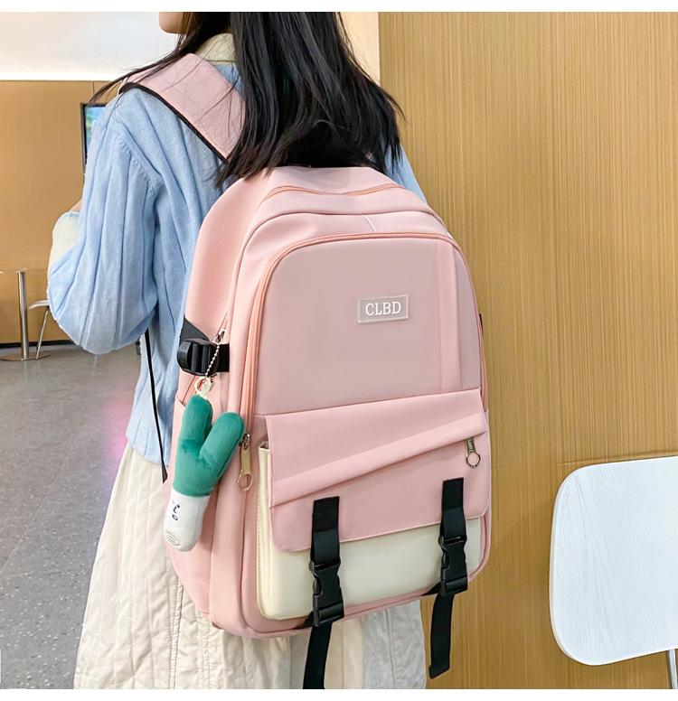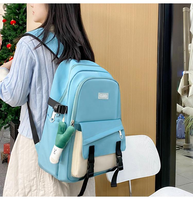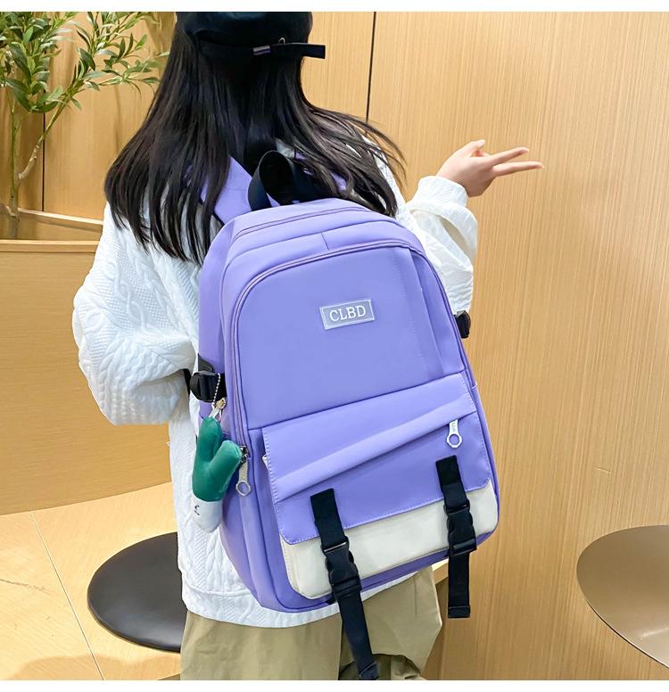 Mochila escolar para estudiantes de secundaria, nueva, 2024, para mujer, de gran capacidad, con parche para el hombro, mochila de nailon que combina con todo.