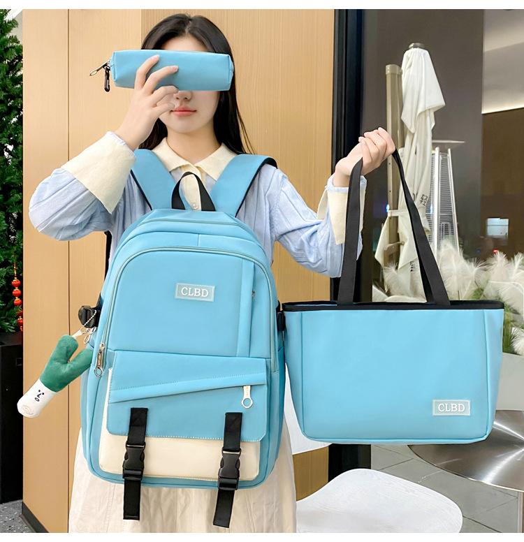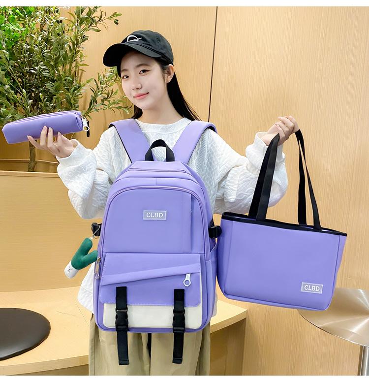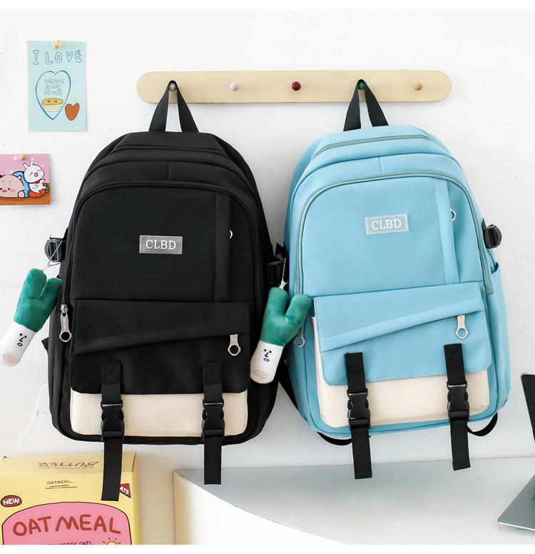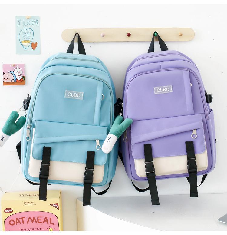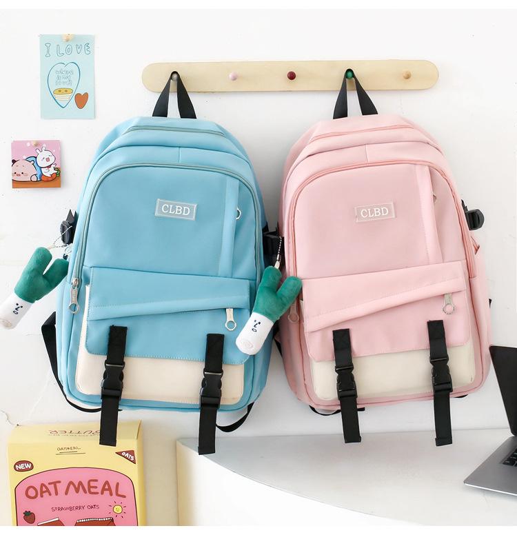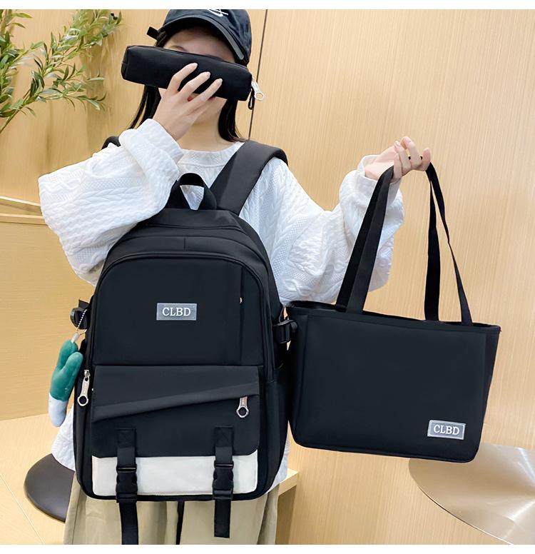 Mochila escolar para estudiantes de secundaria, nueva, 2024, para mujer, de gran capacidad, con parche para el hombro, mochila de nailon que combina con todo.